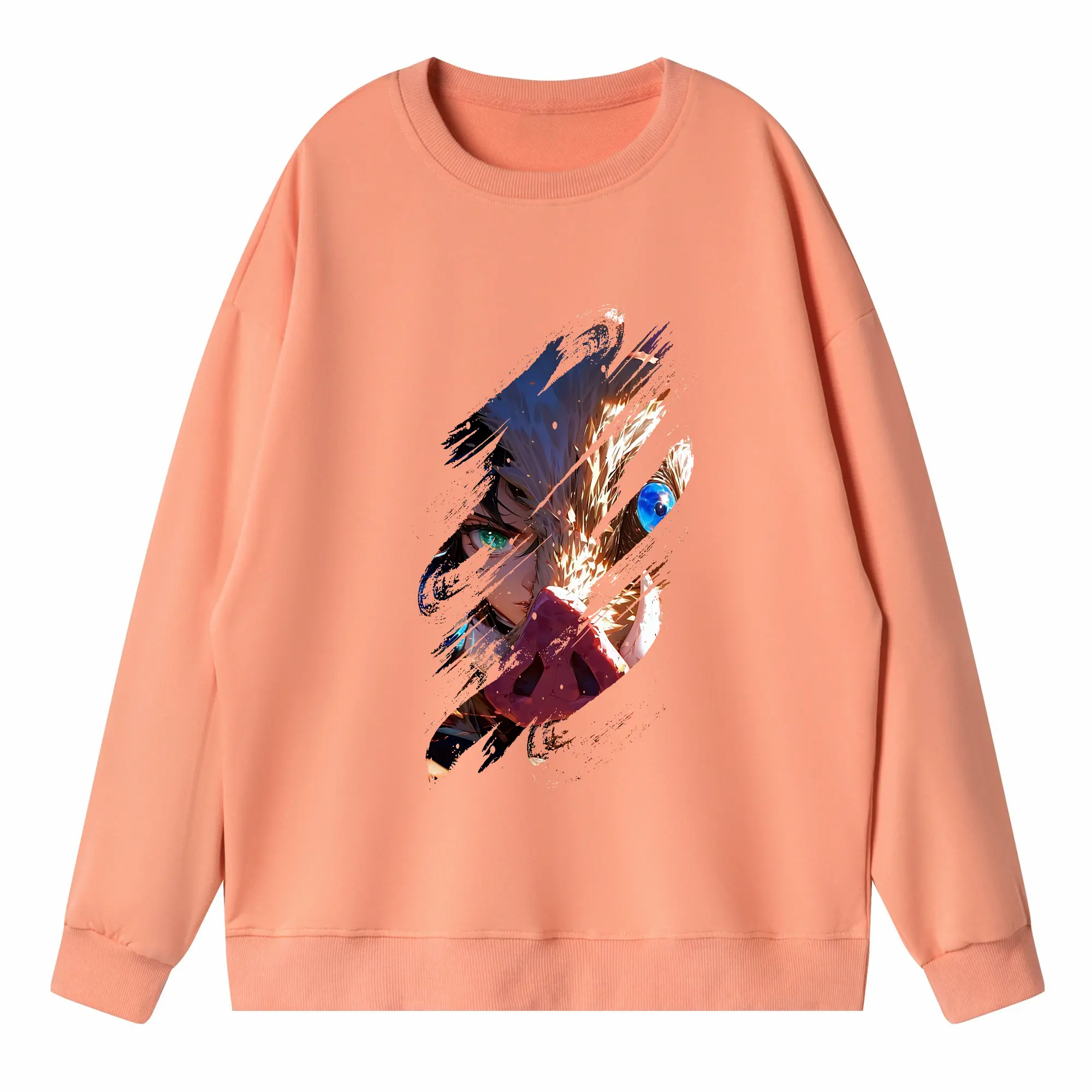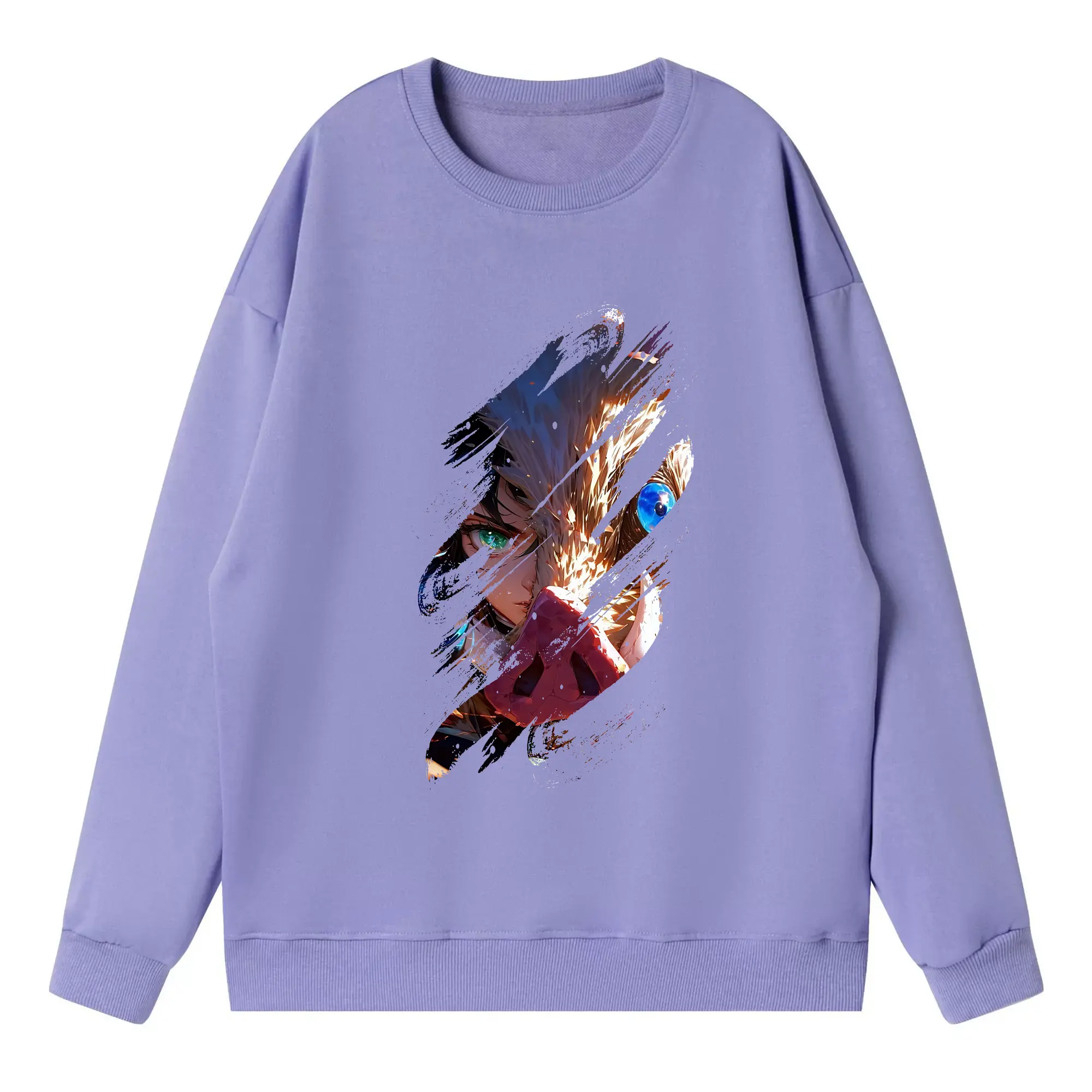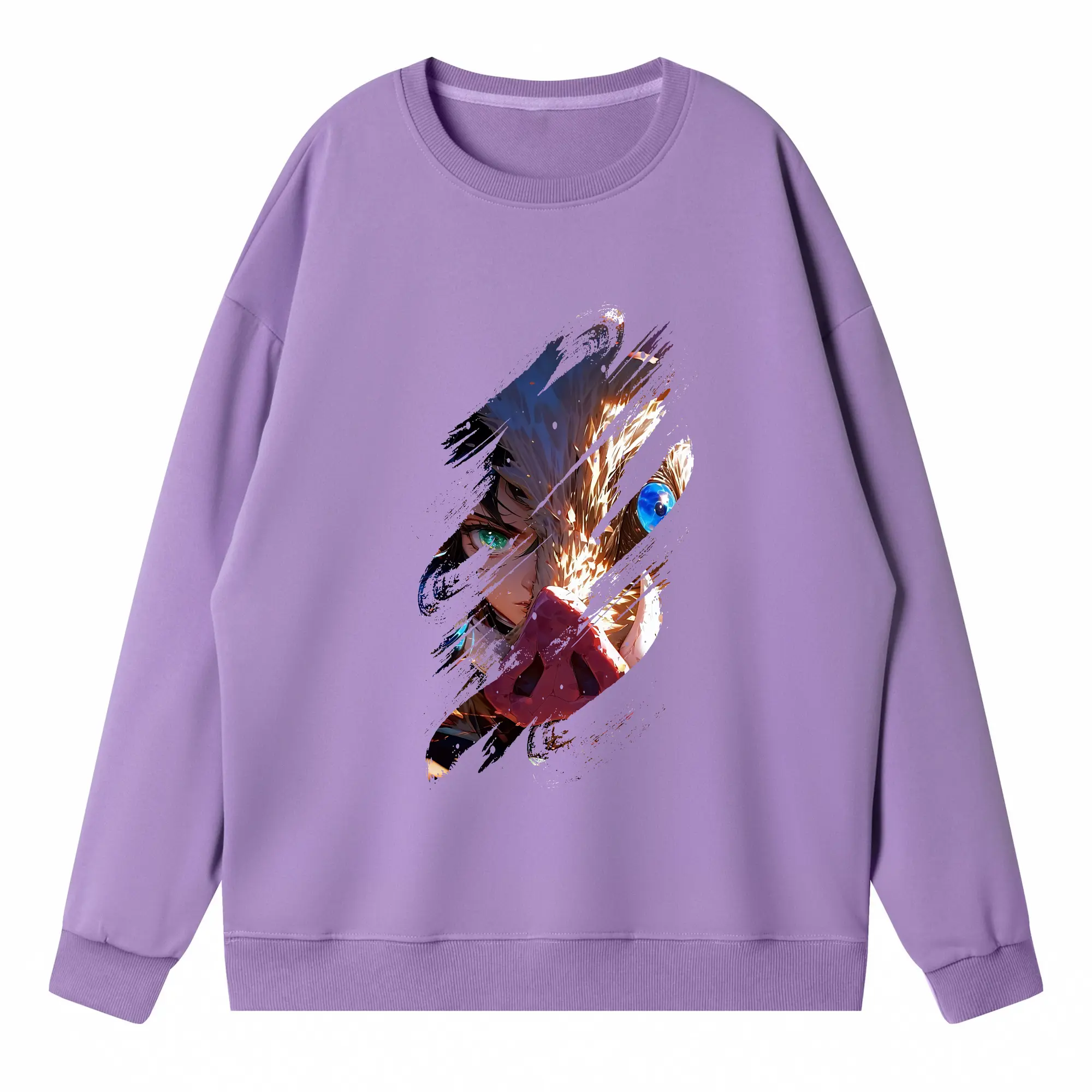 原 神 グッズ 雷電将軍 - 薄手 クルーネック スウェット 裏毛260g · ポリエステル 春秋向け カジュアル 男女兼用 · トレーナー デイリー スポーツ 散歩に最適