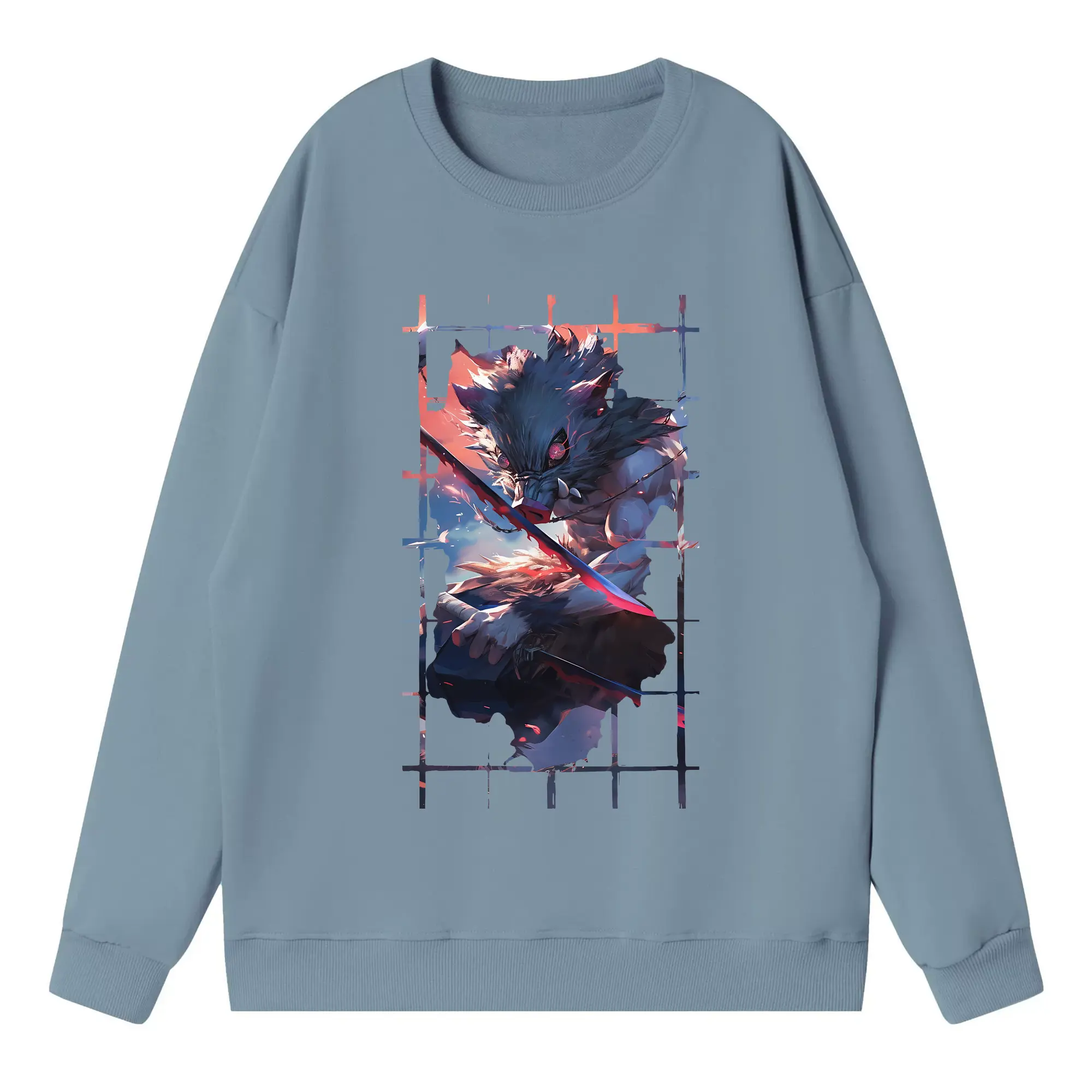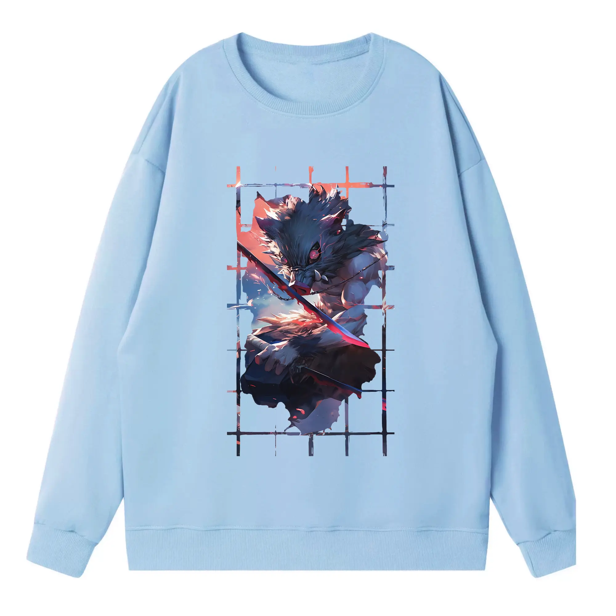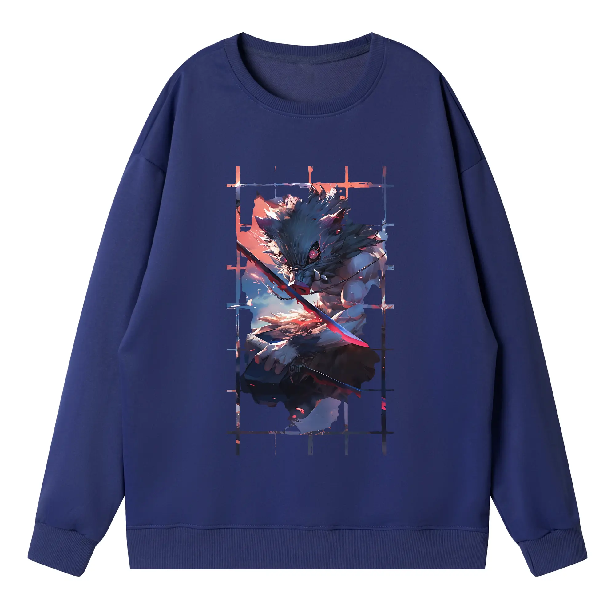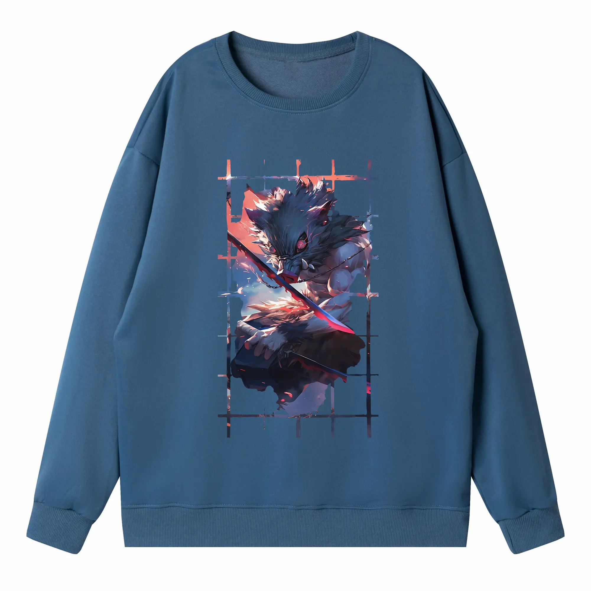 鬼滅の刃 グッズ,嘴平 伊之助 - 高品質 クルーネック スウェット ・ コットン59% ポリエステル41% ・ ユニセックス 長袖 トレーナー ・ カジュアル デイリー スポーツ 散歩用
