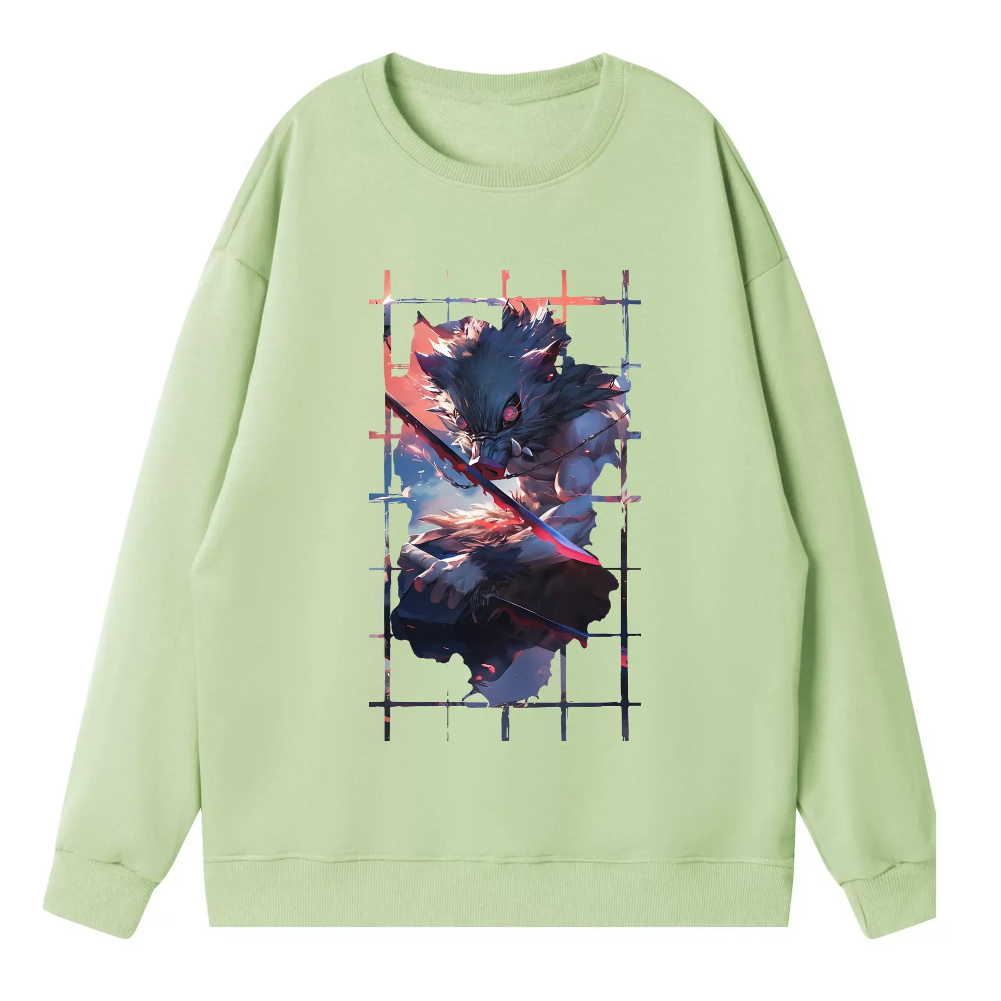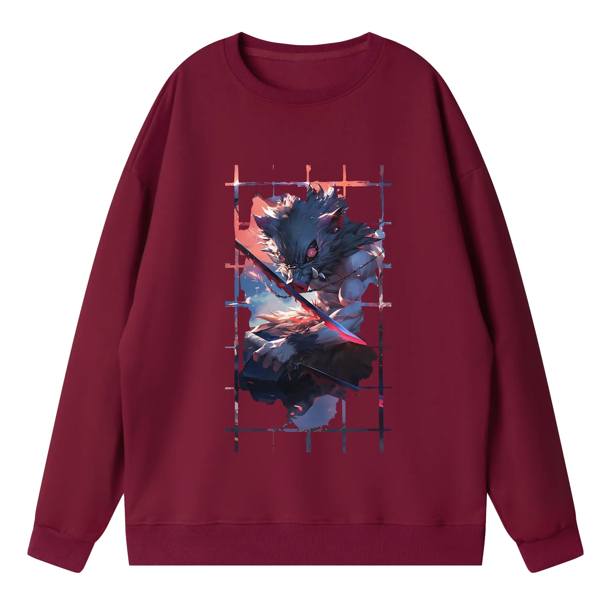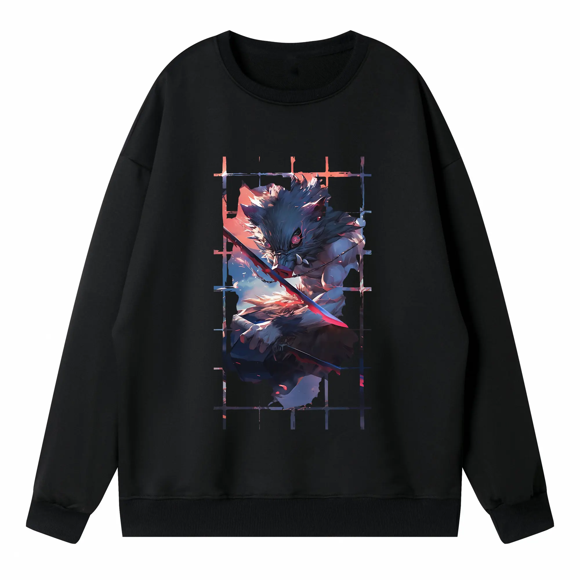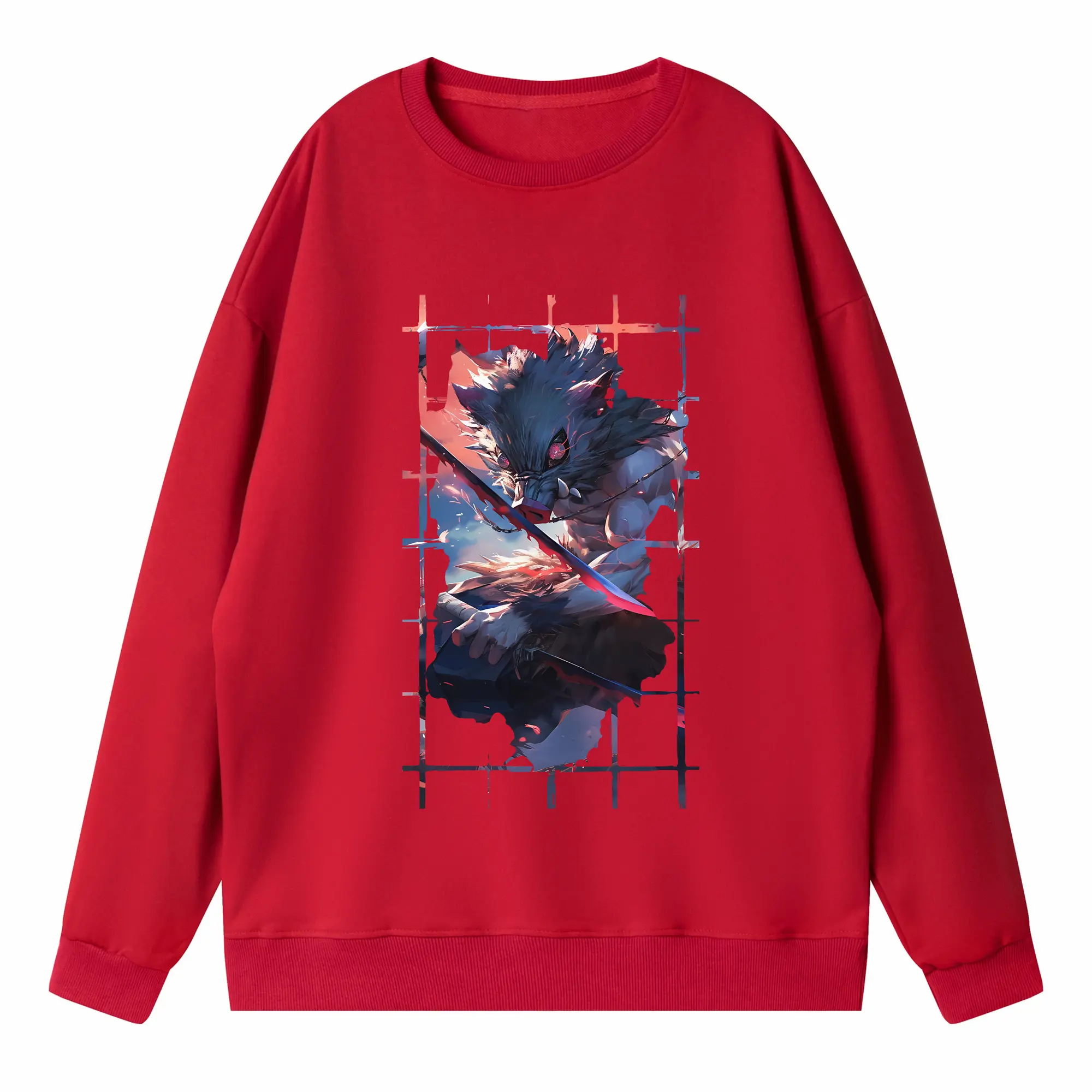 鬼滅の刃 グッズ,嘴平 伊之助 - 高品質 クルーネック スウェット ・ コットン59% ポリエステル41% ・ ユニセックス 長袖 トレーナー ・ カジュアル デイリー スポーツ 散歩用