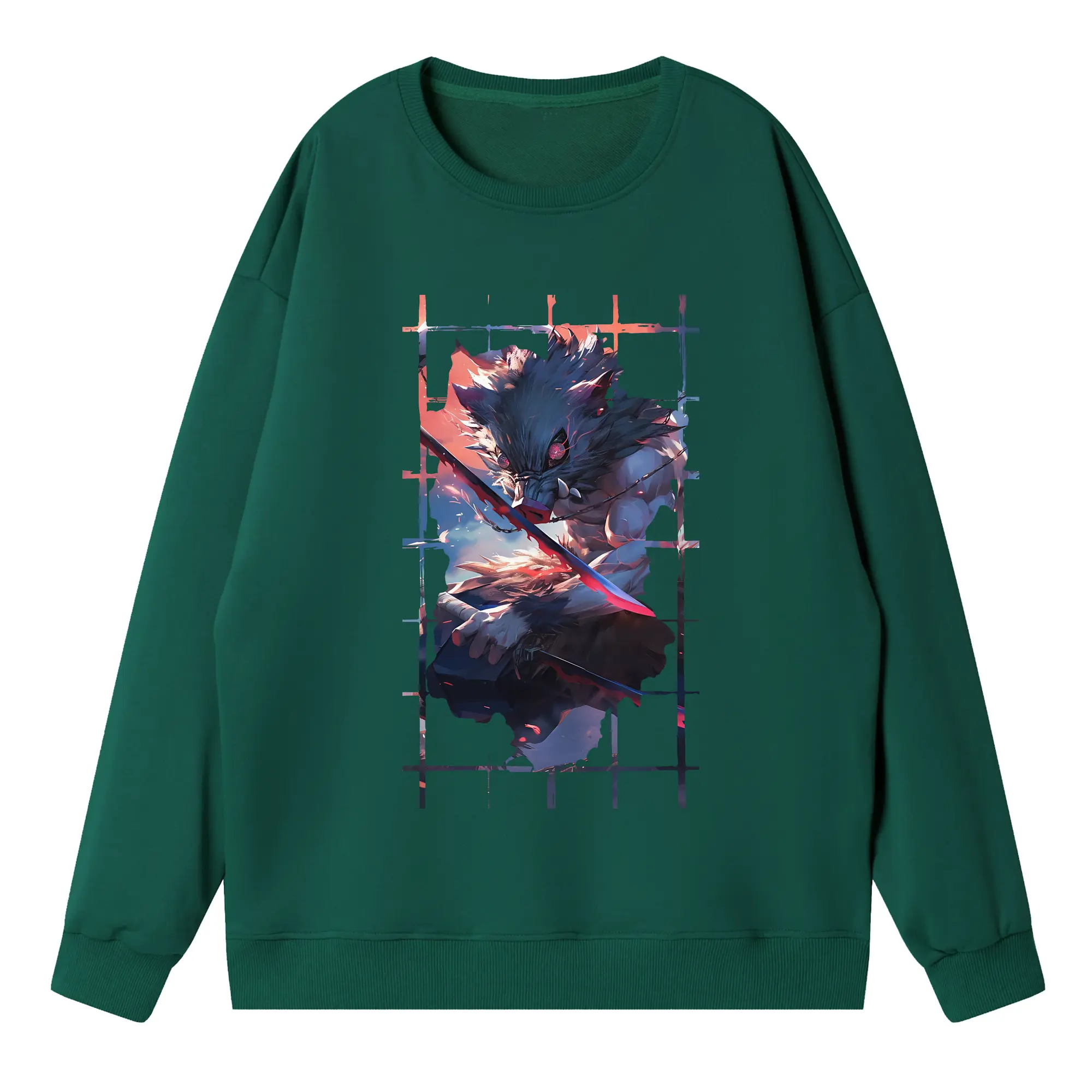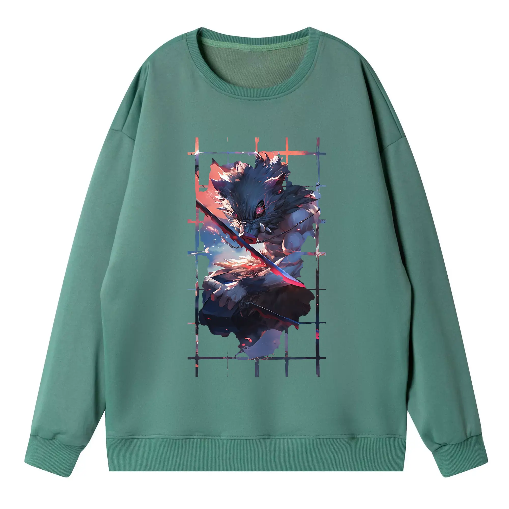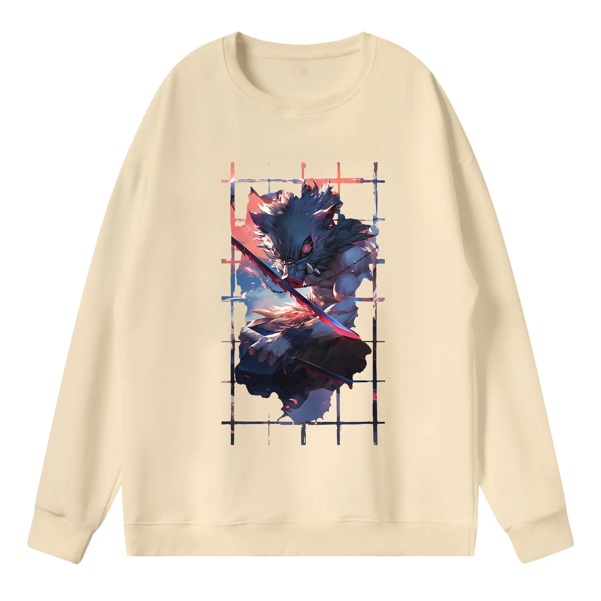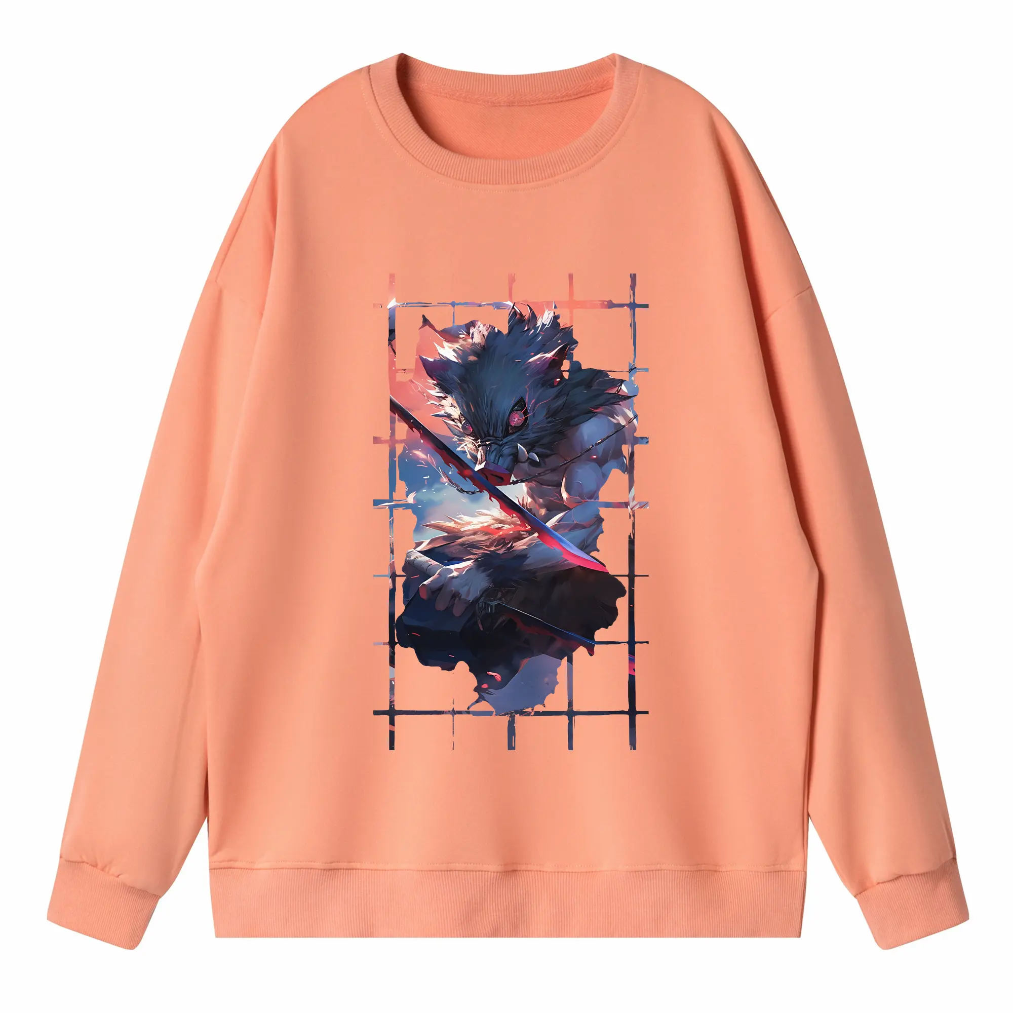 鬼滅の刃 グッズ,嘴平 伊之助 - 高品質 クルーネック スウェット ・ コットン59% ポリエステル41% ・ ユニセックス 長袖 トレーナー ・ カジュアル デイリー スポーツ 散歩用