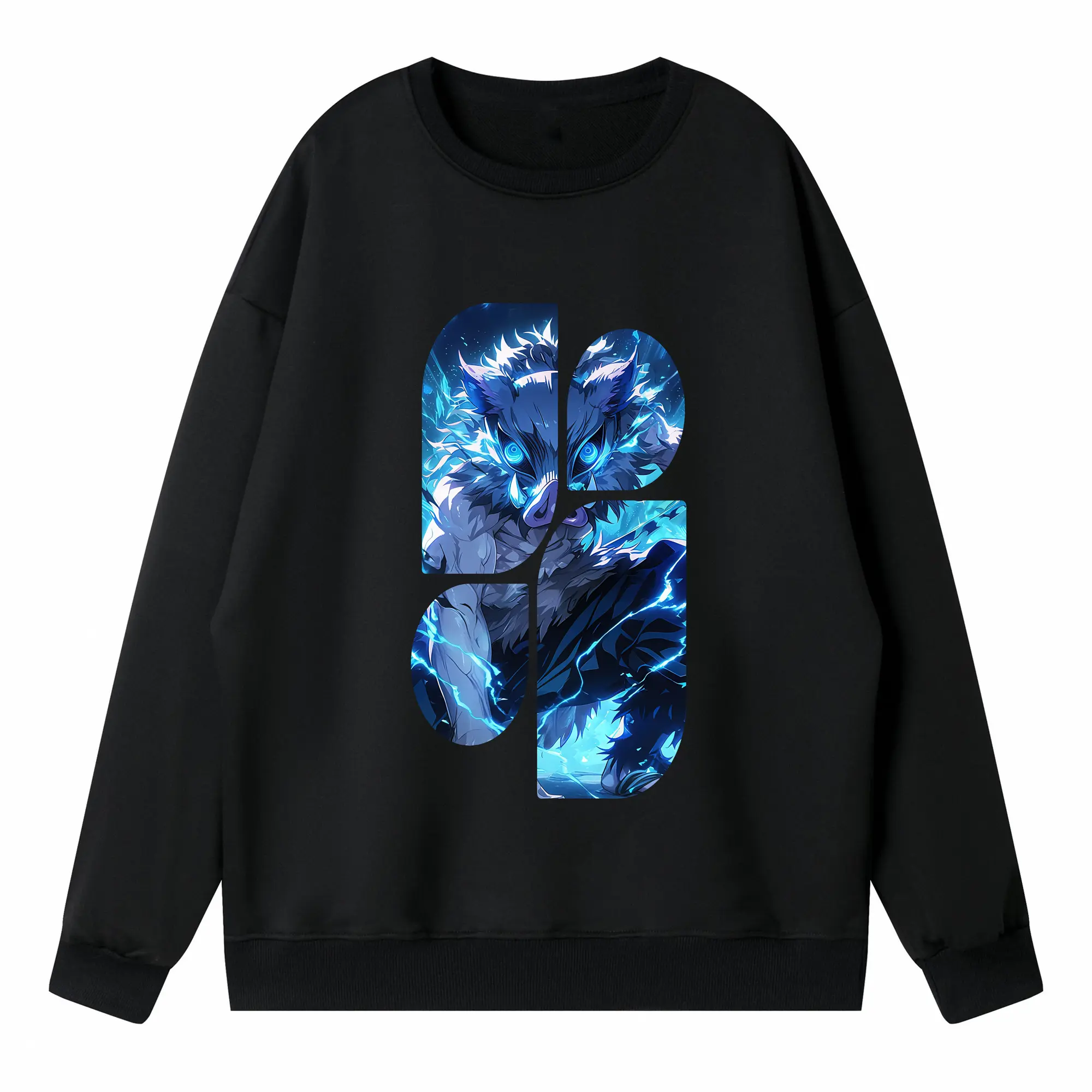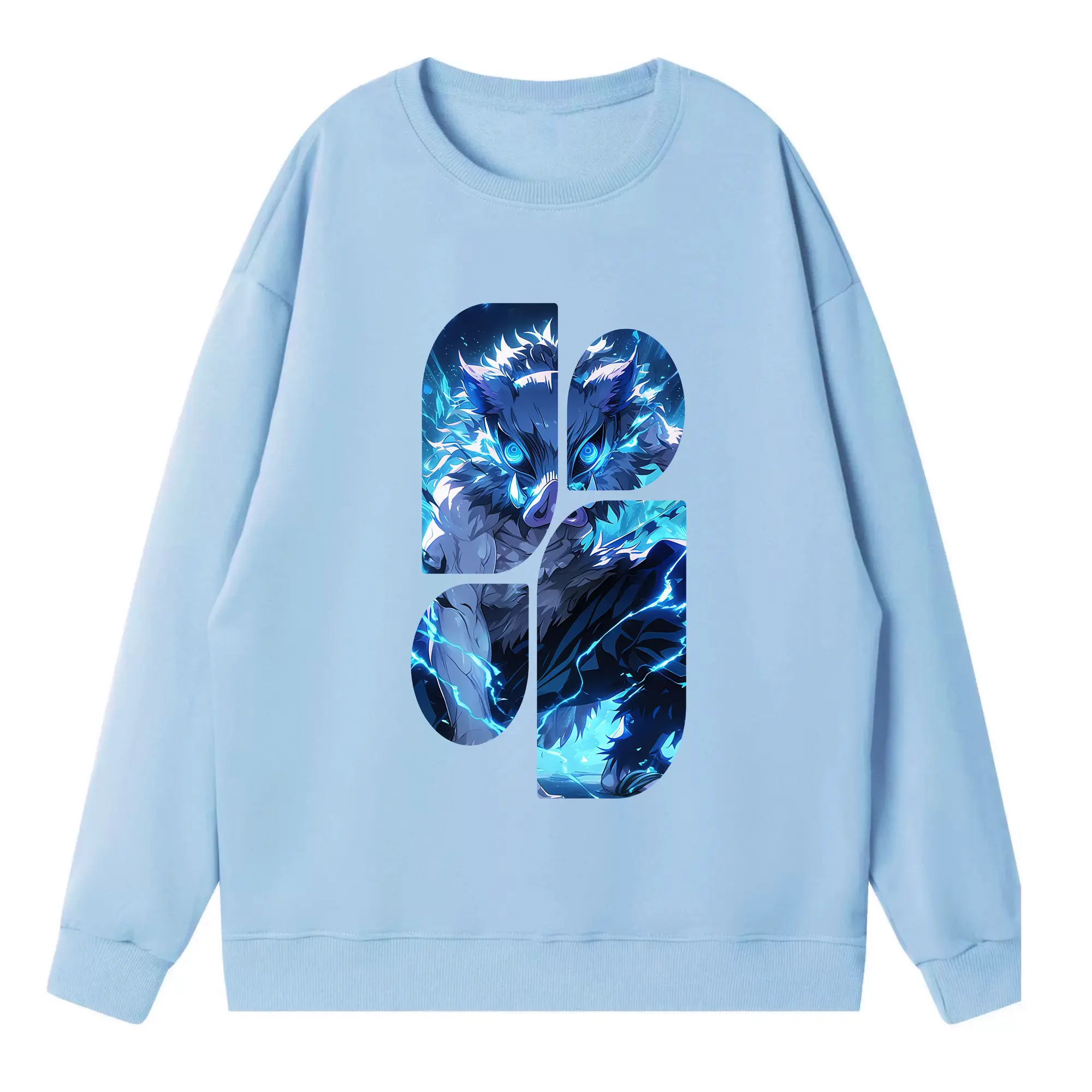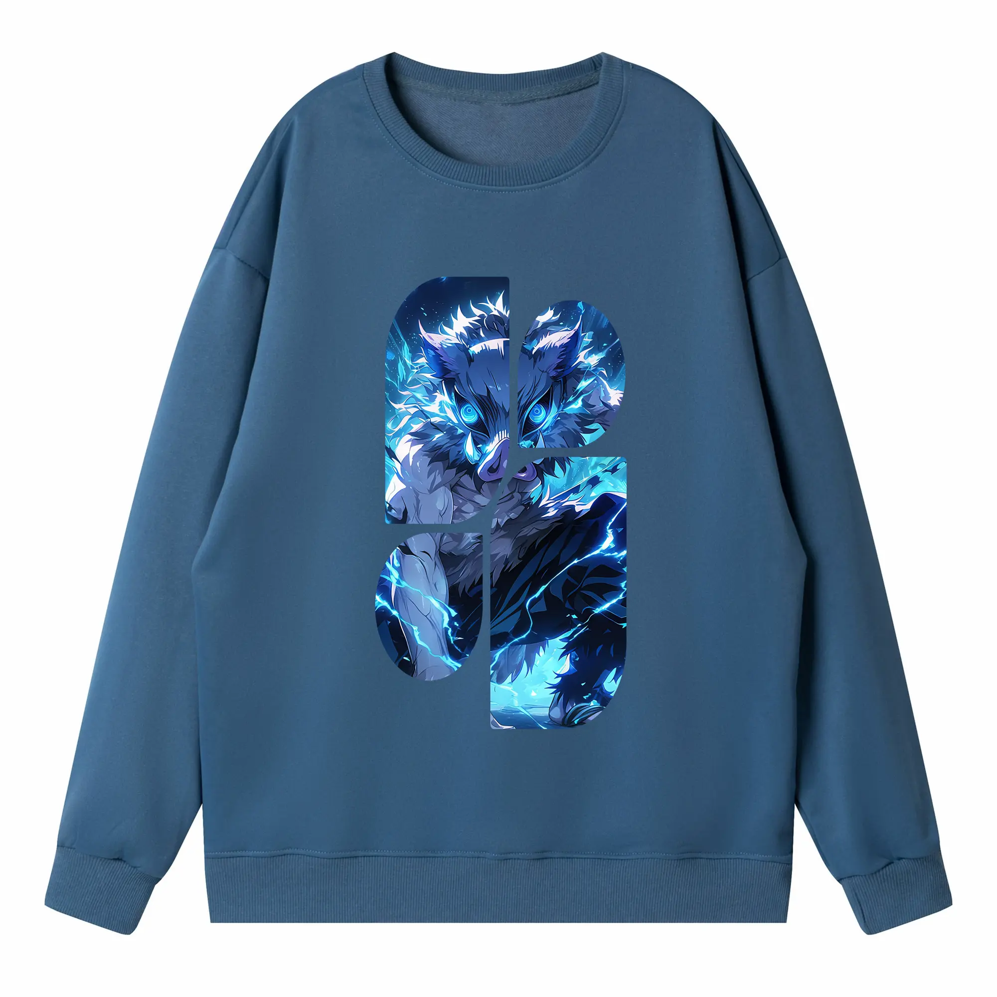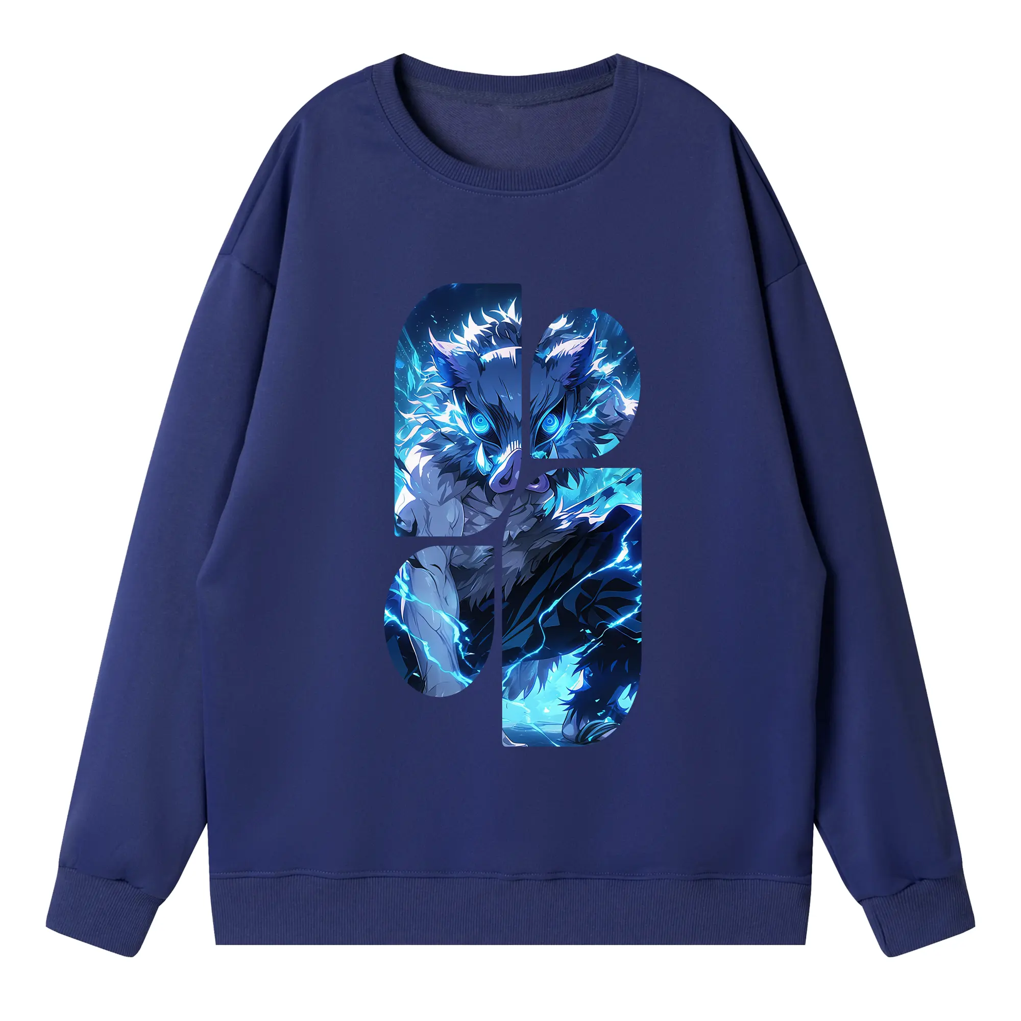 鬼滅の刃 グッズ,嘴平 伊之助 - 高品質 クルーネック スウェット ・ コットン59% ポリエステル41% ・ ユニセックス 長袖 トレーナー ・ カジュアル デイリー スポーツ 散歩用