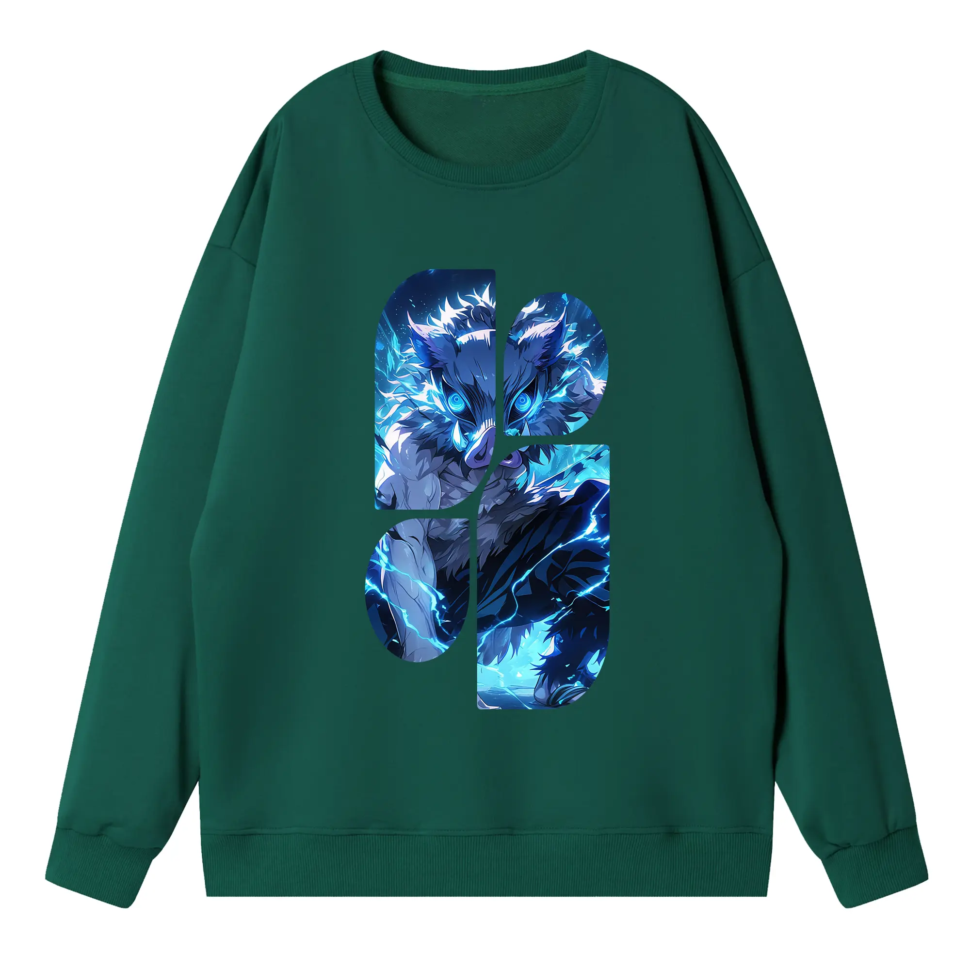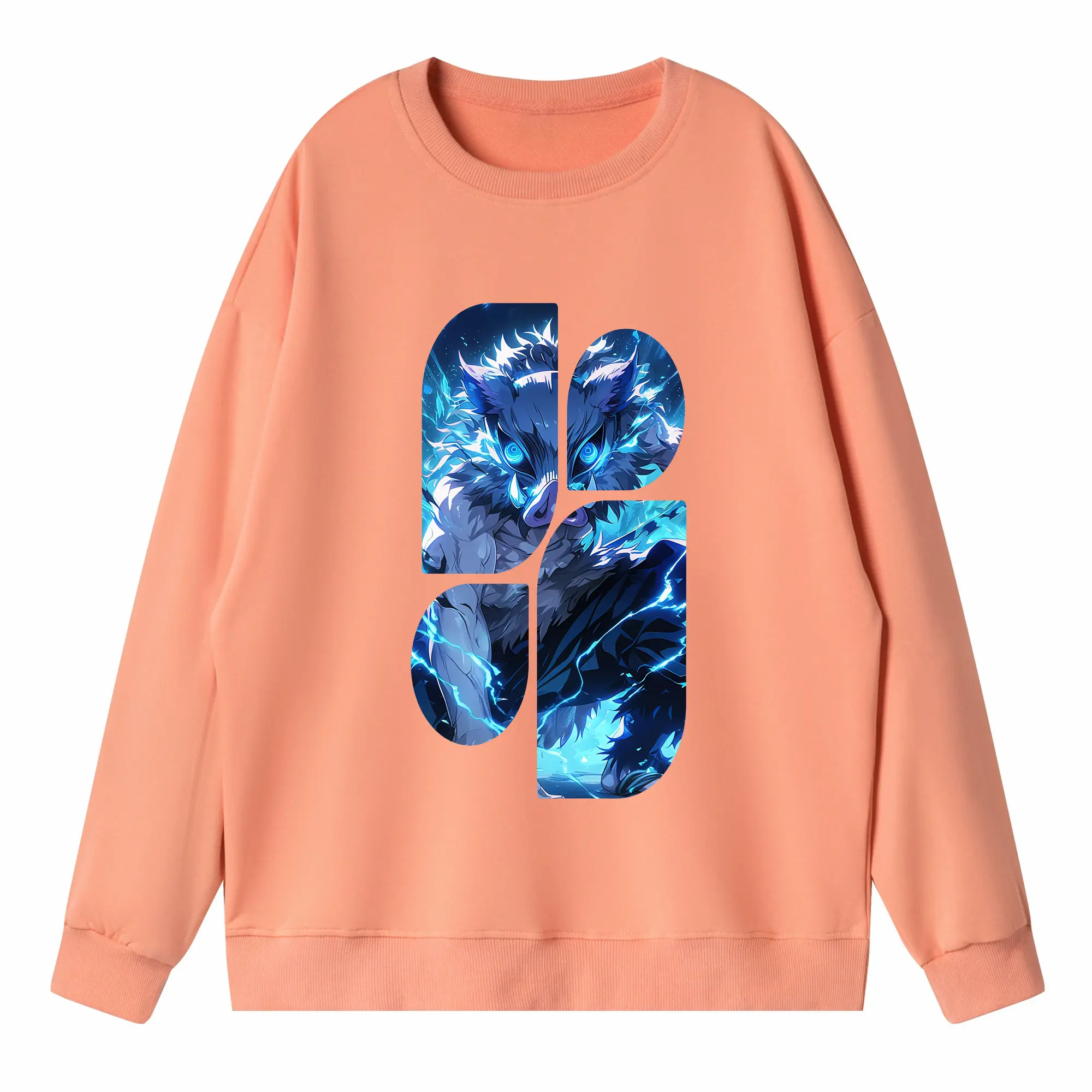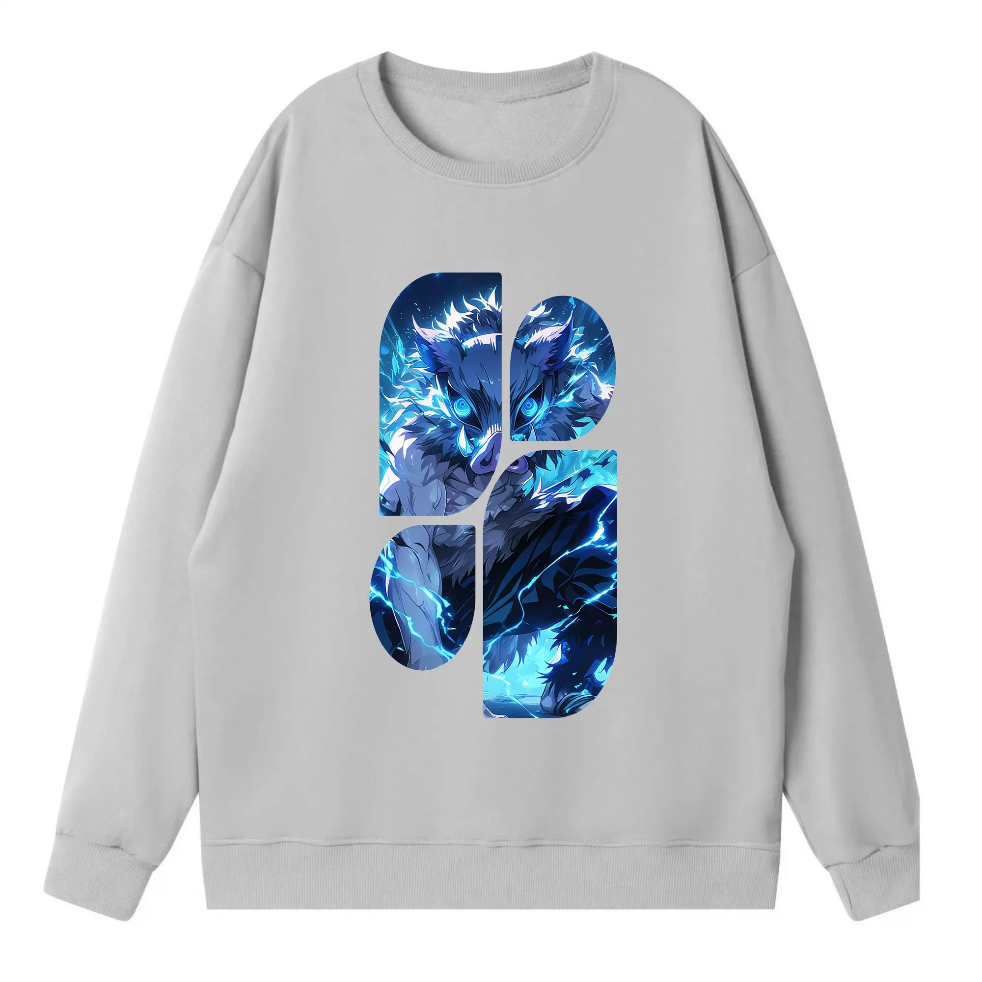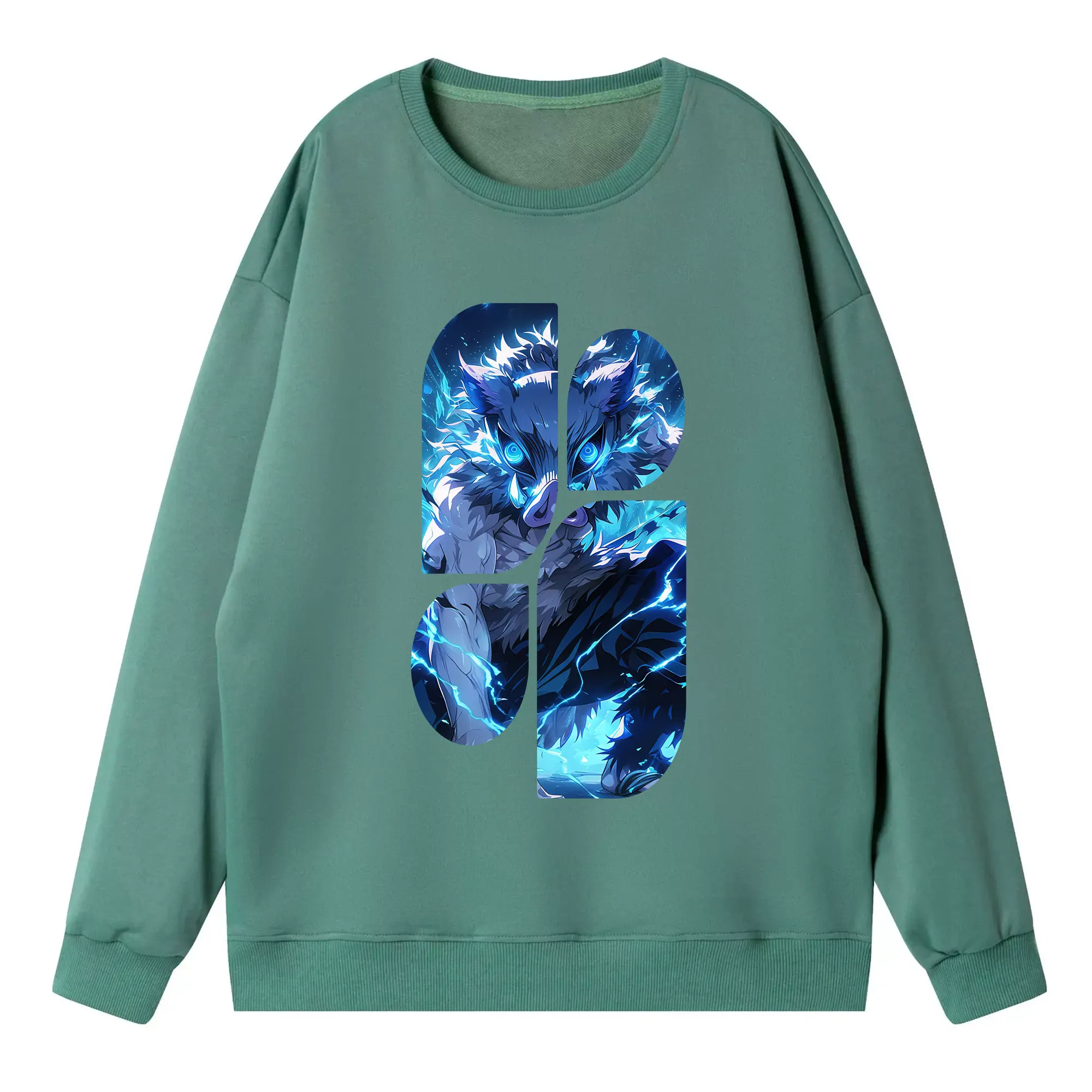 鬼滅の刃 グッズ,嘴平 伊之助 - 高品質 クルーネック スウェット ・ コットン59% ポリエステル41% ・ ユニセックス 長袖 トレーナー ・ カジュアル デイリー スポーツ 散歩用