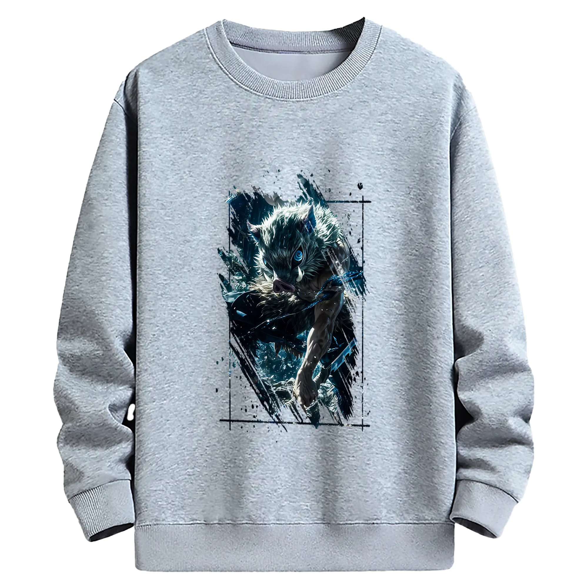 鬼滅の刃 グッズ,嘴平 伊之助 - 薄手 クルーネック スウェット 裏毛260g · ポリエステル 春秋向け カジュアル 男女兼用 · トレーナー デイリー スポーツ 散歩に最適