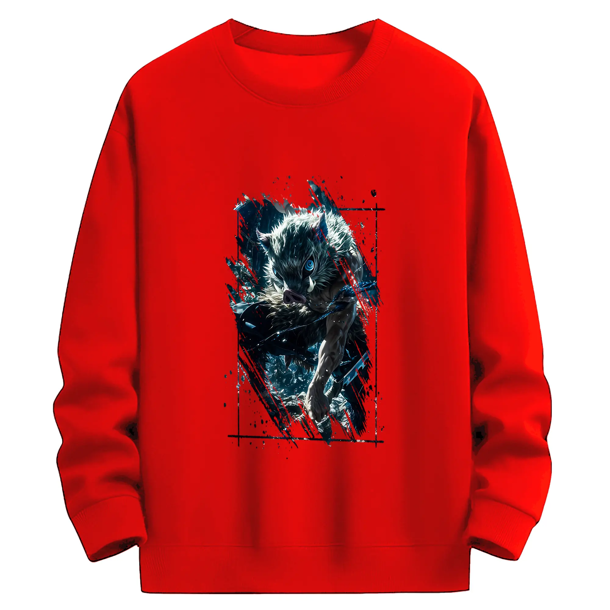鬼滅の刃 グッズ,嘴平 伊之助 - 高品質 クルーネック スウェット ・ コットン59% ポリエステル41% ・ ユニセックス 長袖 トレーナー ・ カジュアル デイリー スポーツ 散歩用