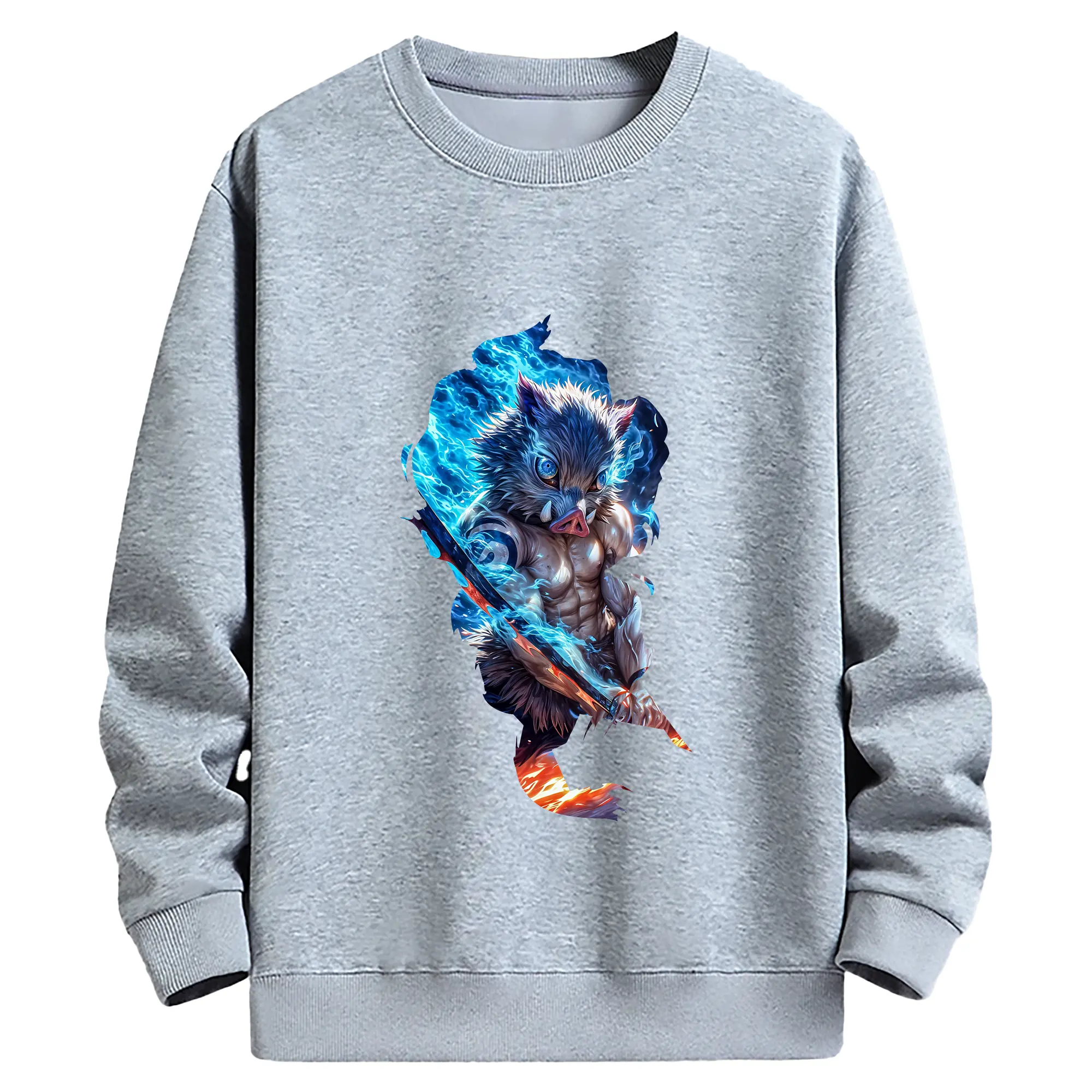 鬼滅の刃 グッズ,嘴平 伊之助 - 高品質 クルーネック スウェット ・ コットン59% ポリエステル41% ・ ユニセックス 長袖 トレーナー ・ カジュアル デイリー スポーツ 散歩用