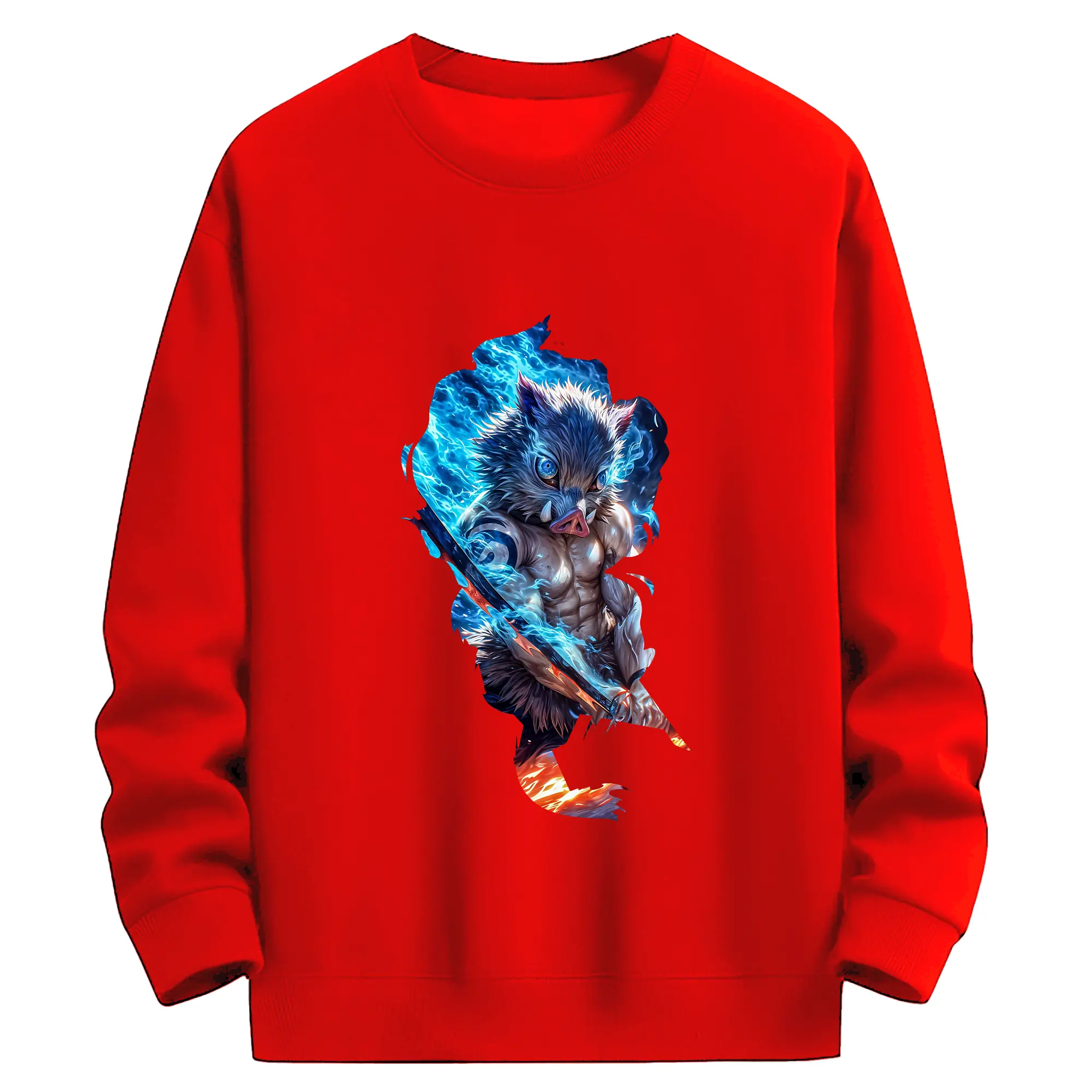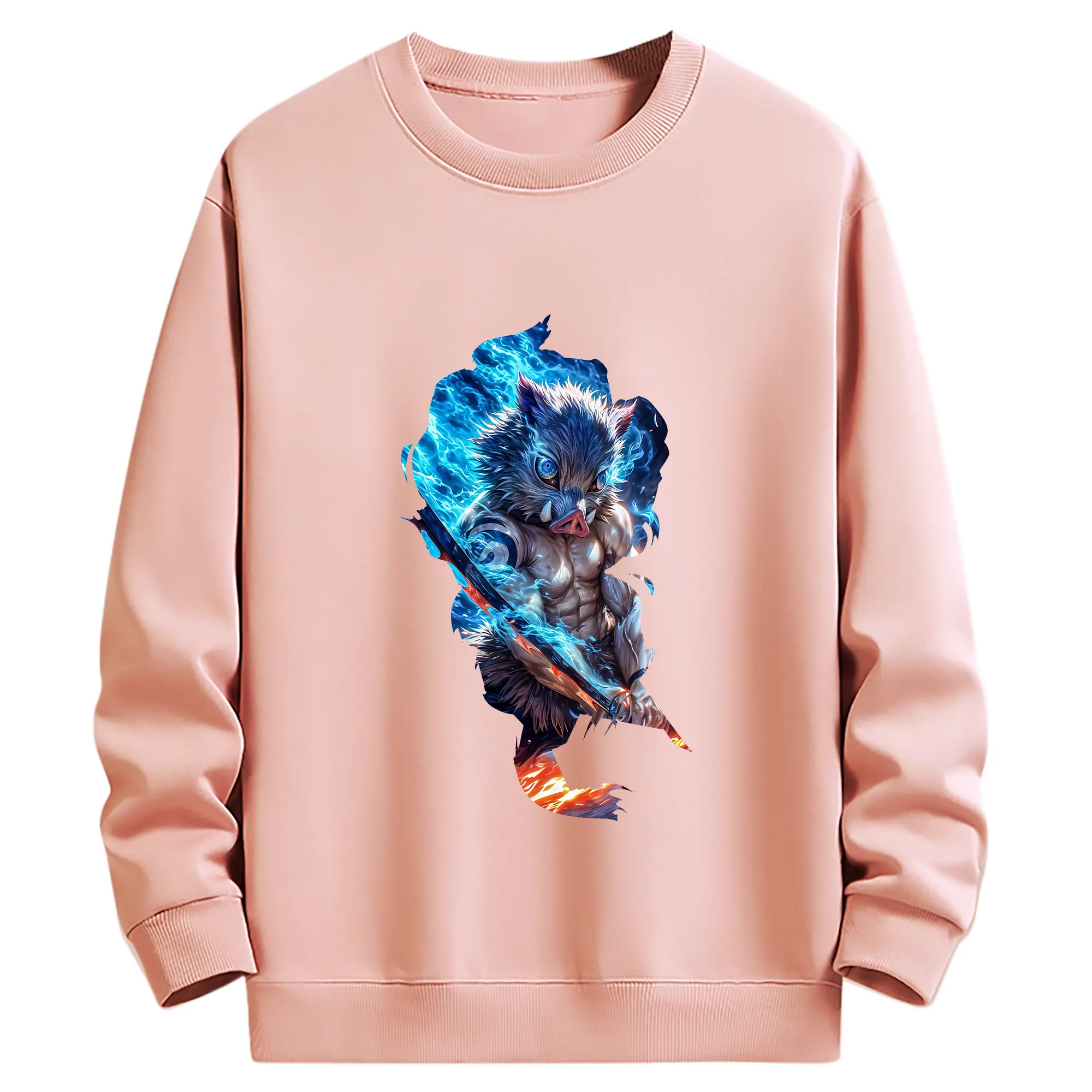 鬼滅の刃 グッズ,嘴平 伊之助 - 薄手 クルーネック スウェット 裏毛260g · ポリエステル 春秋向け カジュアル 男女兼用 · トレーナー デイリー スポーツ 散歩に最適