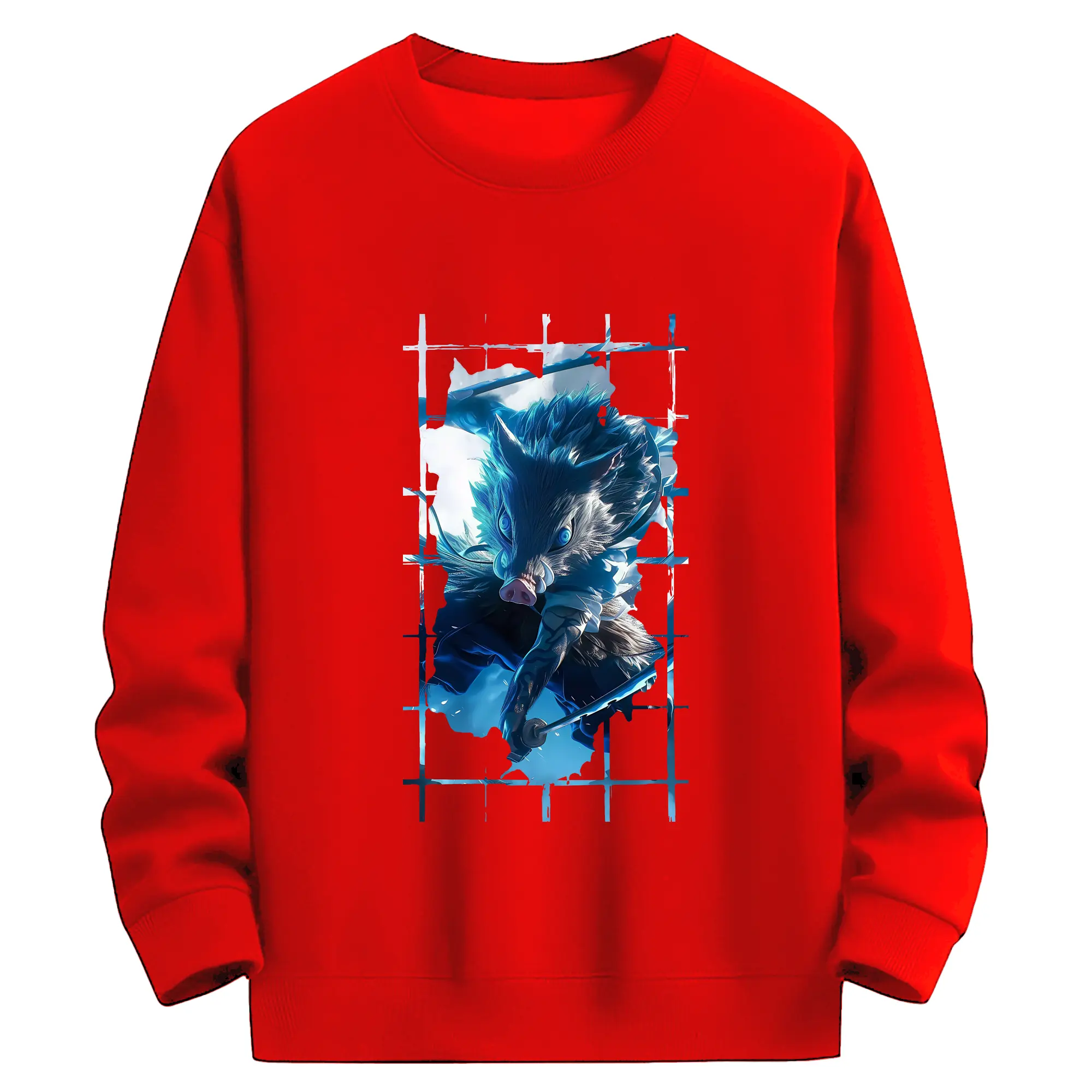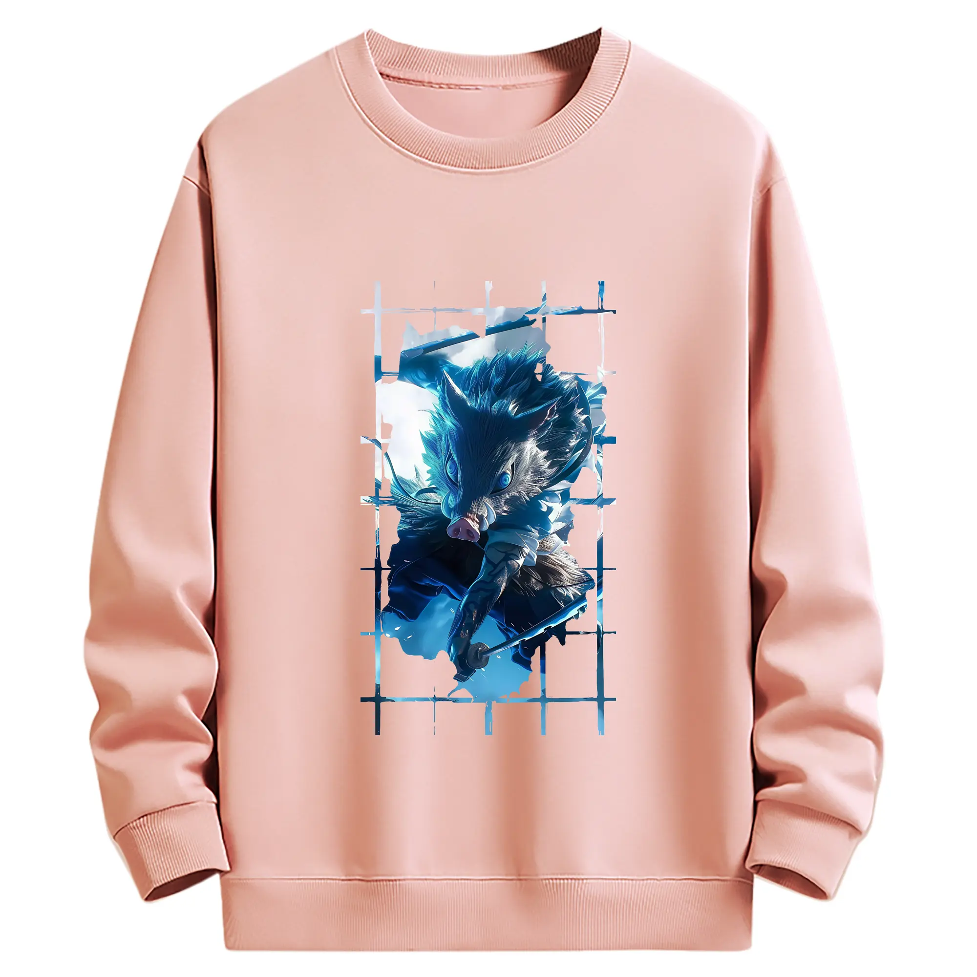 鬼滅の刃 グッズ,嘴平 伊之助 - 高品質 クルーネック スウェット ・ コットン59% ポリエステル41% ・ ユニセックス 長袖 トレーナー ・ カジュアル デイリー スポーツ 散歩用