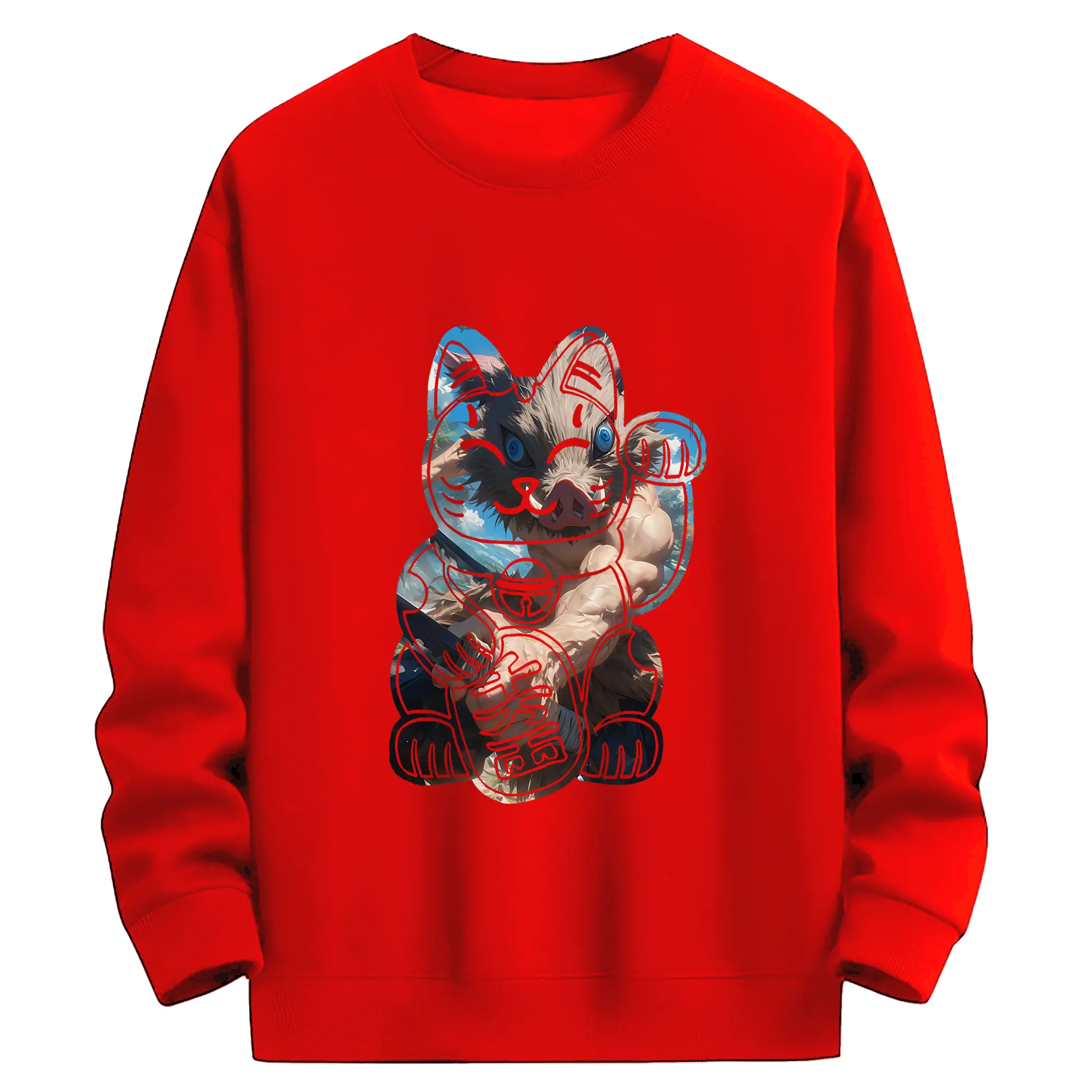 鬼滅の刃 グッズ,嘴平 伊之助 - 高品質 クルーネック スウェット ・ コットン59% ポリエステル41% ・ ユニセックス 長袖 トレーナー ・ カジュアル デイリー スポーツ 散歩用