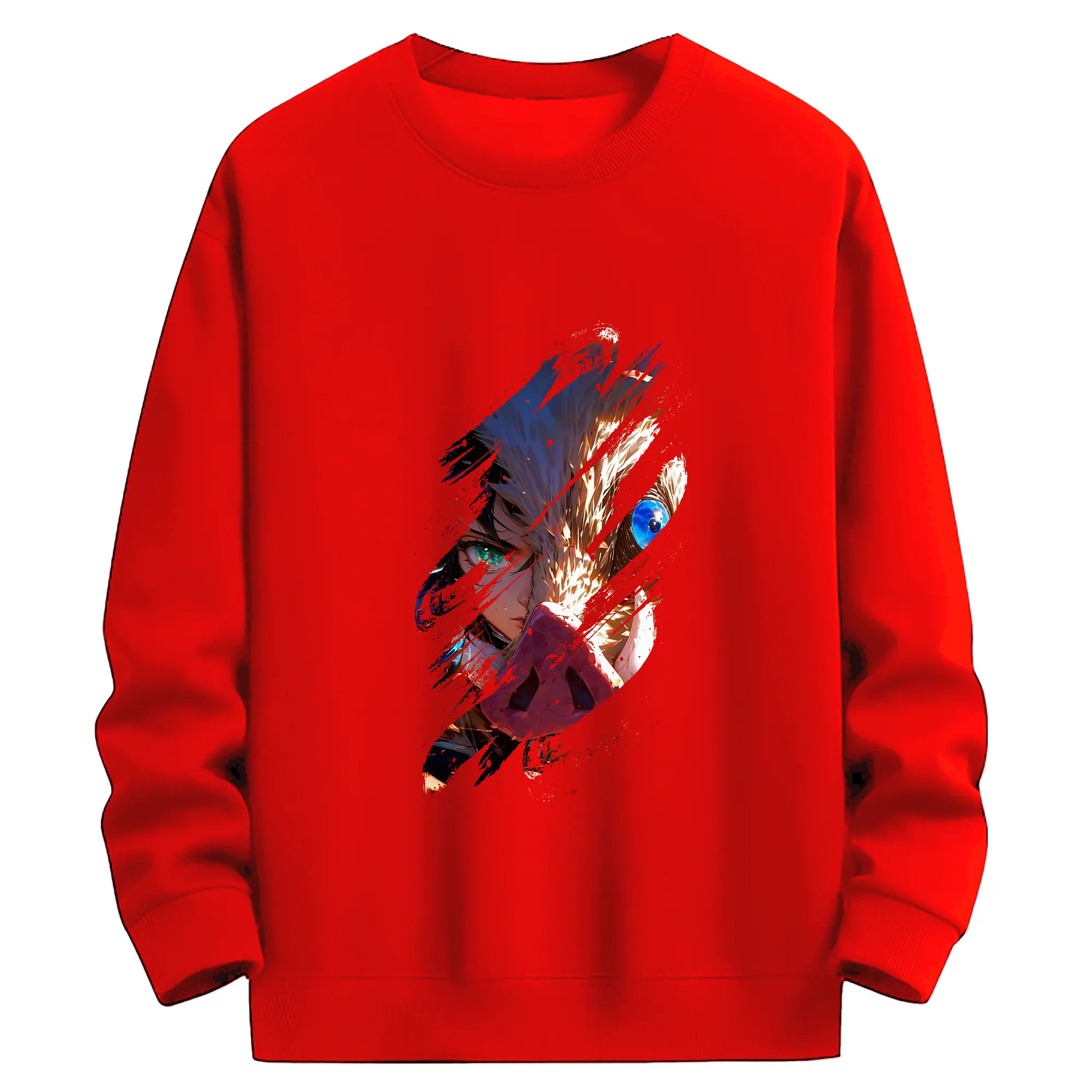 鬼滅の刃 グッズ,嘴平 伊之助 - 高品質 クルーネック スウェット ・ コットン59% ポリエステル41% ・ ユニセックス 長袖 トレーナー ・ カジュアル デイリー スポーツ 散歩用