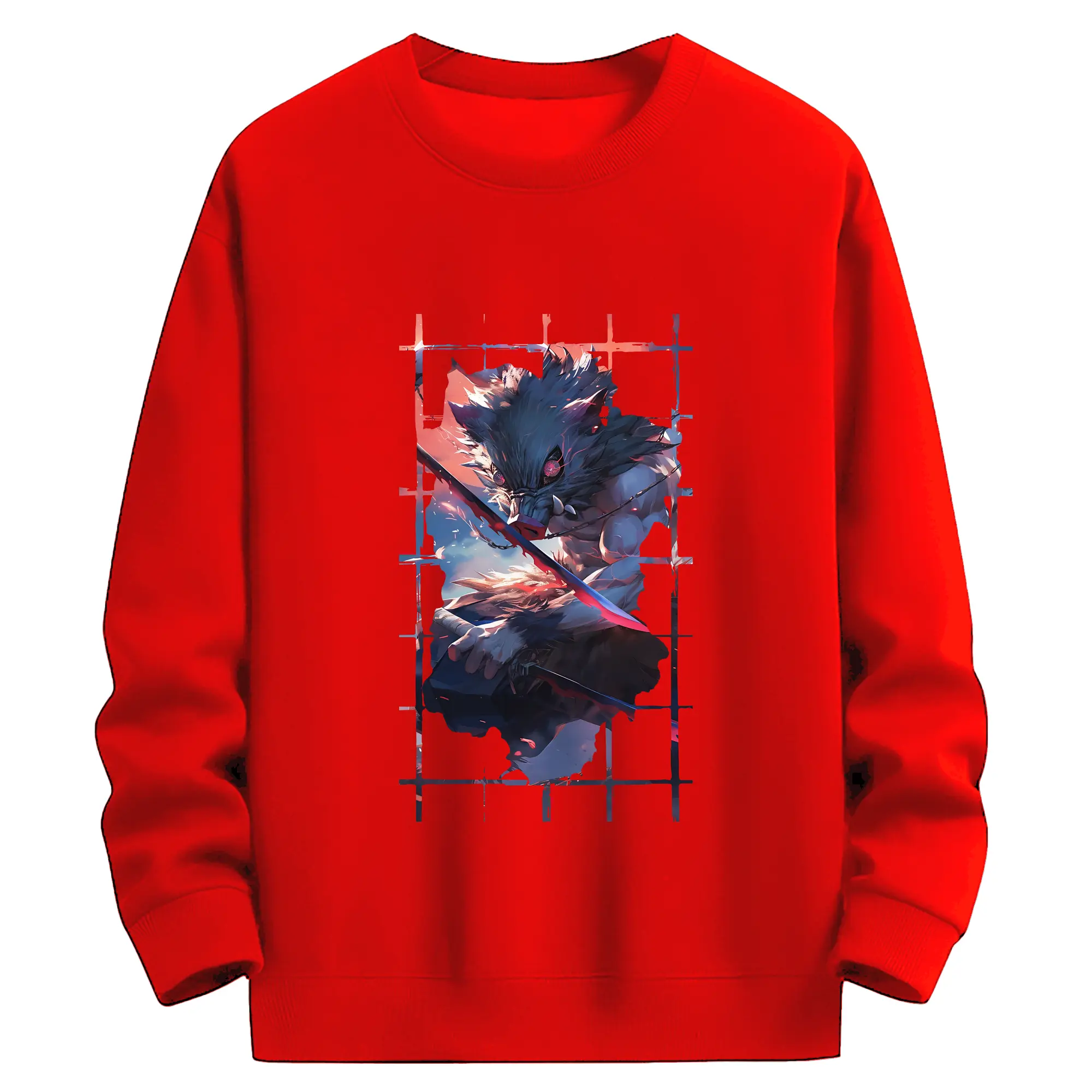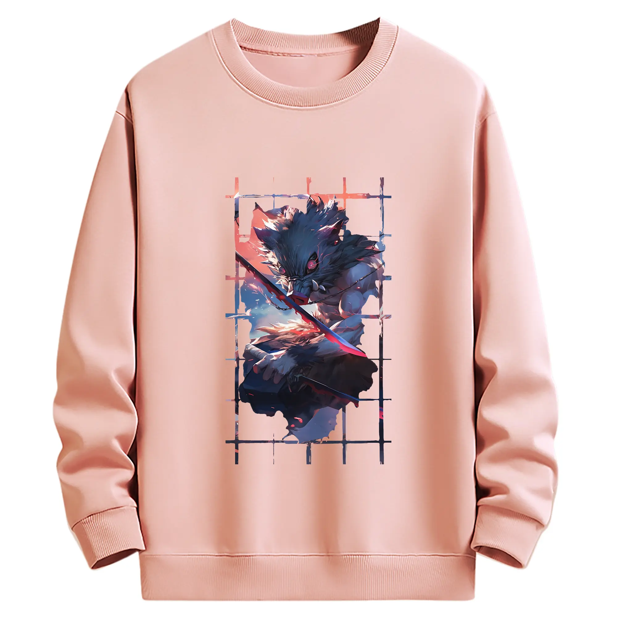 鬼滅の刃 グッズ,嘴平 伊之助 - 高品質 クルーネック スウェット ・ コットン59% ポリエステル41% ・ ユニセックス 長袖 トレーナー ・ カジュアル デイリー スポーツ 散歩用