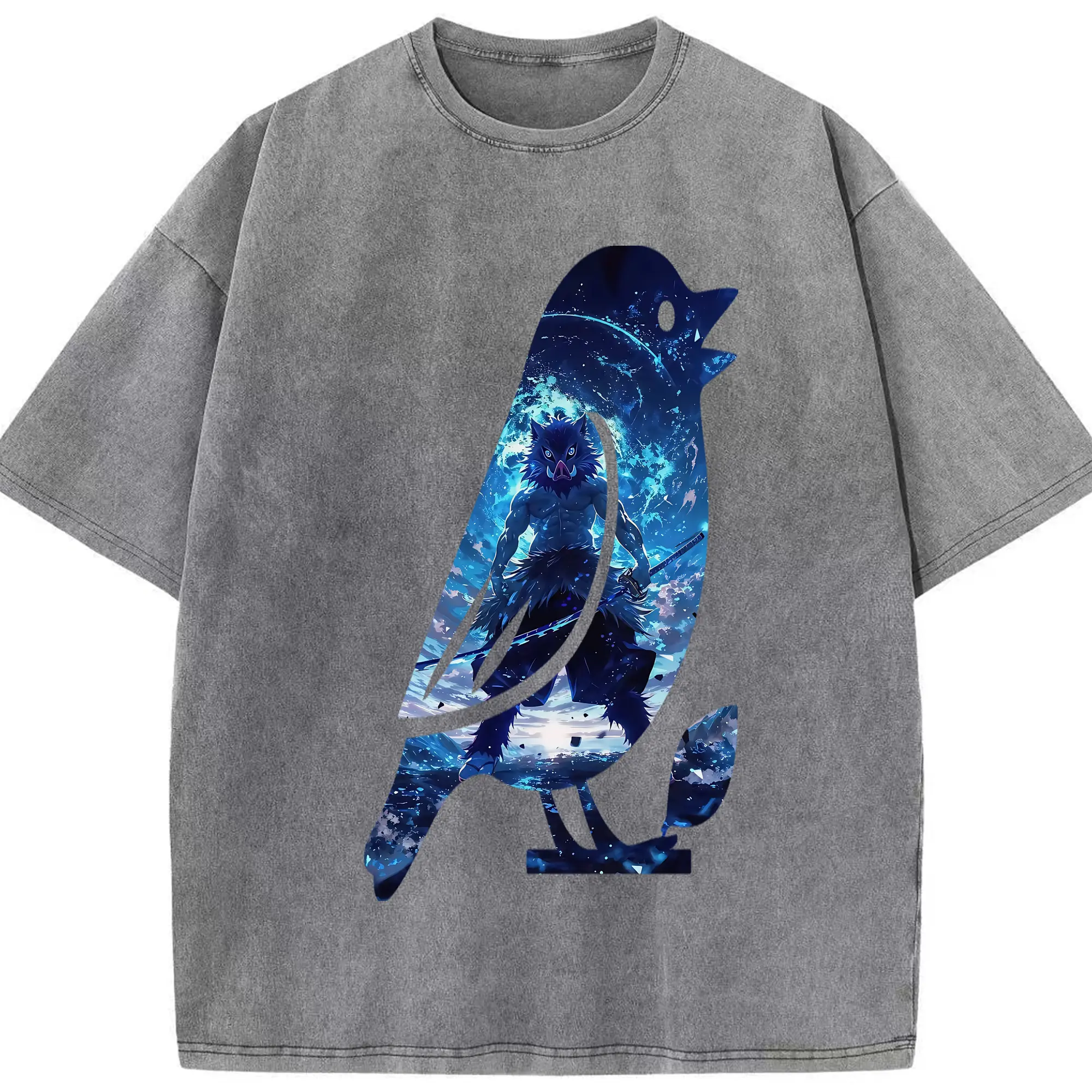 鬼滅の刃 グッズ,嘴平 伊之助 - 綿100% 半袖Tシャツ ・ フロントプリント ・ 快適 通気性 ・ 日常使い 散歩 スポーツ用