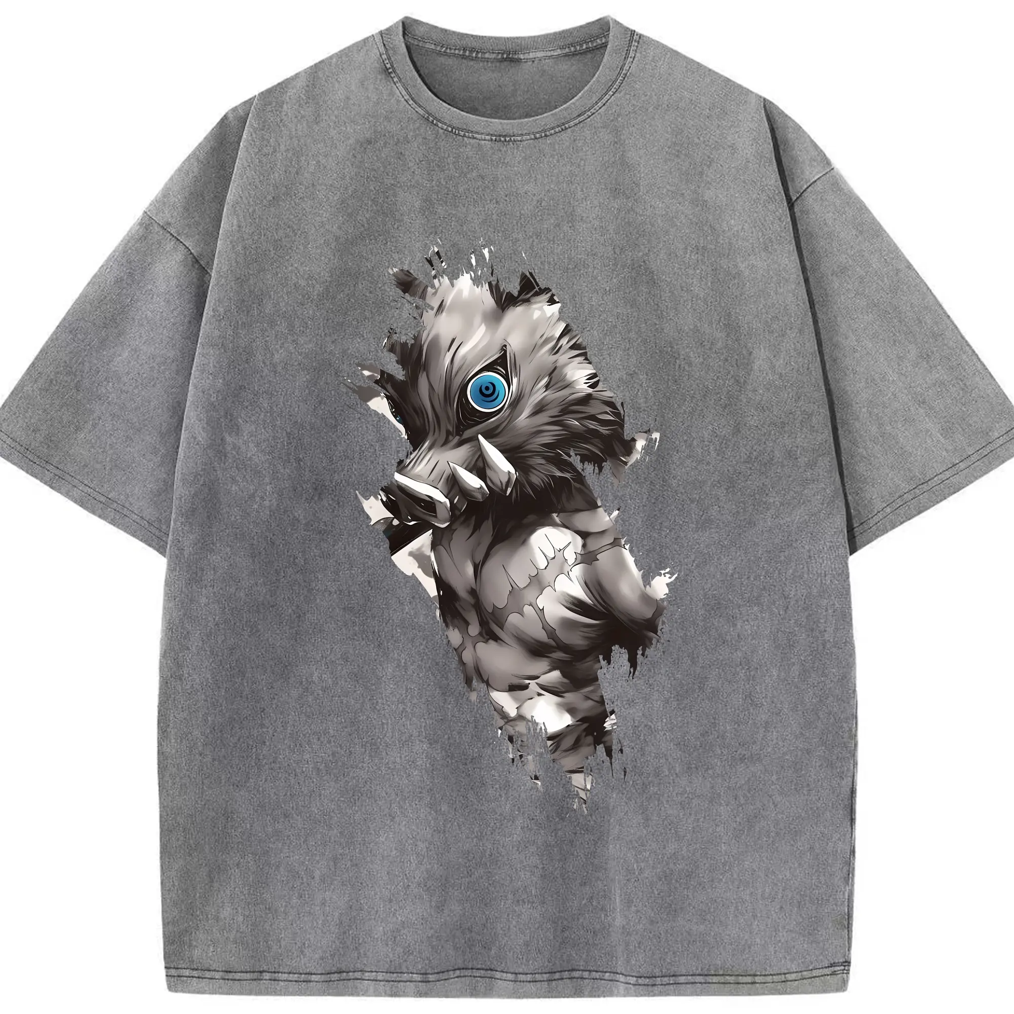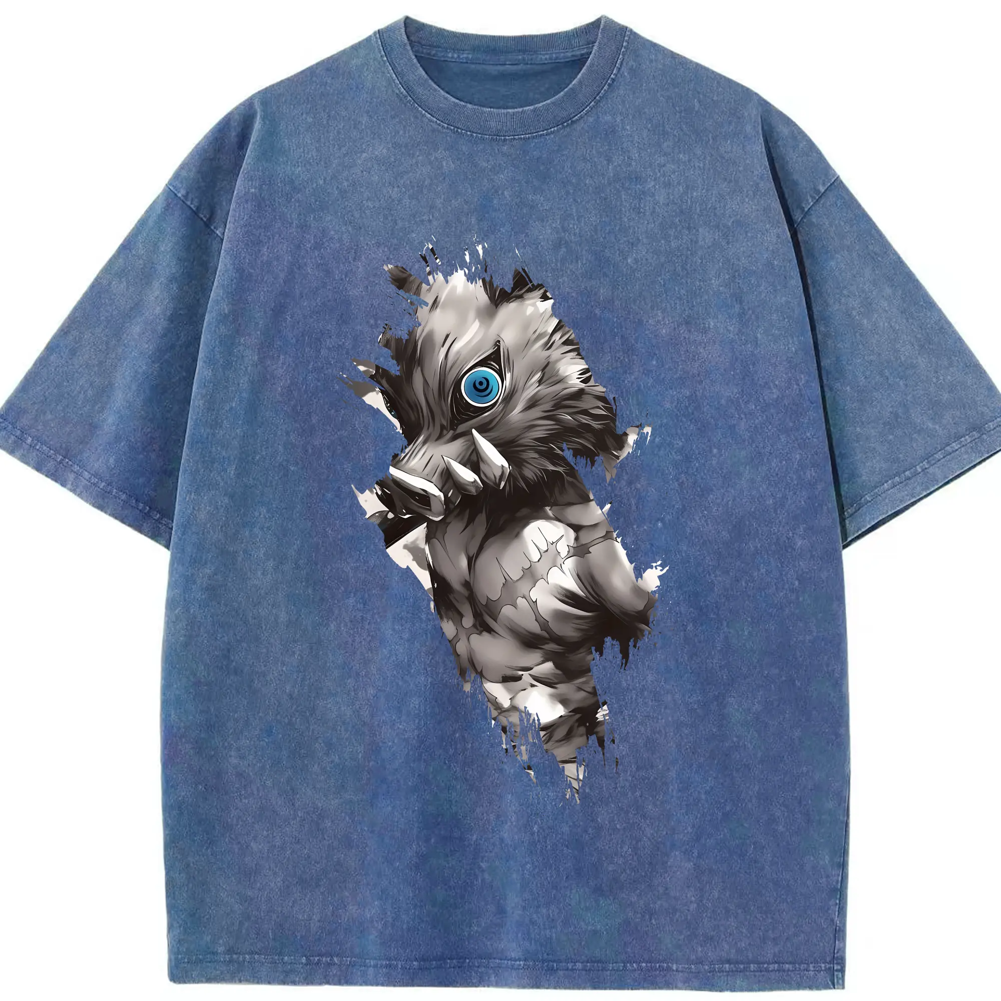 鬼滅の刃 グッズ,嘴平 伊之助 - 綿100% 半袖Tシャツ ・ フロントプリント ・ 快適 通気性 ・ 日常使い 散歩 スポーツ用