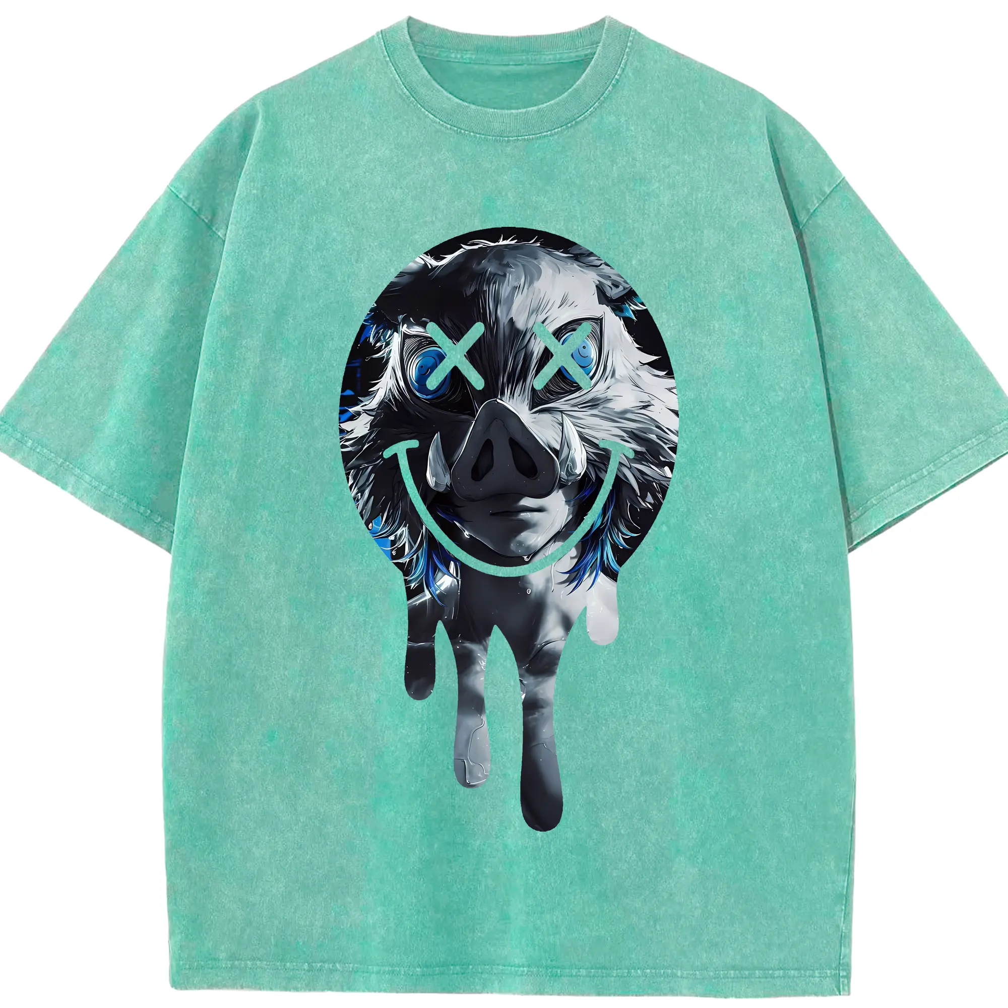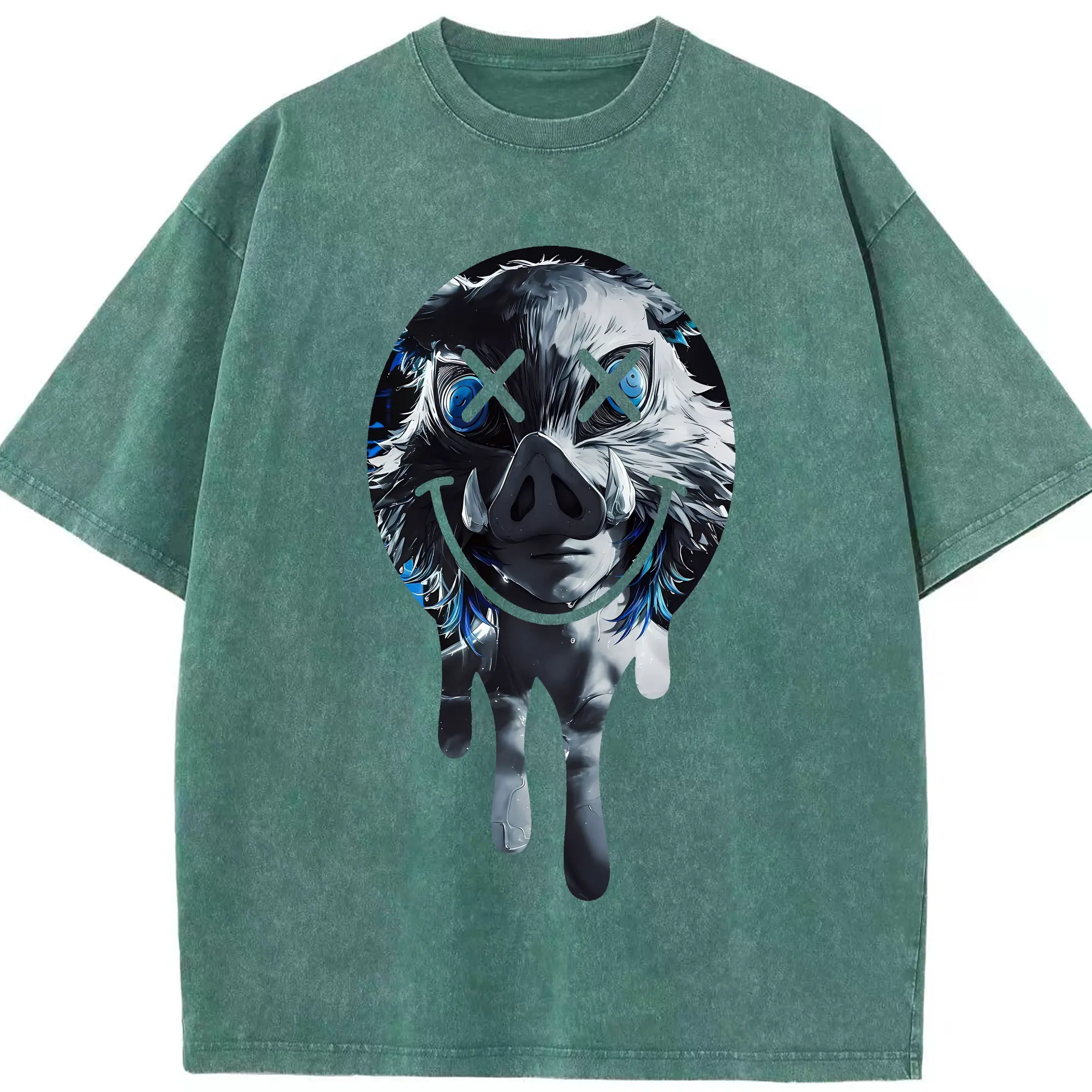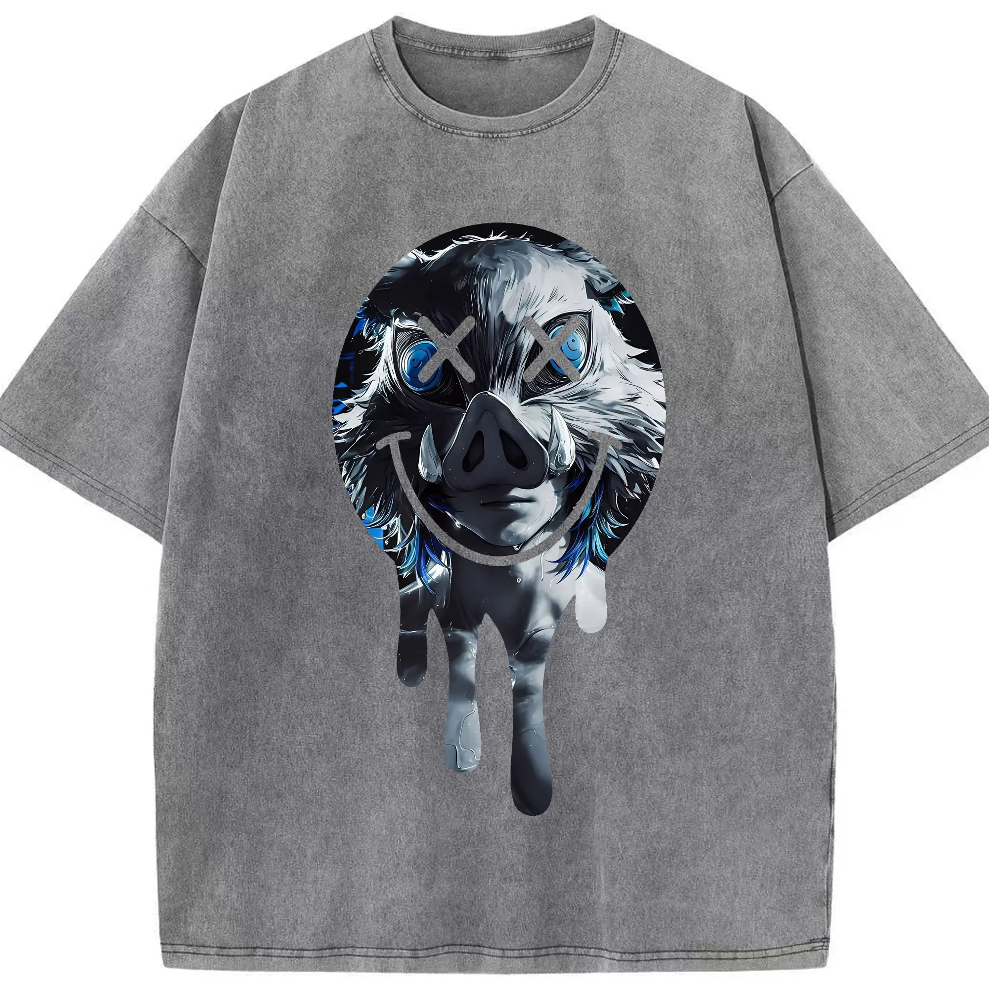 鬼滅の刃 グッズ,嘴平 伊之助 - 綿100% 半袖Tシャツ ・ フロントプリント ・ 快適 通気性 ・ 日常使い 散歩 スポーツ用