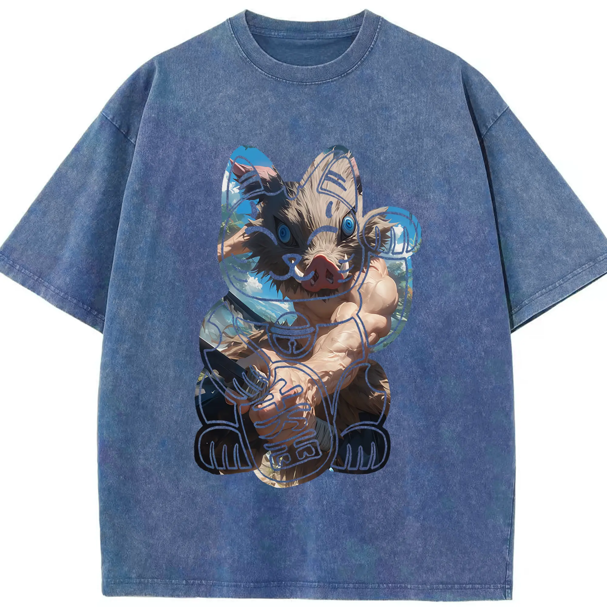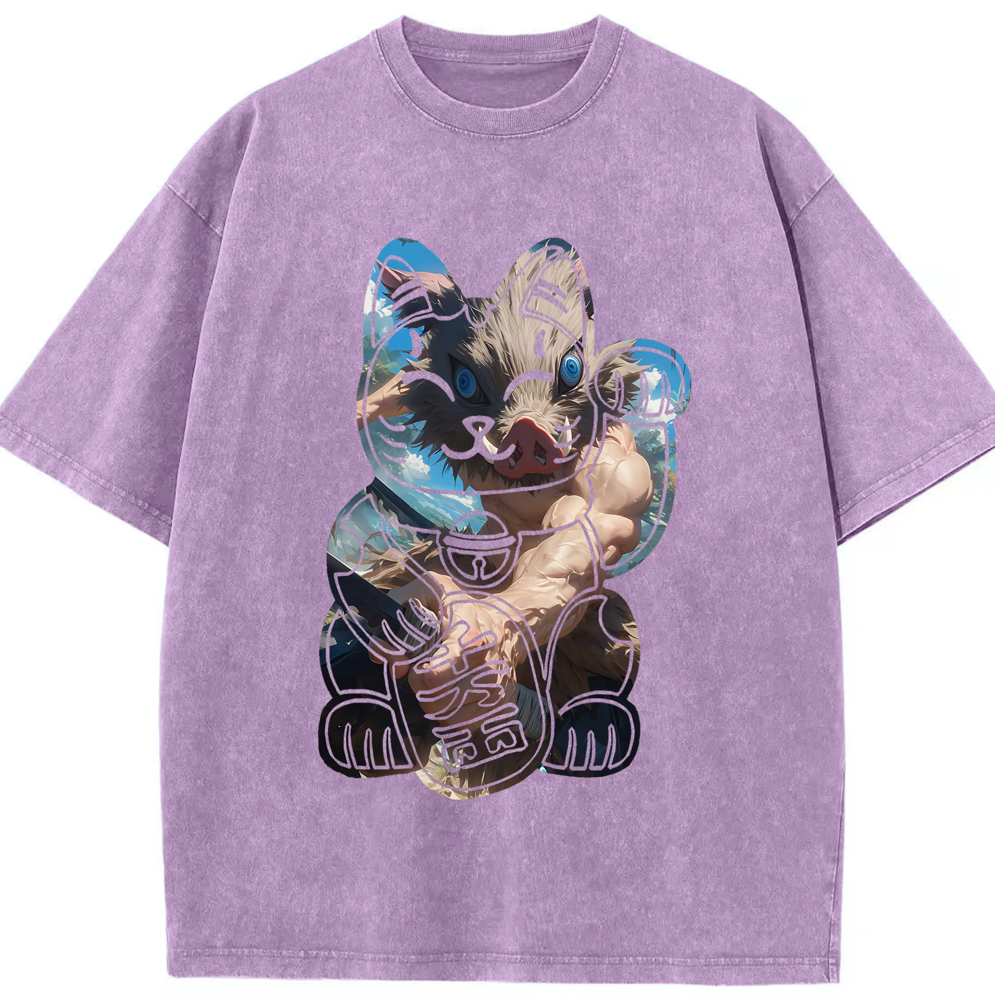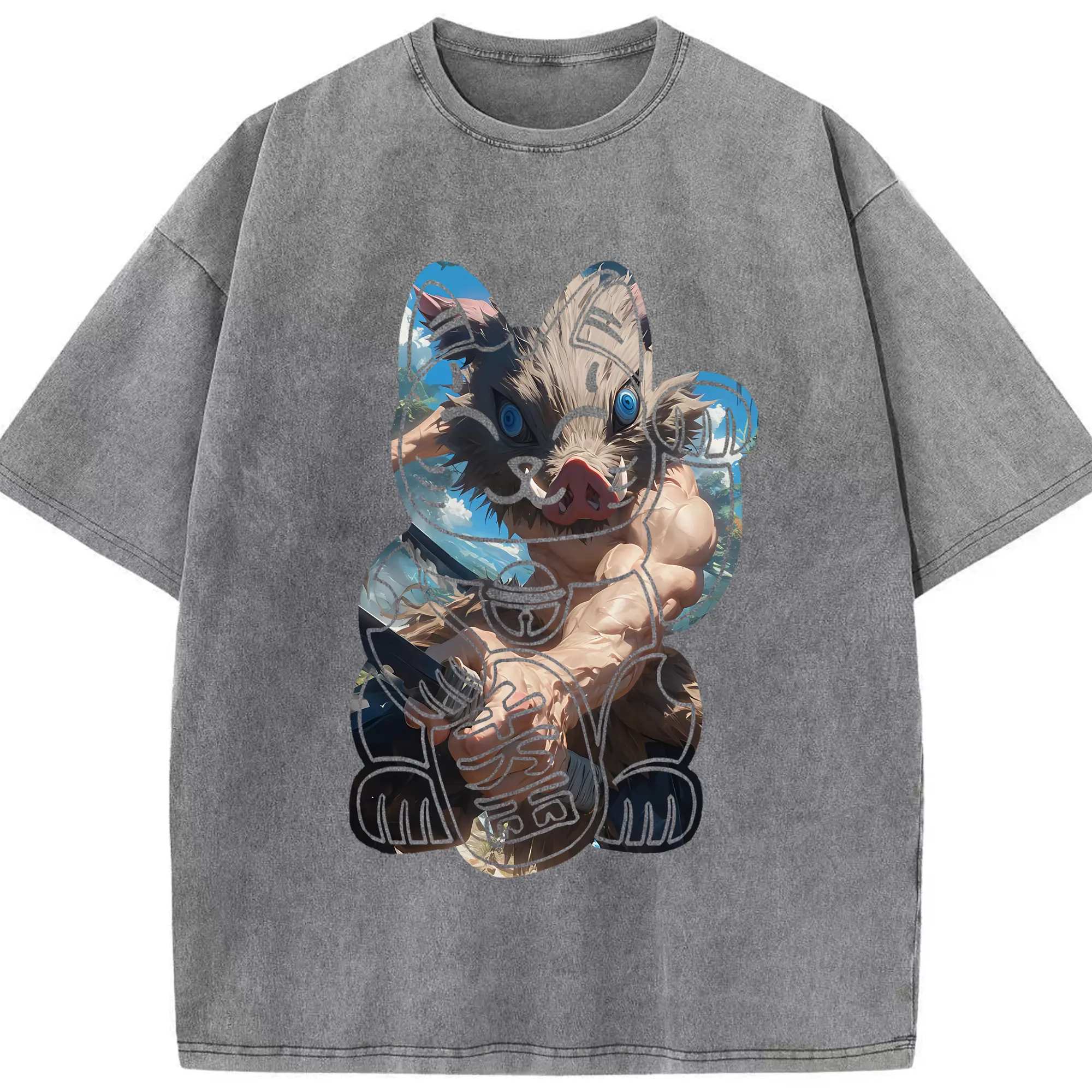 鬼滅の刃 グッズ,嘴平 伊之助 - 綿100% 半袖Tシャツ ・ フロントプリント ・ 快適 通気性 ・ 日常使い 散歩 スポーツ用