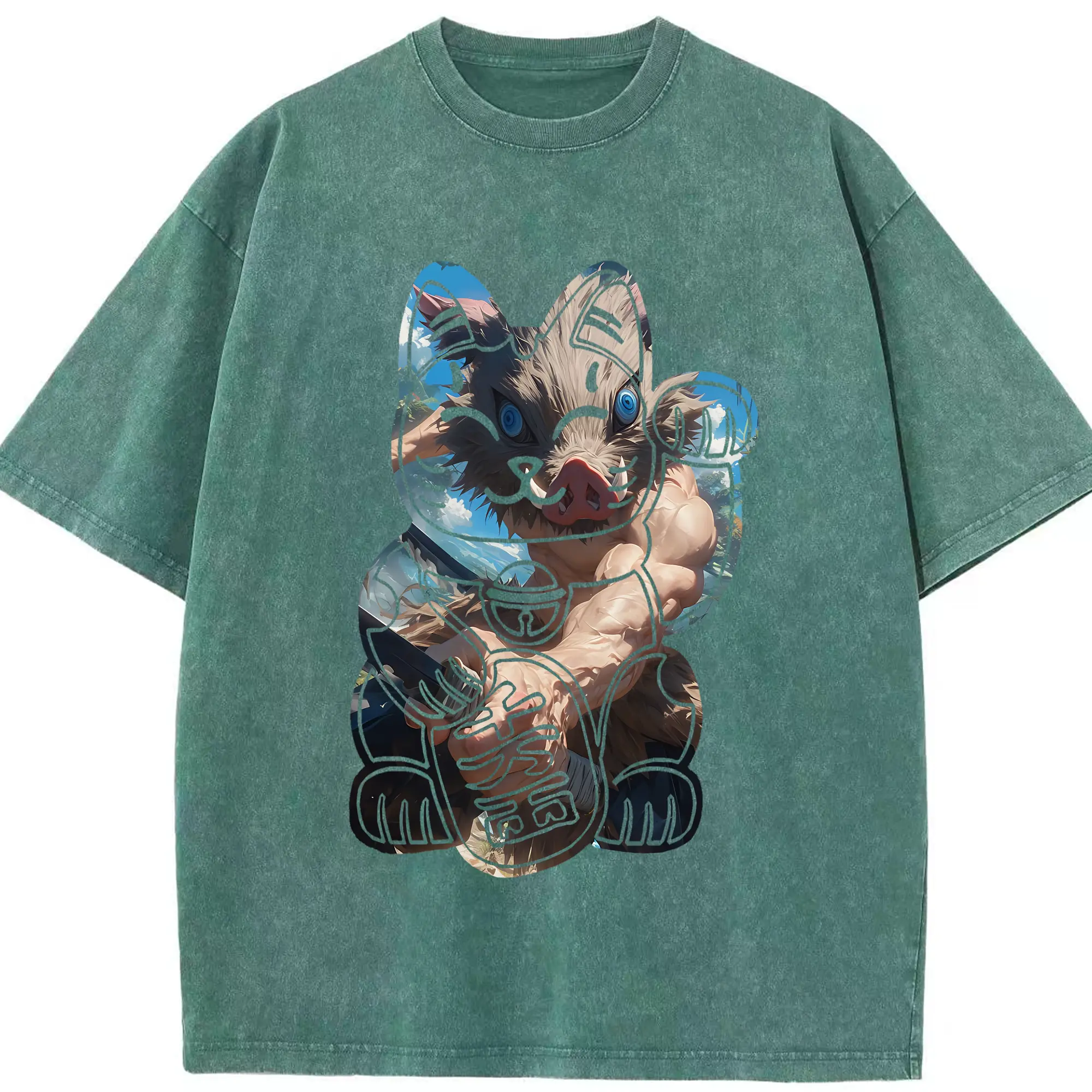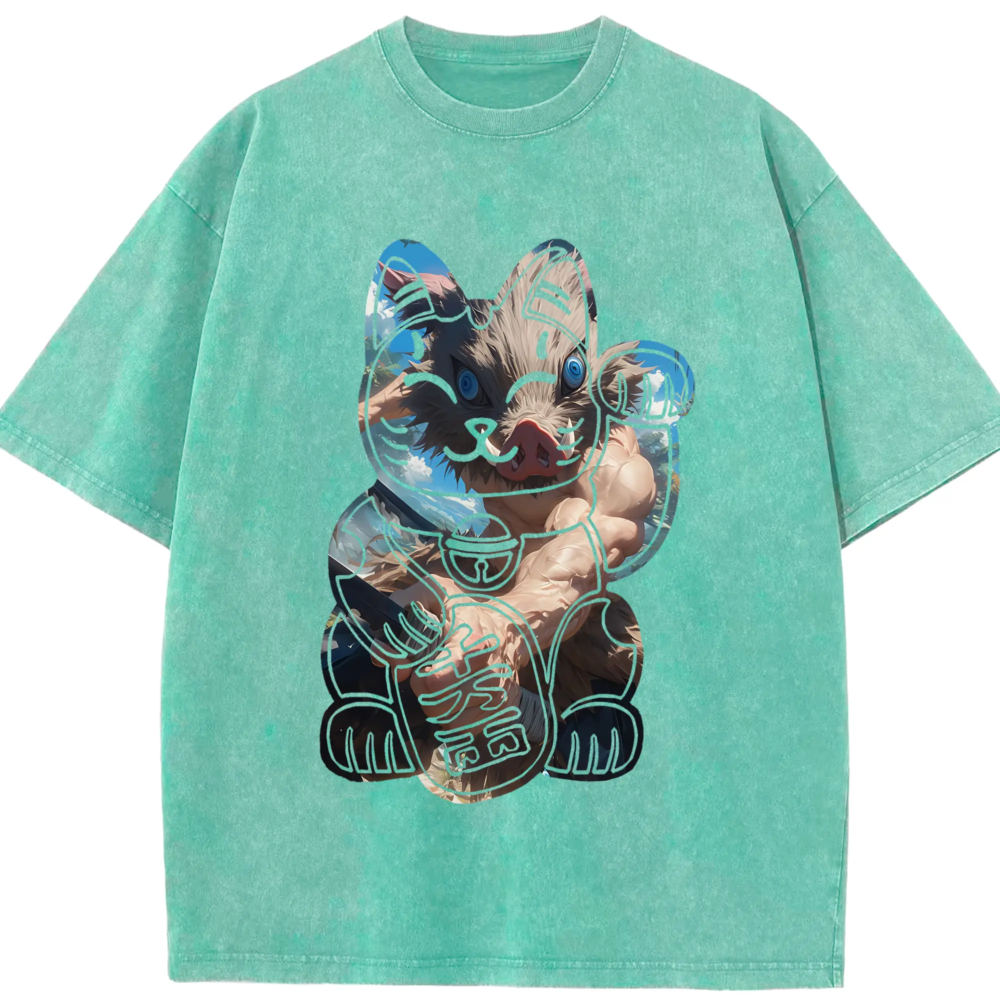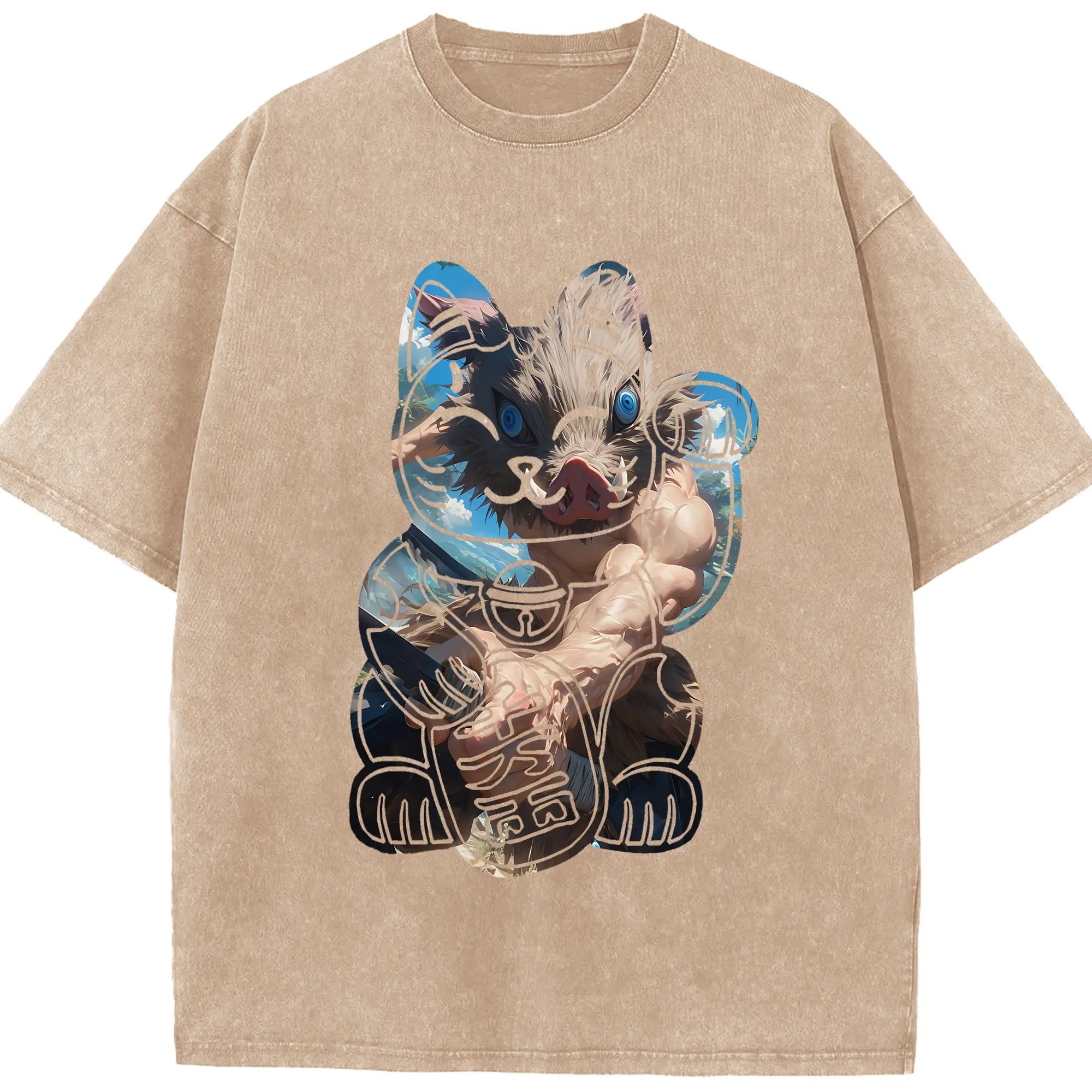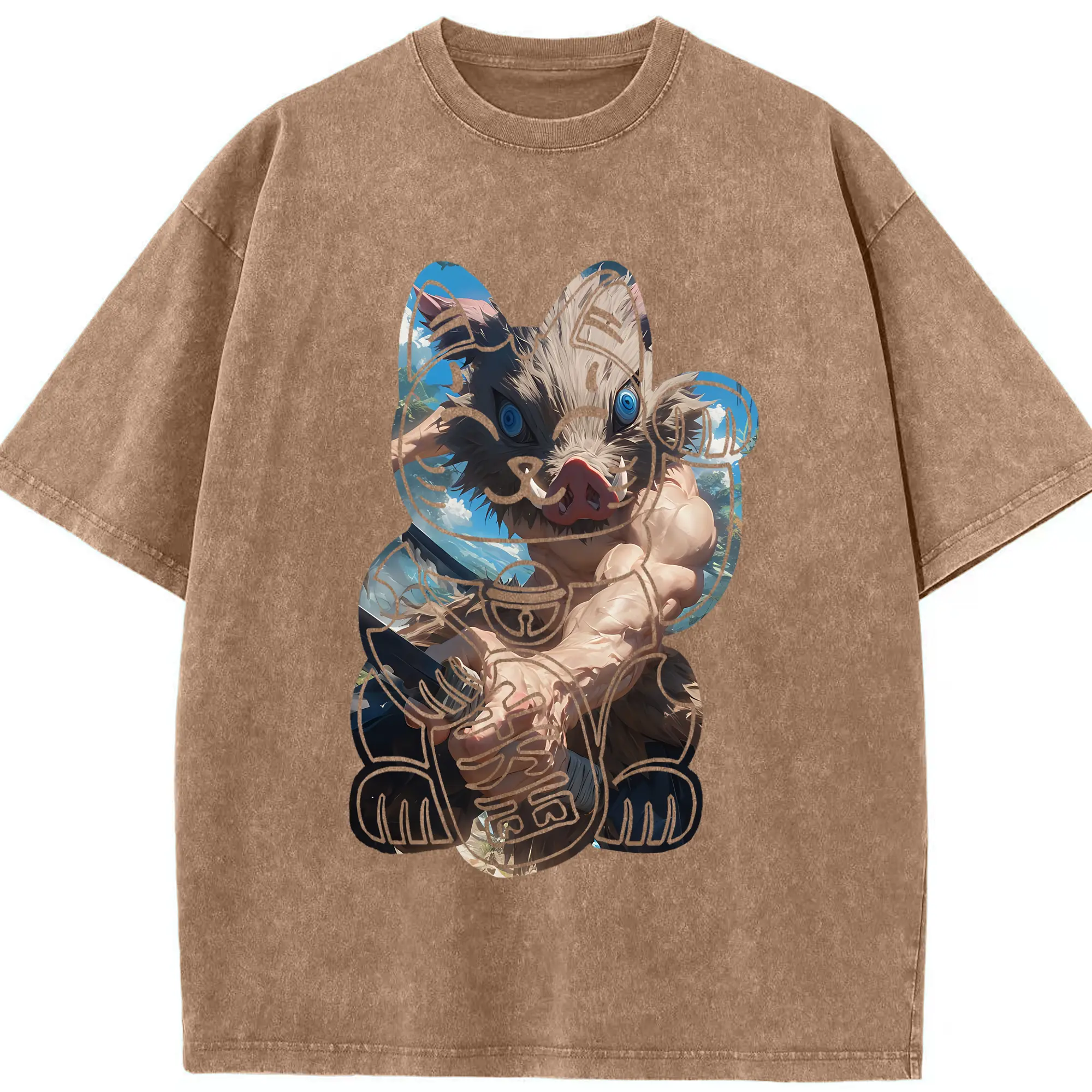 鬼滅の刃 グッズ,嘴平 伊之助 - 綿100% 半袖Tシャツ ・ フロントプリント ・ 快適 通気性 ・ 日常使い 散歩 スポーツ用