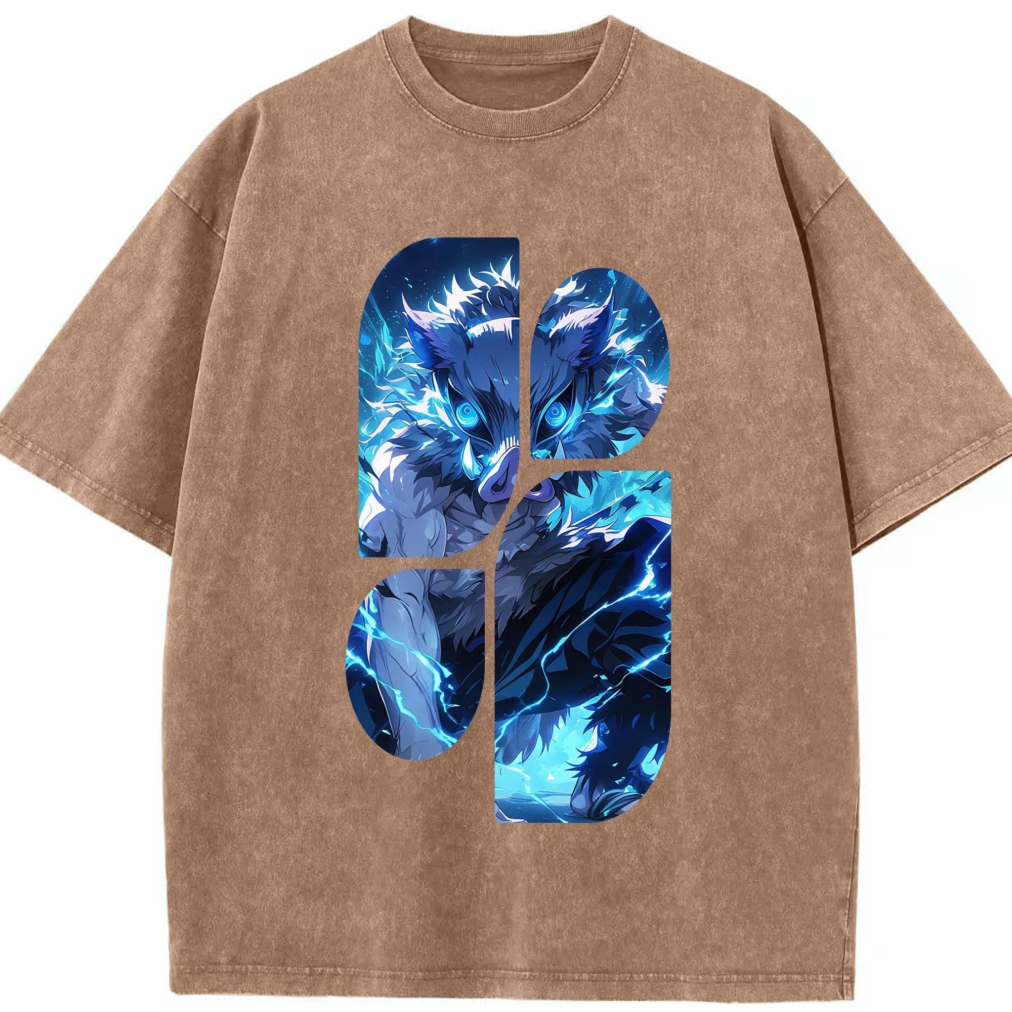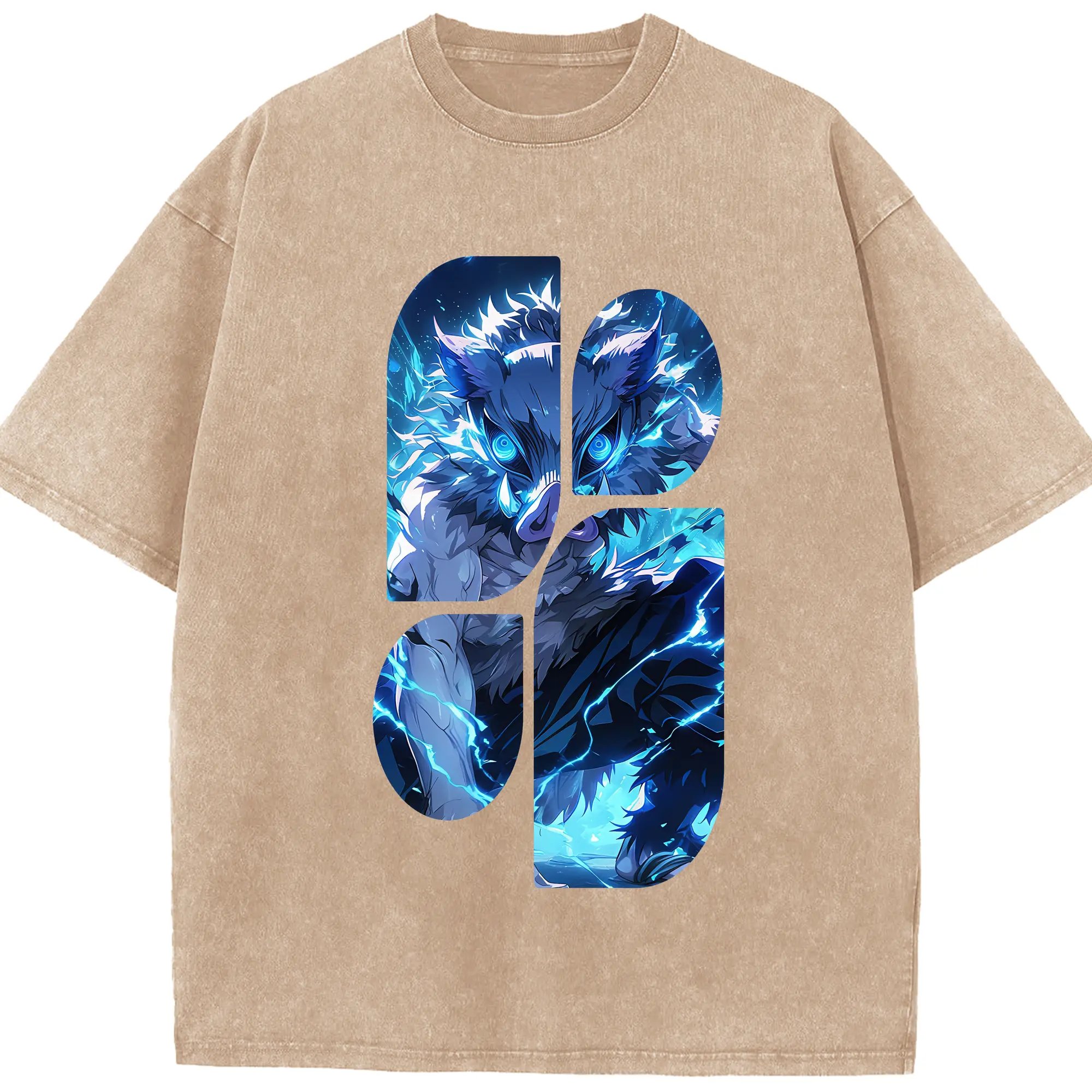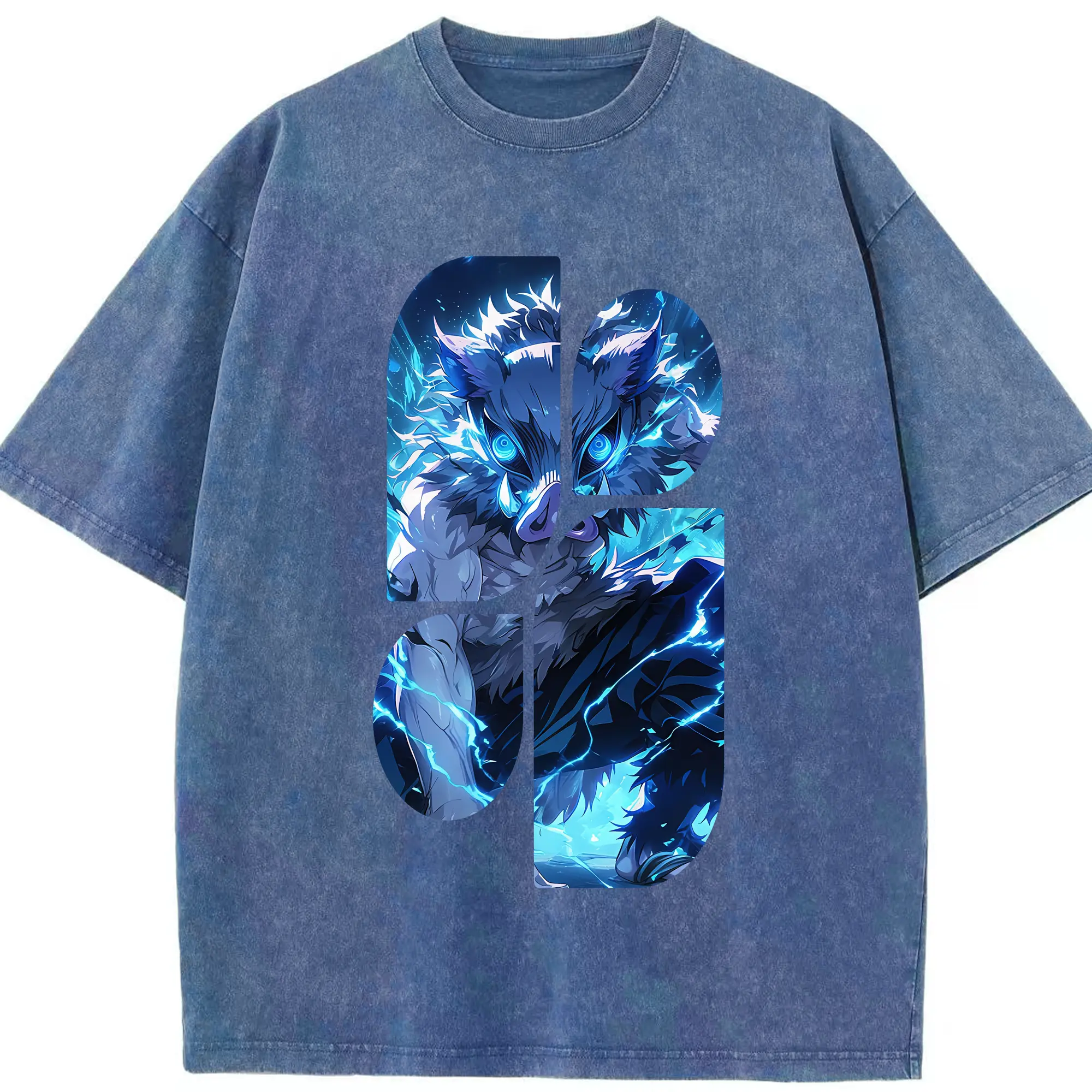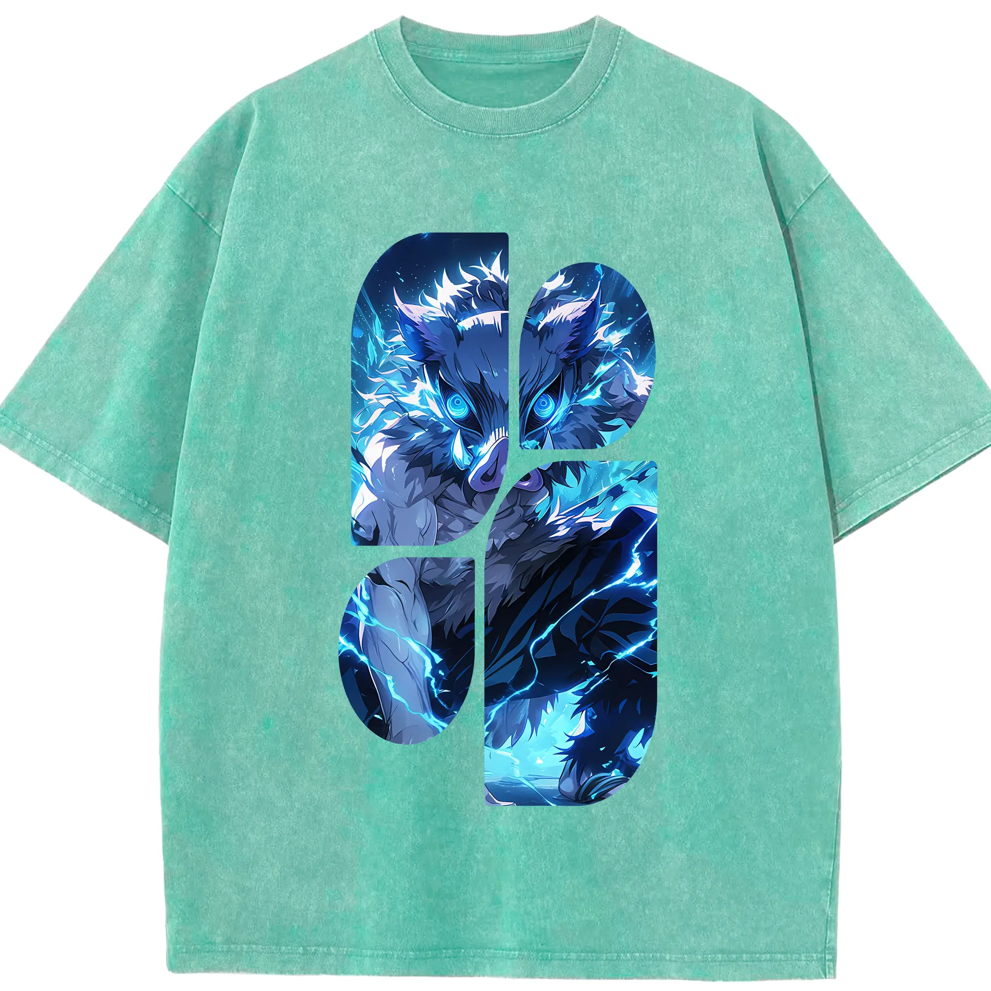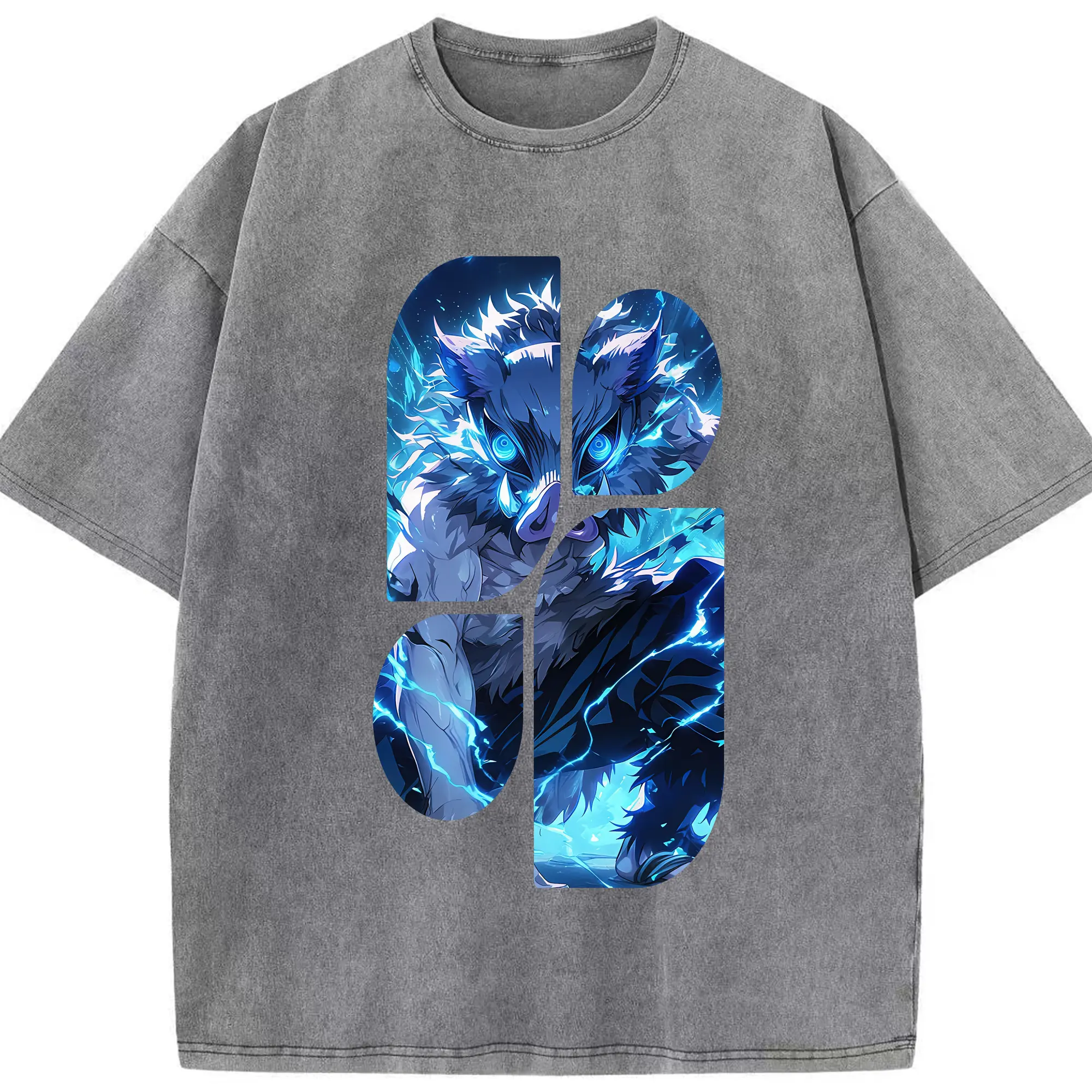 鬼滅の刃 グッズ,嘴平 伊之助 - 綿100% 半袖Tシャツ ・ フロントプリント ・ 快適 通気性 ・ 日常使い 散歩 スポーツ用