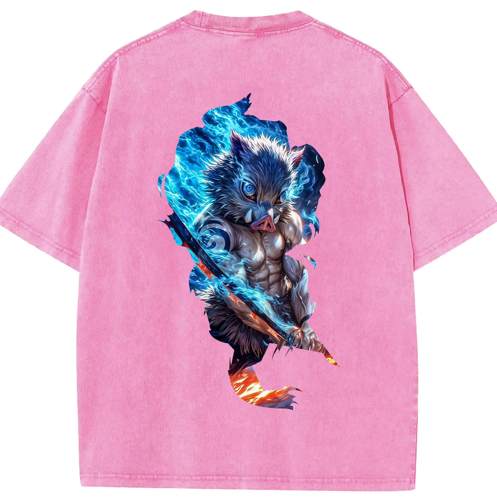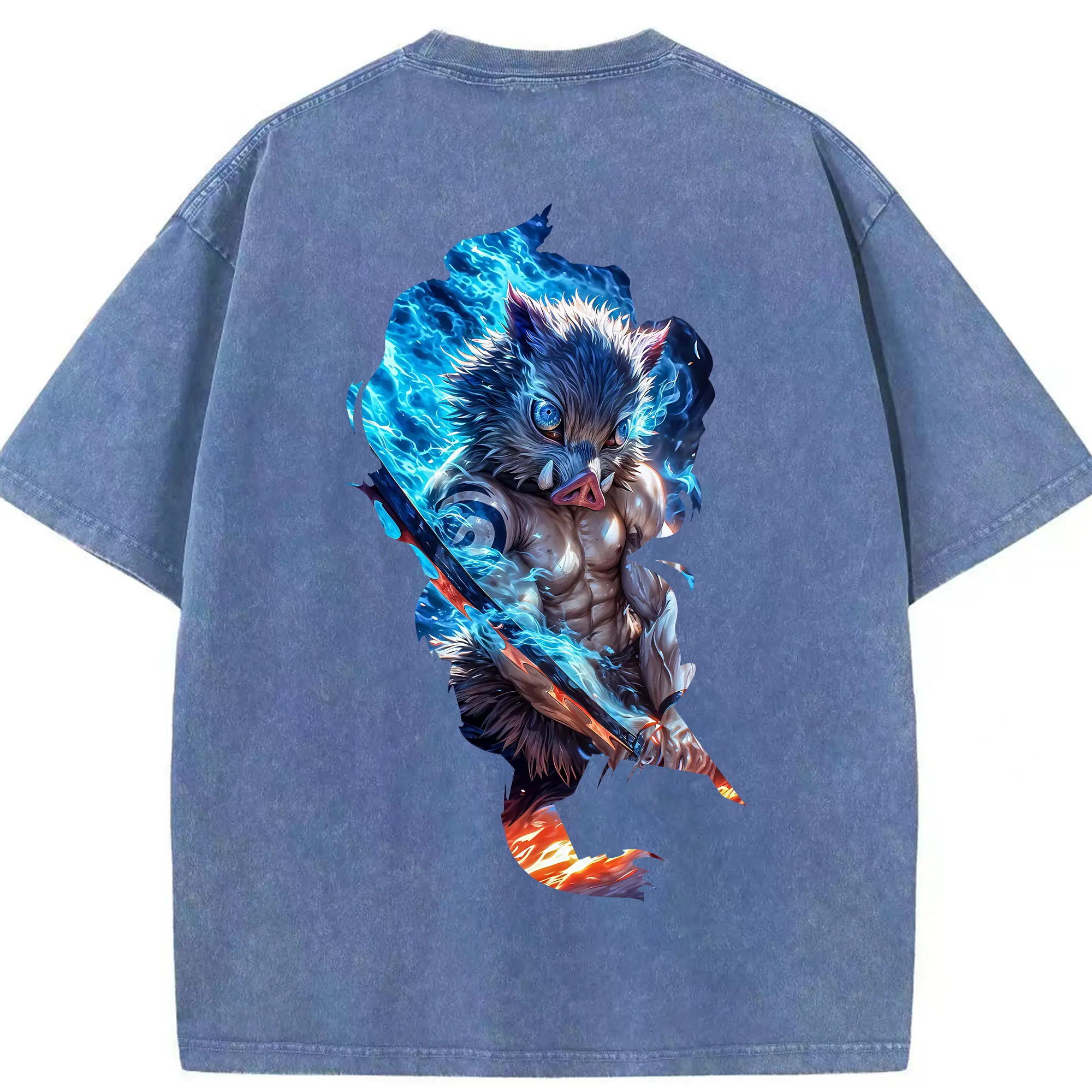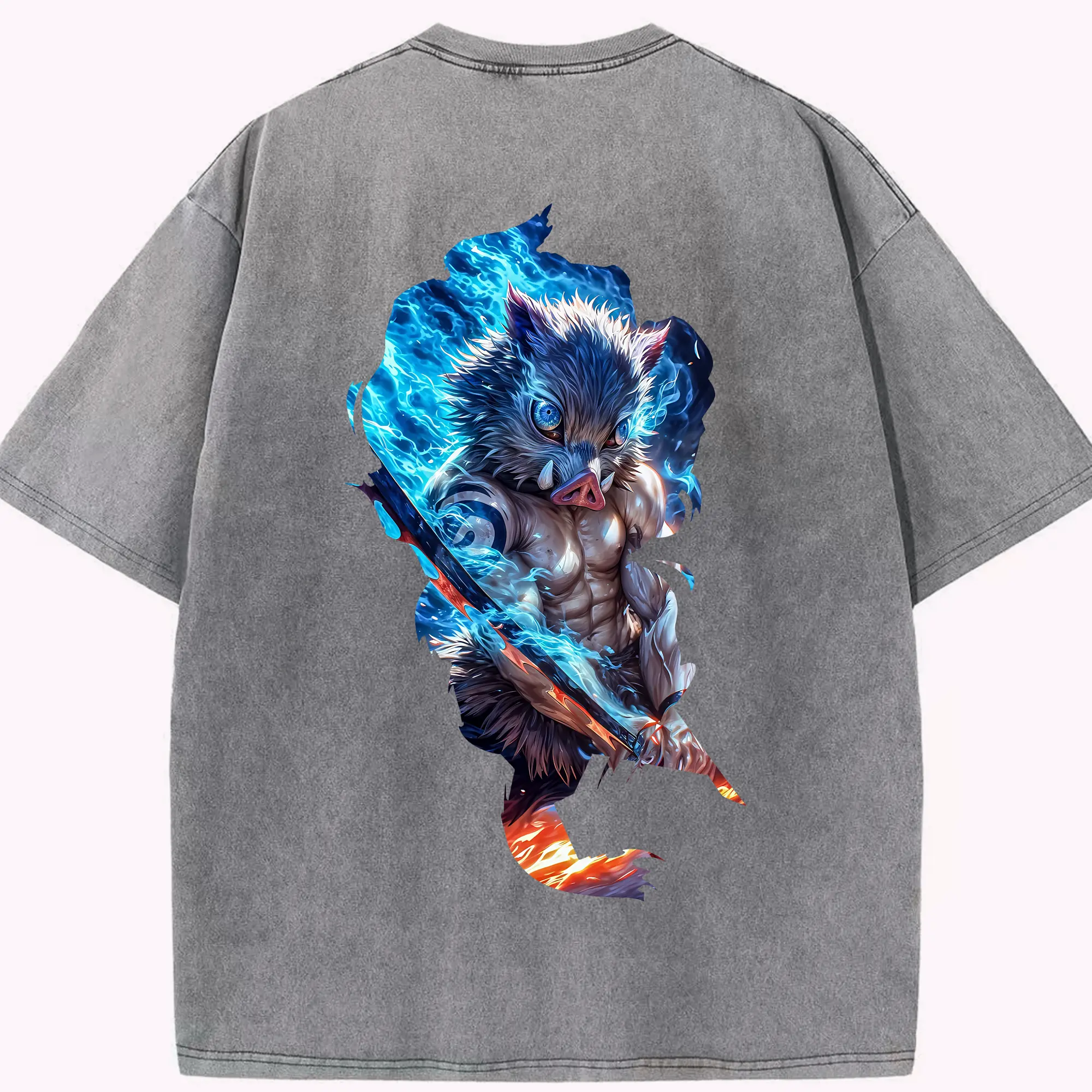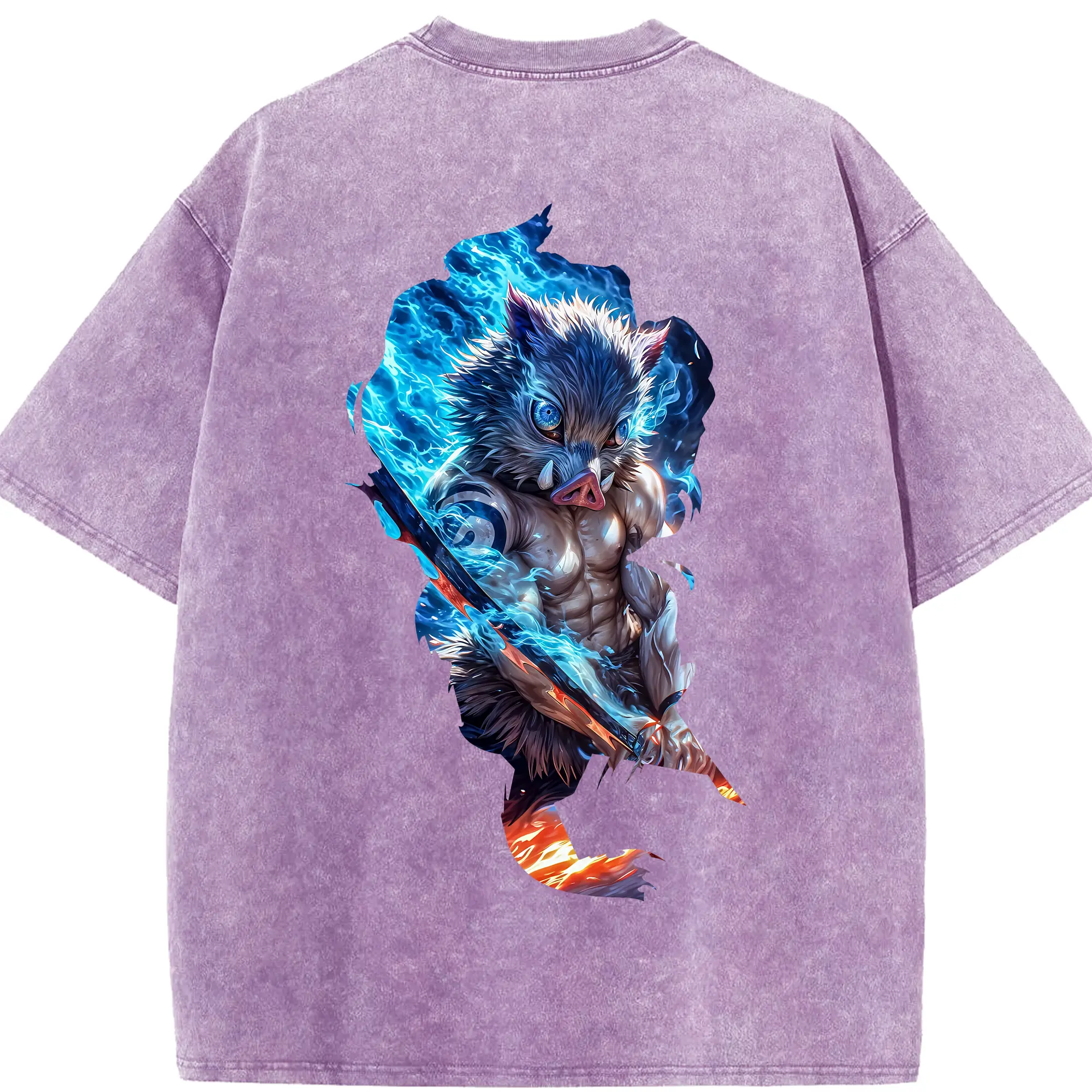 鬼滅の刃 グッズ,嘴平 伊之助 - 綿100% 半袖Tシャツ ・ バックプリント ・ 快適 通気性 ・ 日常使い 散歩 スポーツ用