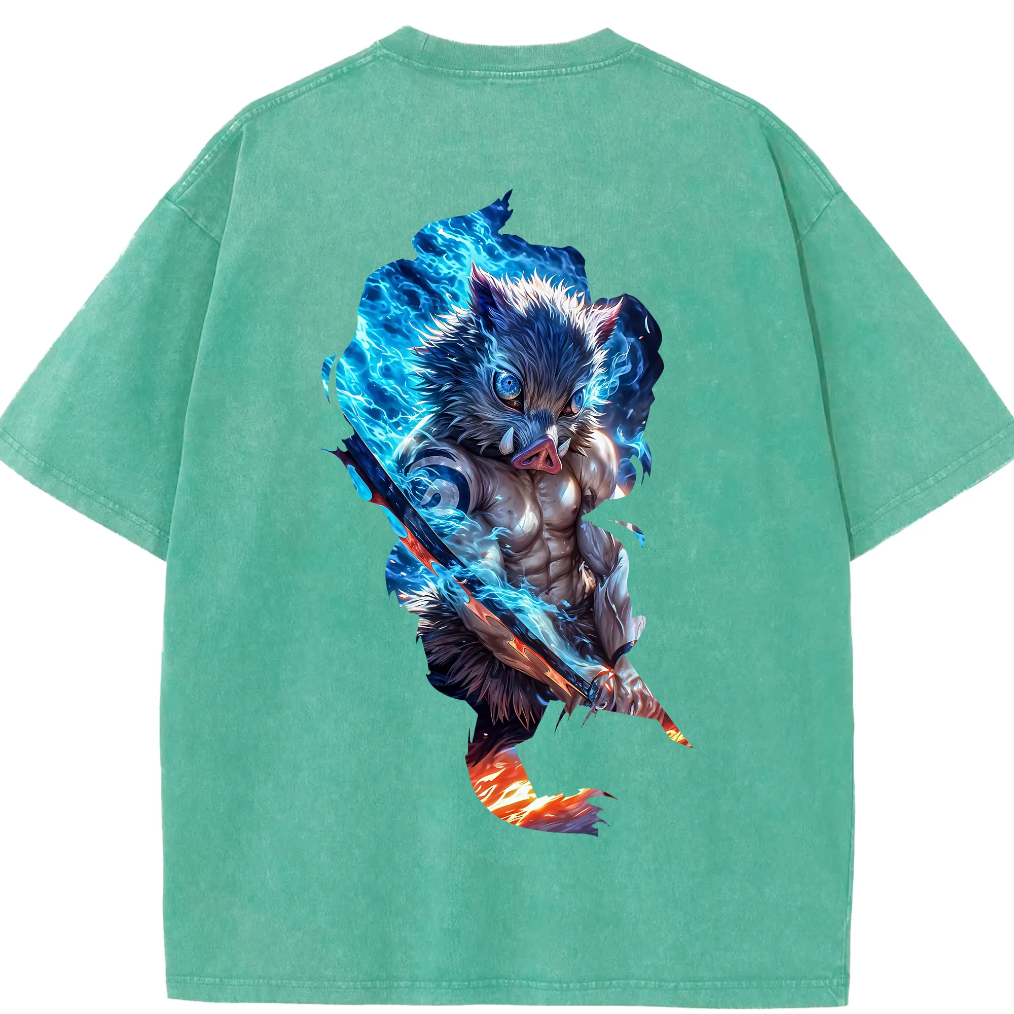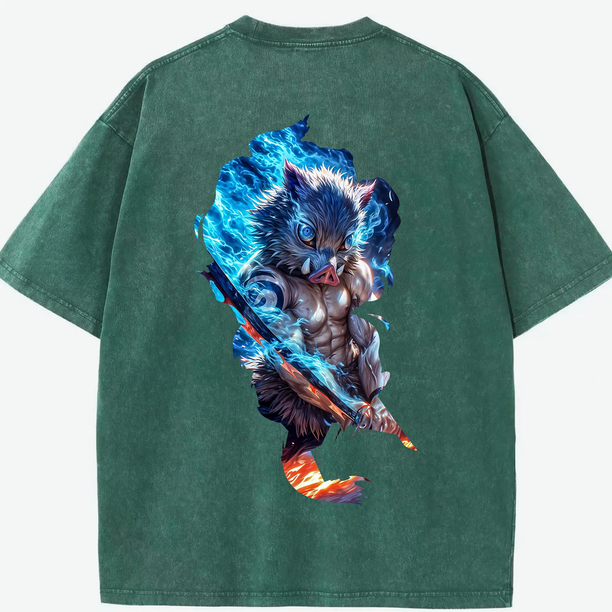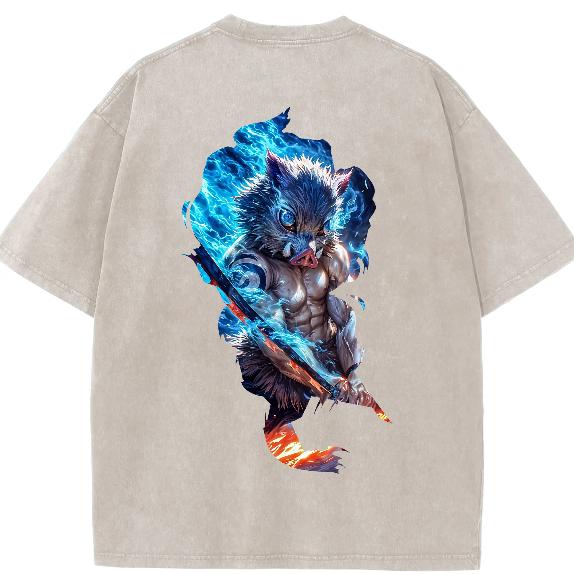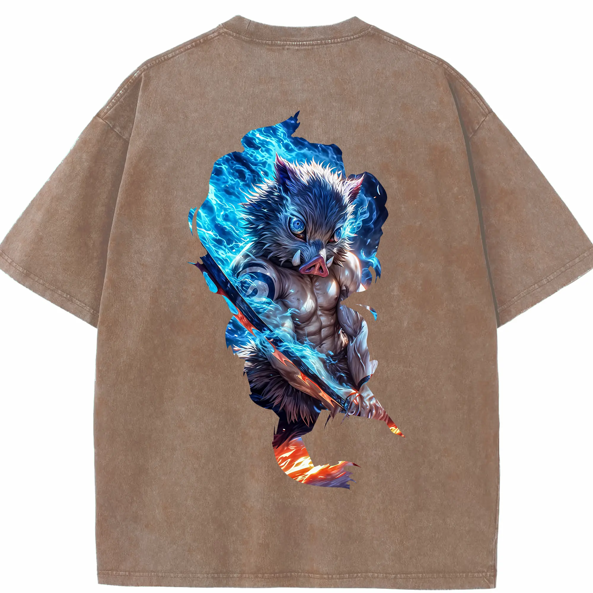 鬼滅の刃 グッズ,嘴平 伊之助 - 綿100% 半袖Tシャツ ・ バックプリント ・ 快適 通気性 ・ 日常使い 散歩 スポーツ用