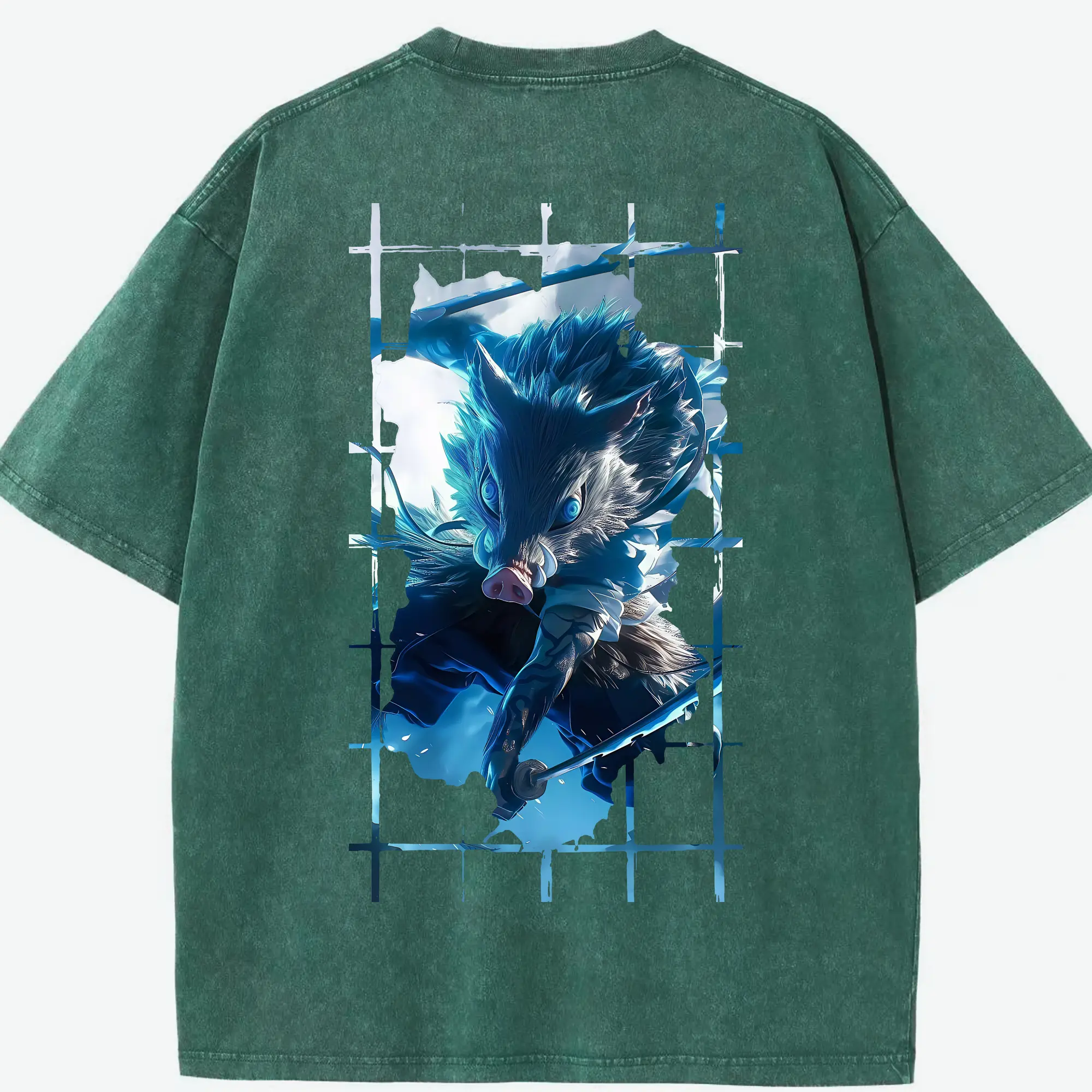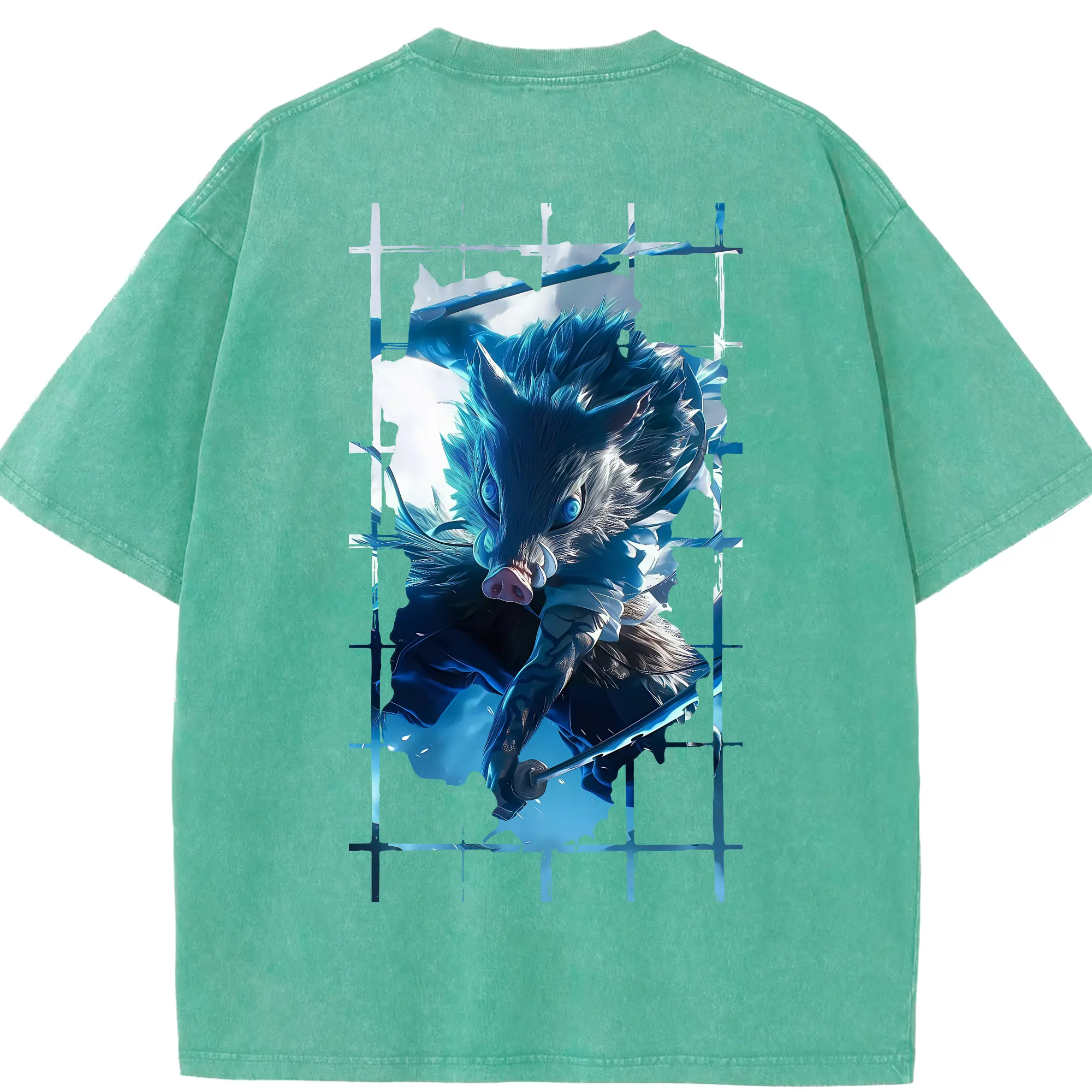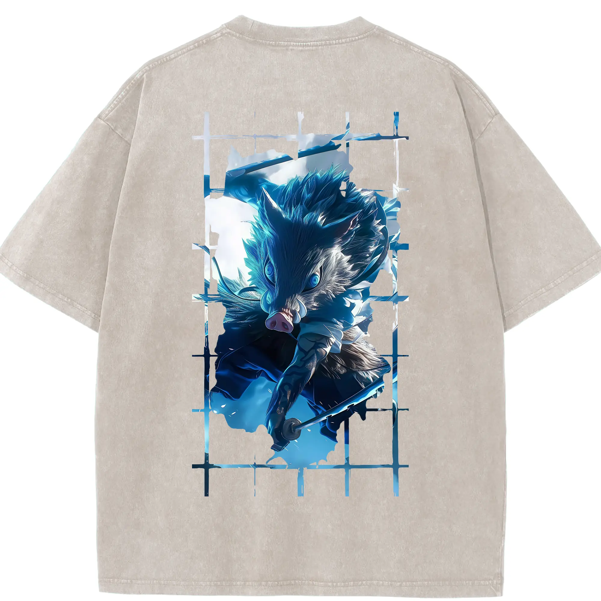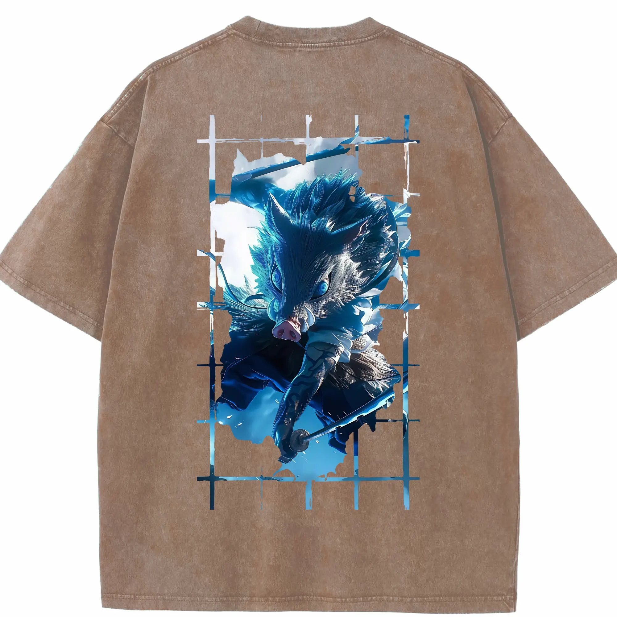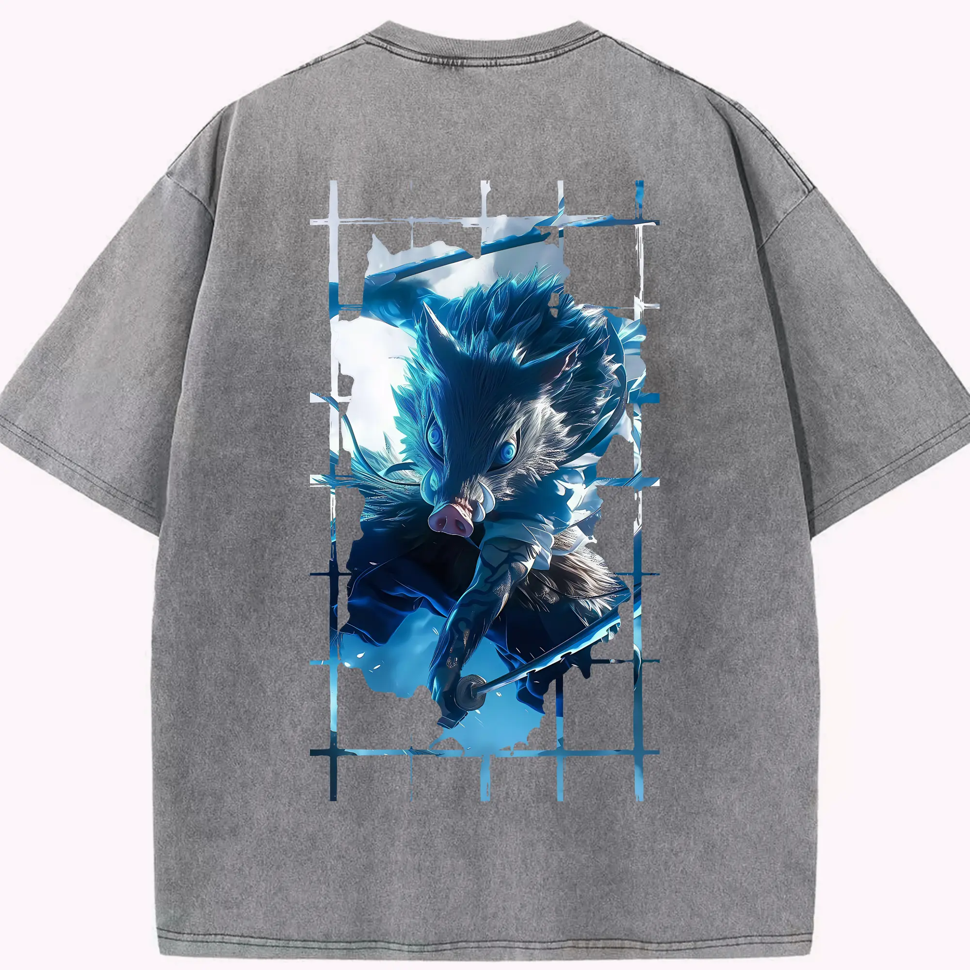 鬼滅の刃 グッズ,嘴平 伊之助 - 綿100% 半袖Tシャツ ・ フロントプリント ・ 快適 通気性 ・ 日常使い 散歩 スポーツ用