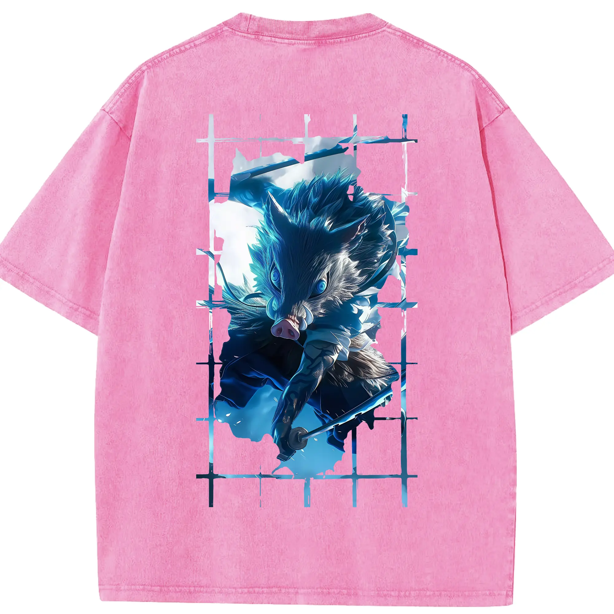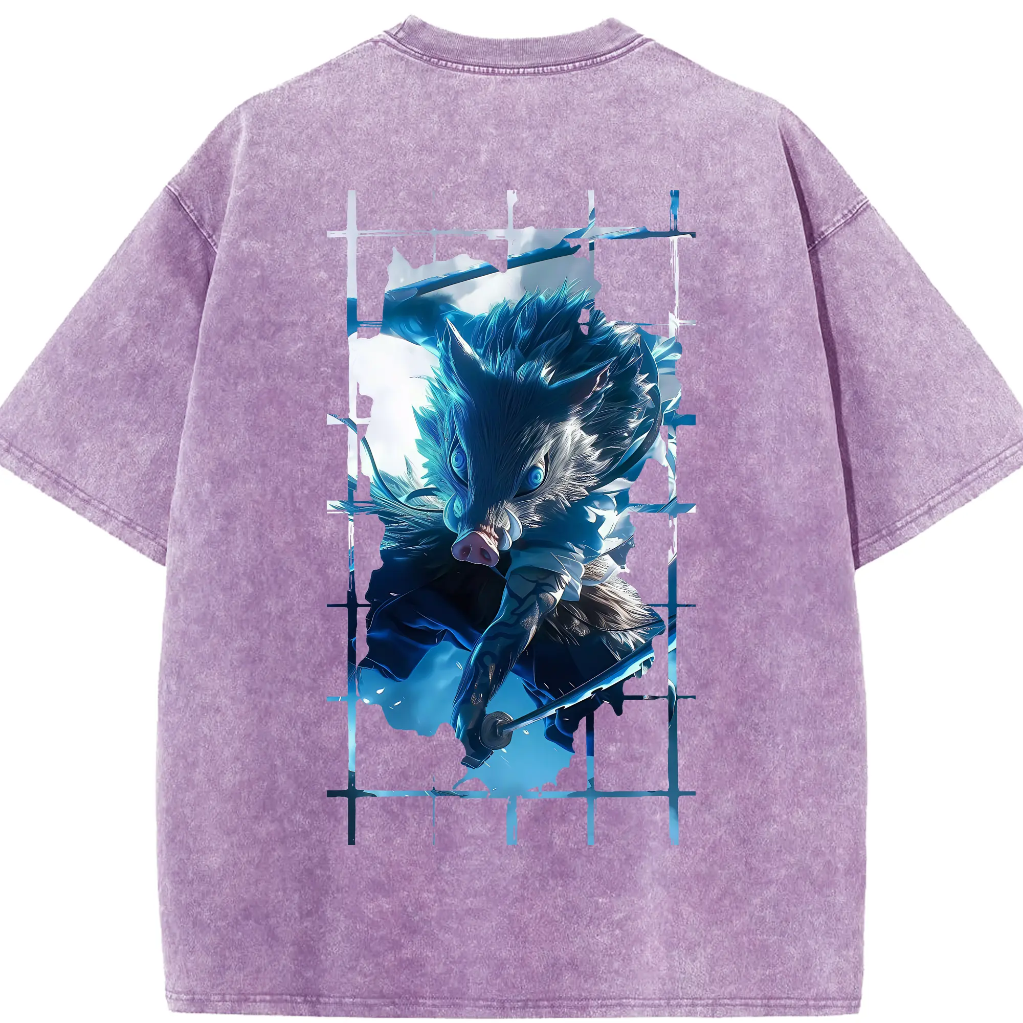 鬼滅の刃 グッズ,嘴平 伊之助 - 綿100% 半袖Tシャツ ・ バックプリント ・ 快適 通気性 ・ 日常使い 散歩 スポーツ用