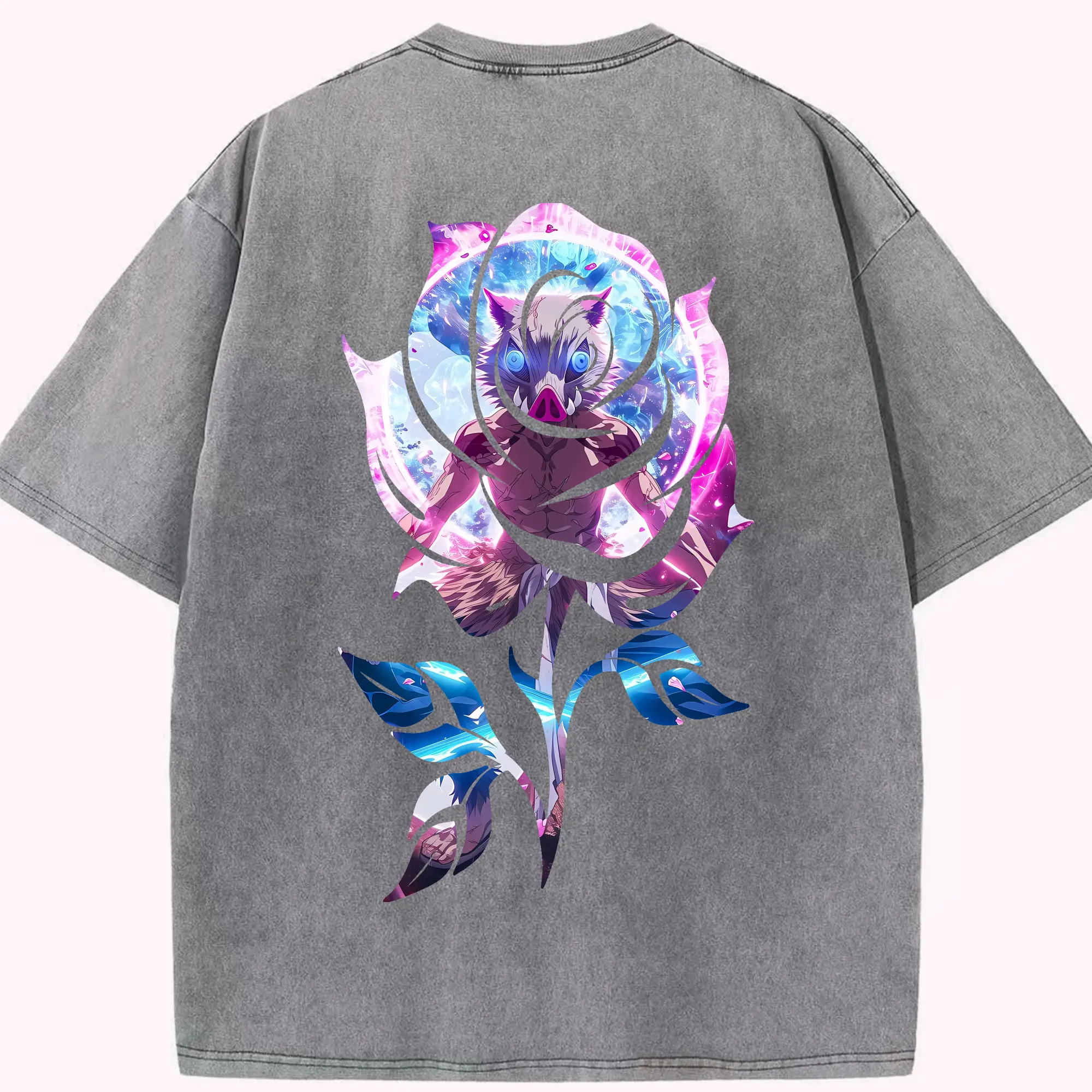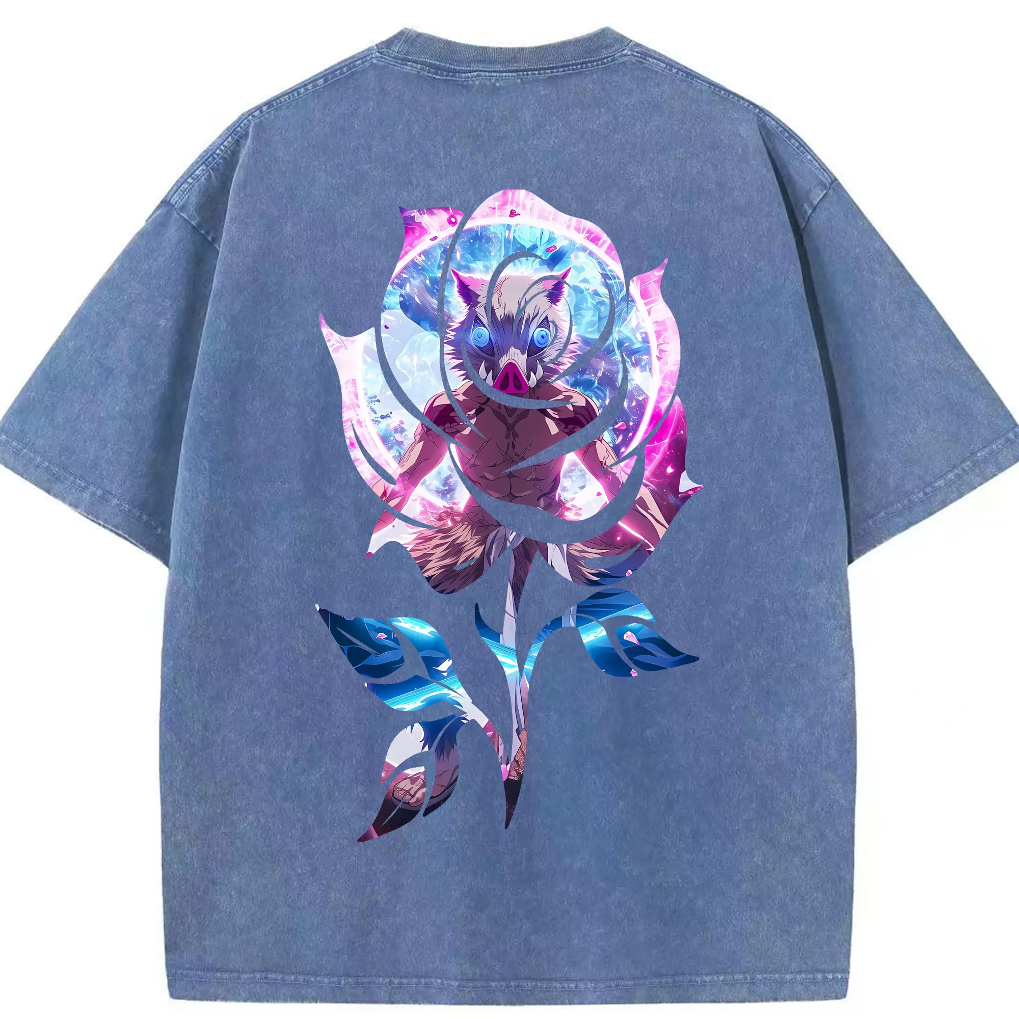 鬼滅の刃 グッズ,嘴平 伊之助 - 綿100% 半袖Tシャツ ・ フロントプリント ・ 快適 通気性 ・ 日常使い 散歩 スポーツ用