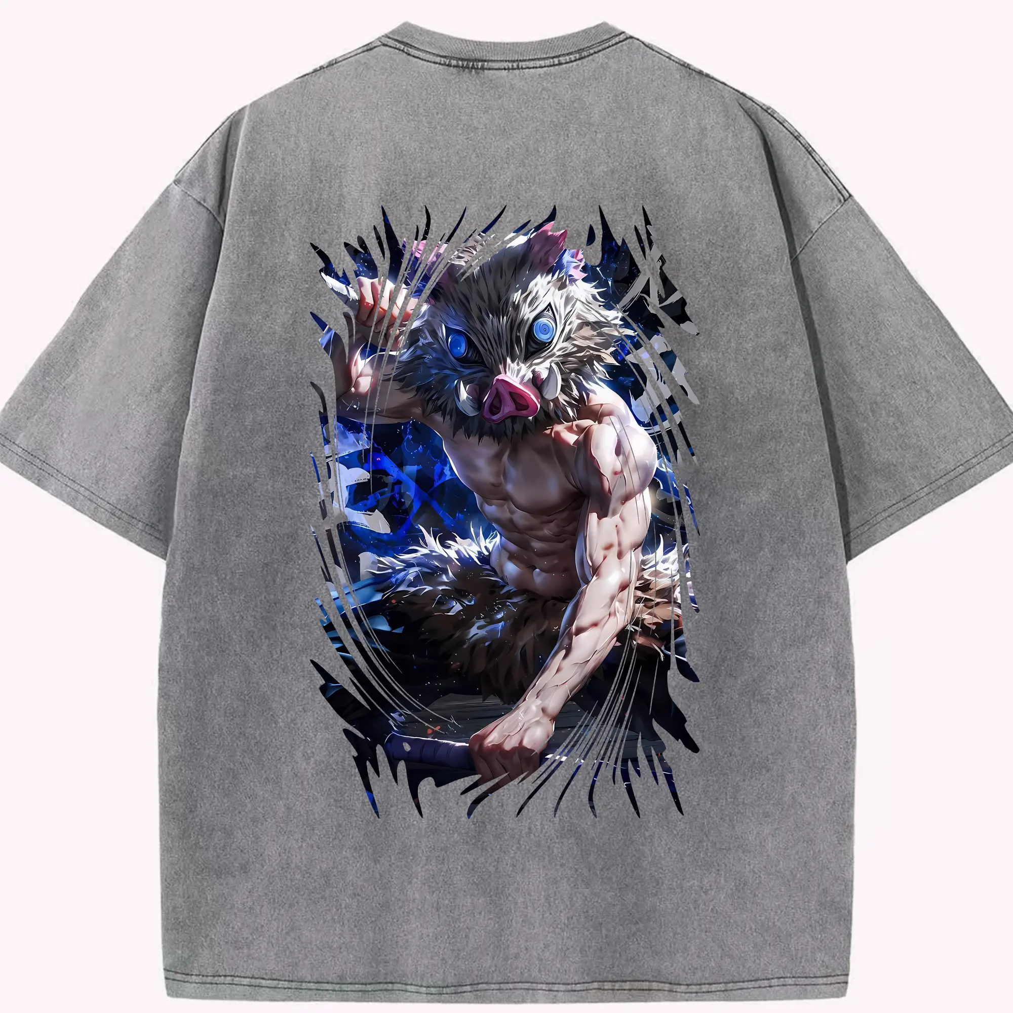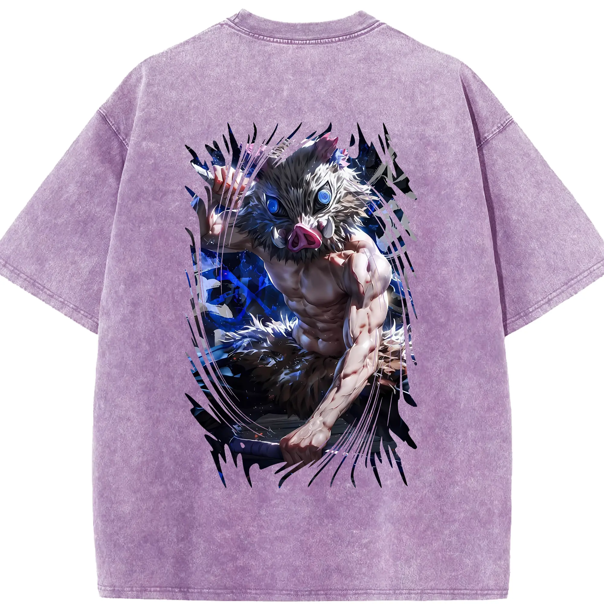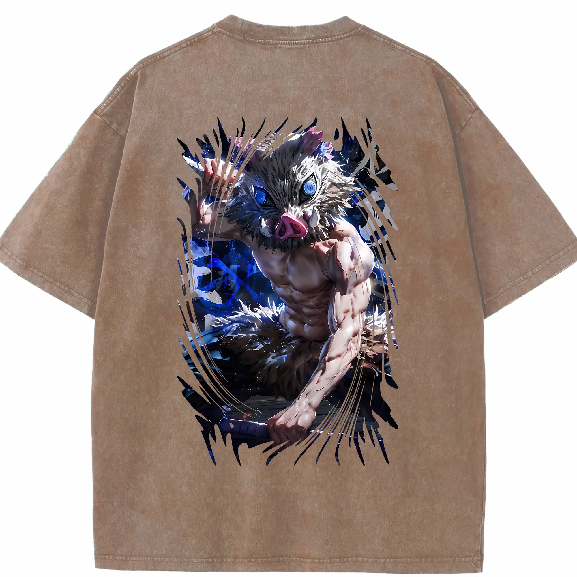 鬼滅の刃 グッズ,嘴平 伊之助 - 綿100% 半袖Tシャツ ・ フロントプリント ・ 快適 通気性 ・ 日常使い 散歩 スポーツ用