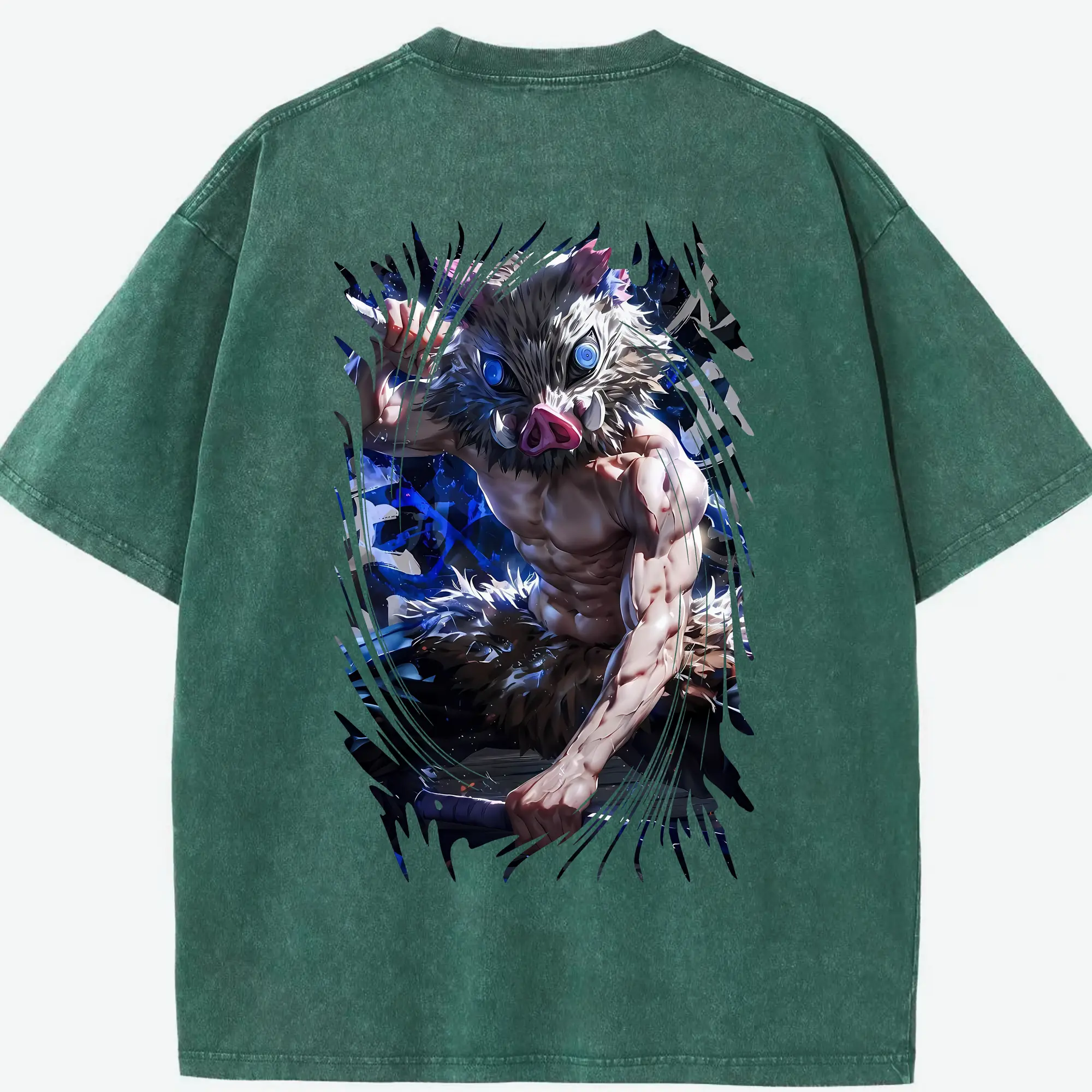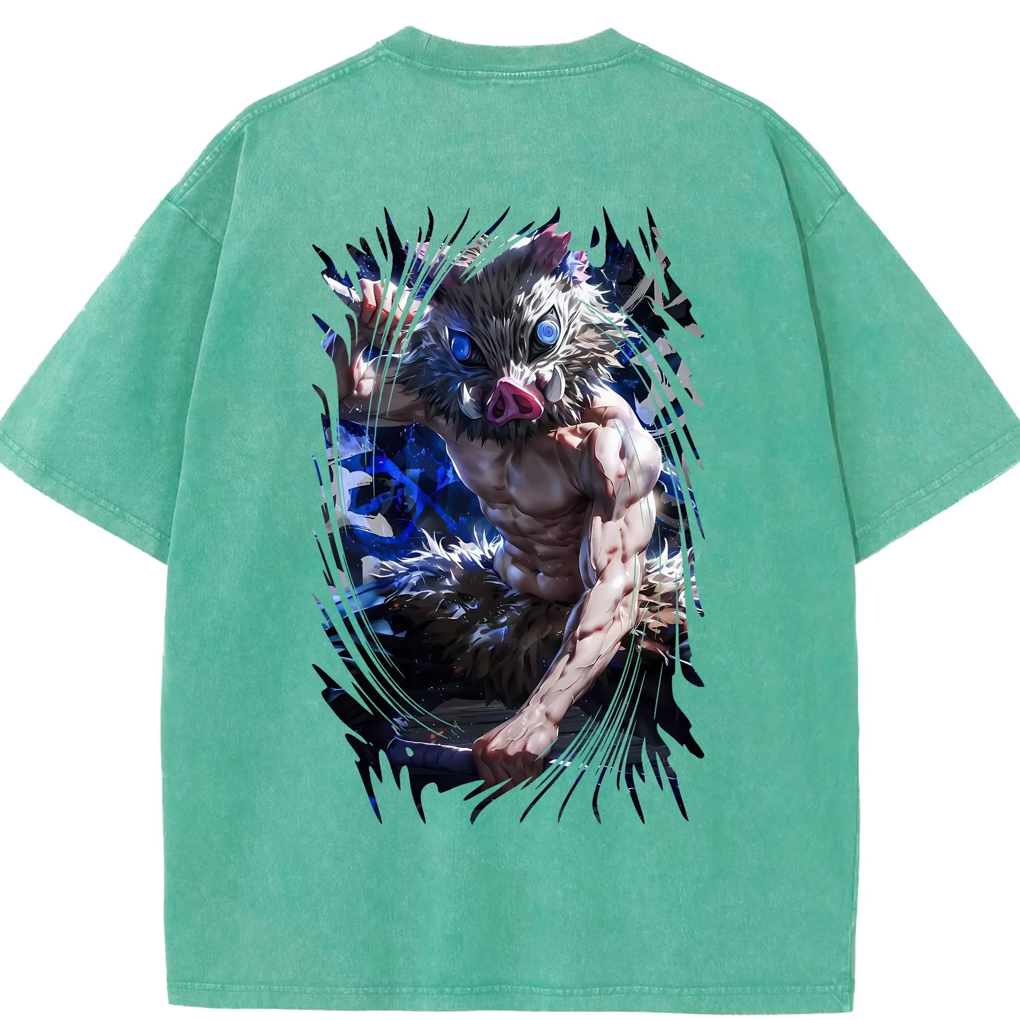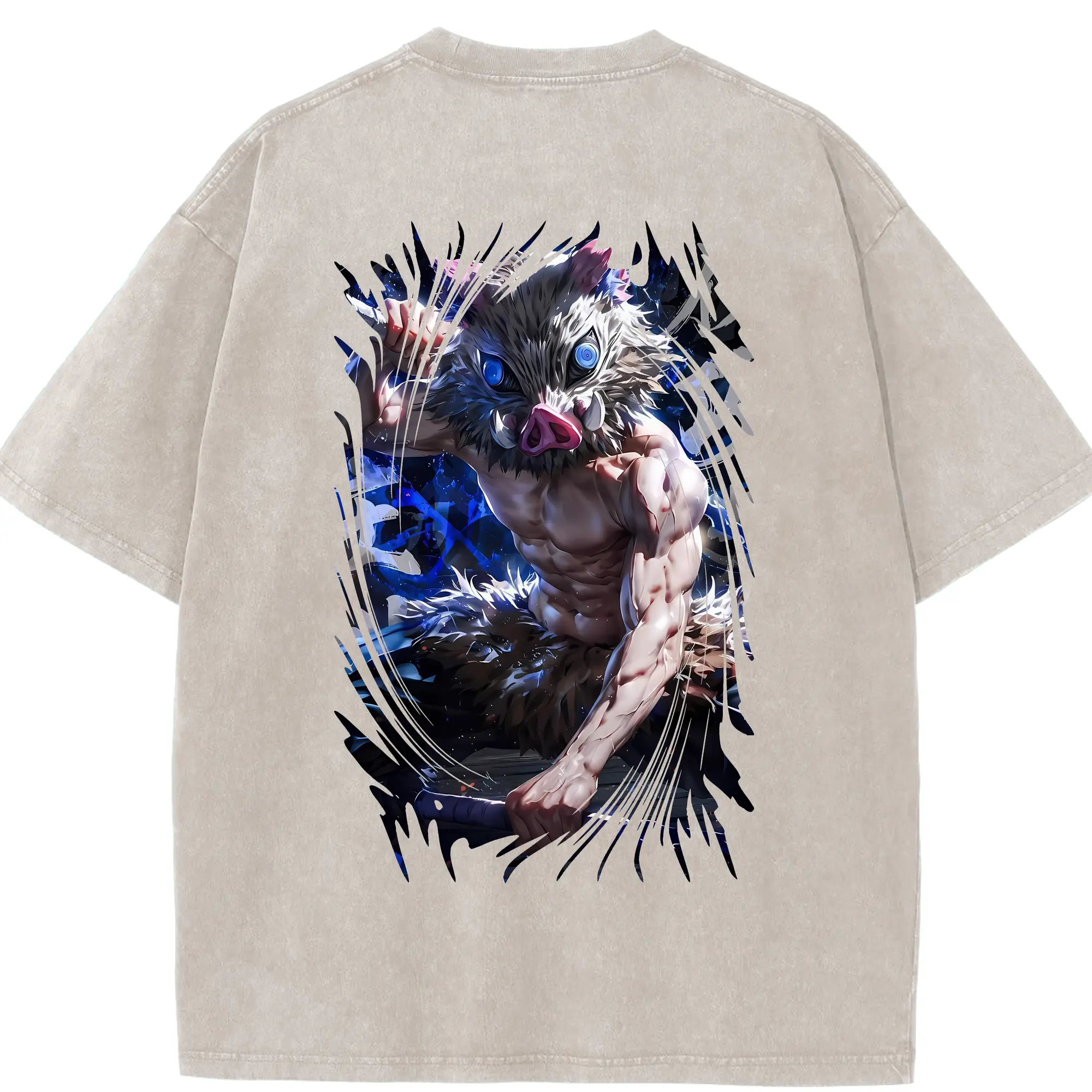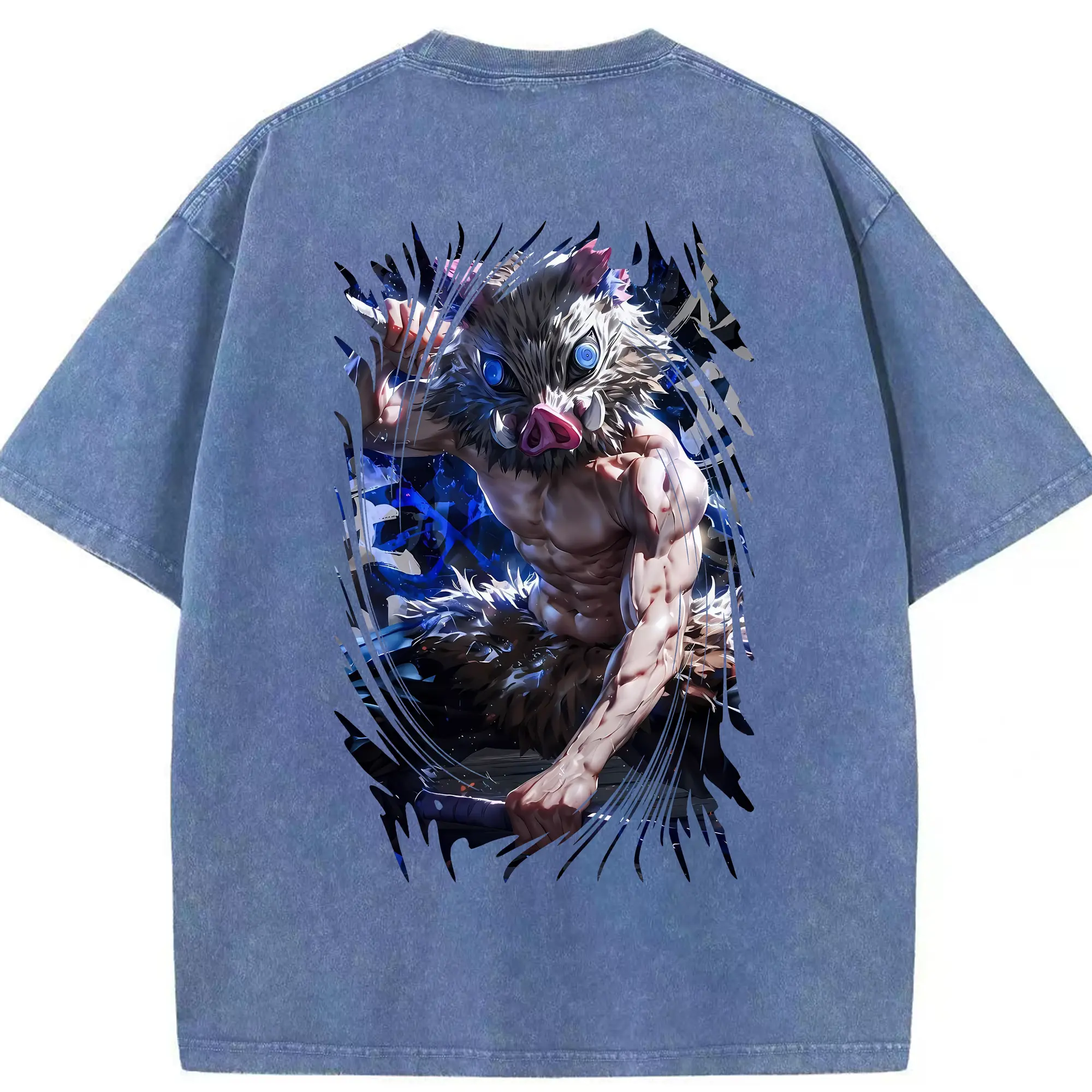 鬼滅の刃 グッズ,嘴平 伊之助 - 綿100% 半袖Tシャツ ・ フロントプリント ・ 快適 通気性 ・ 日常使い 散歩 スポーツ用