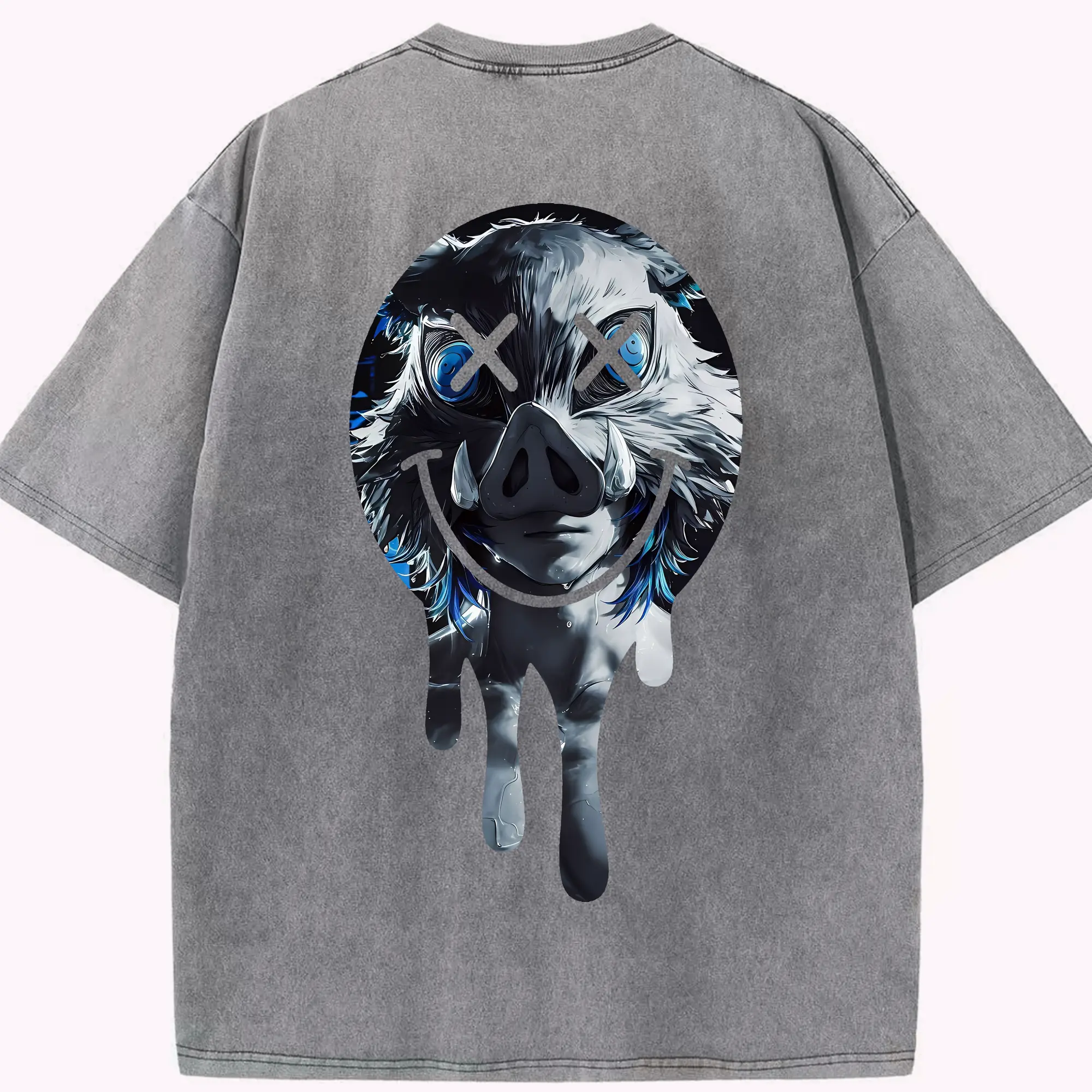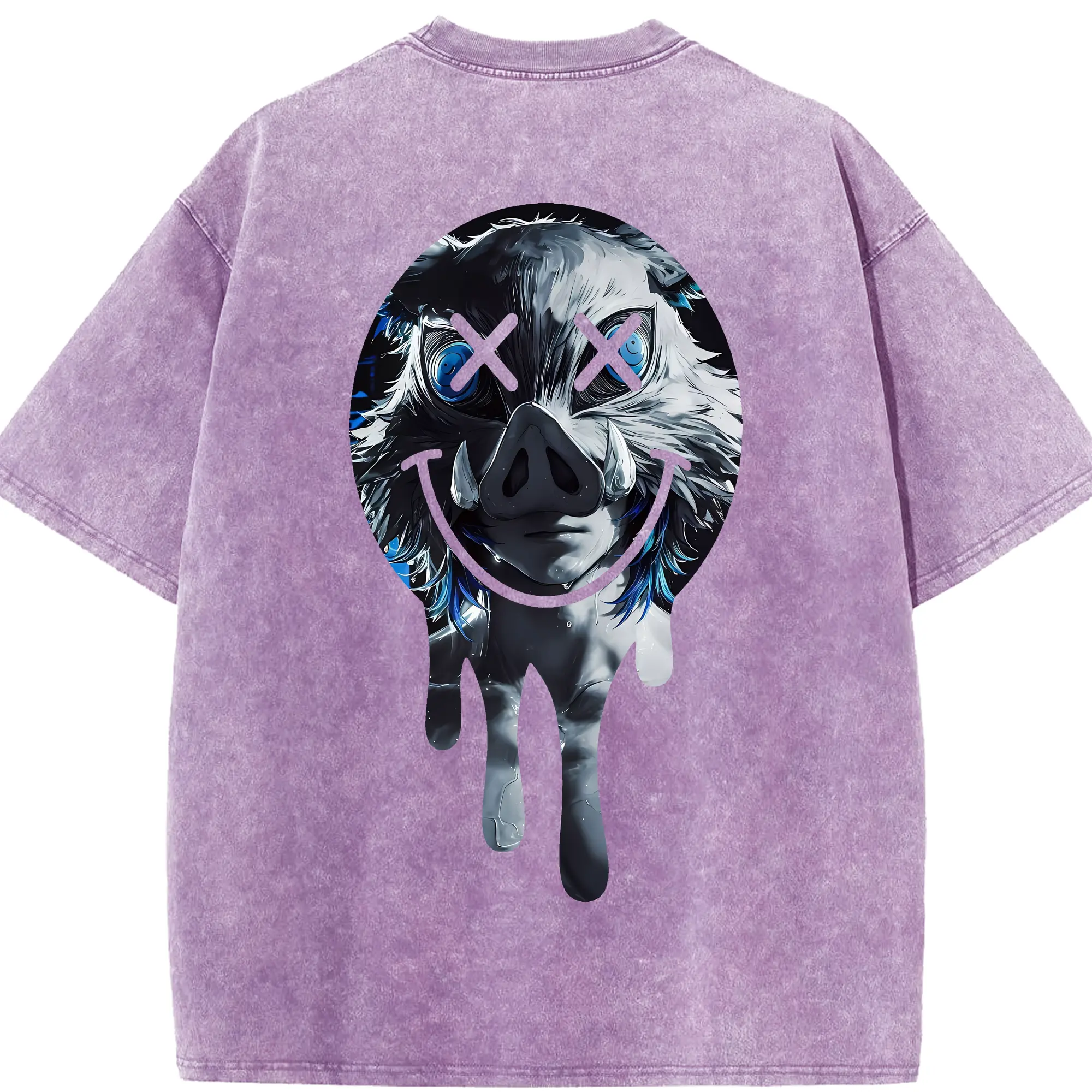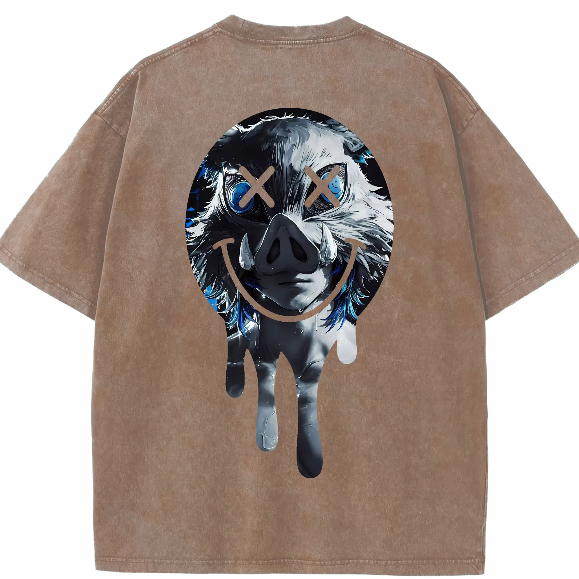 鬼滅の刃 グッズ,嘴平 伊之助 - 綿100% 半袖Tシャツ ・ フロントプリント ・ 快適 通気性 ・ 日常使い 散歩 スポーツ用