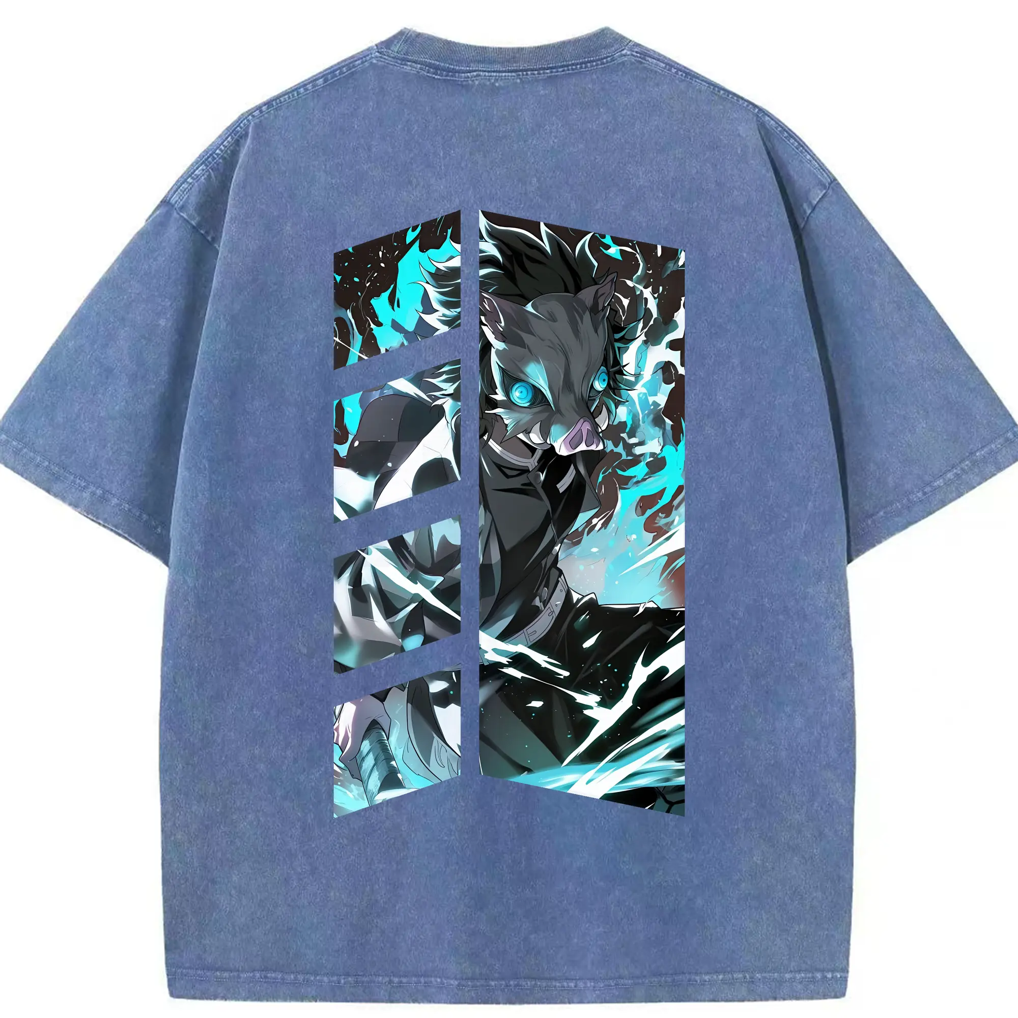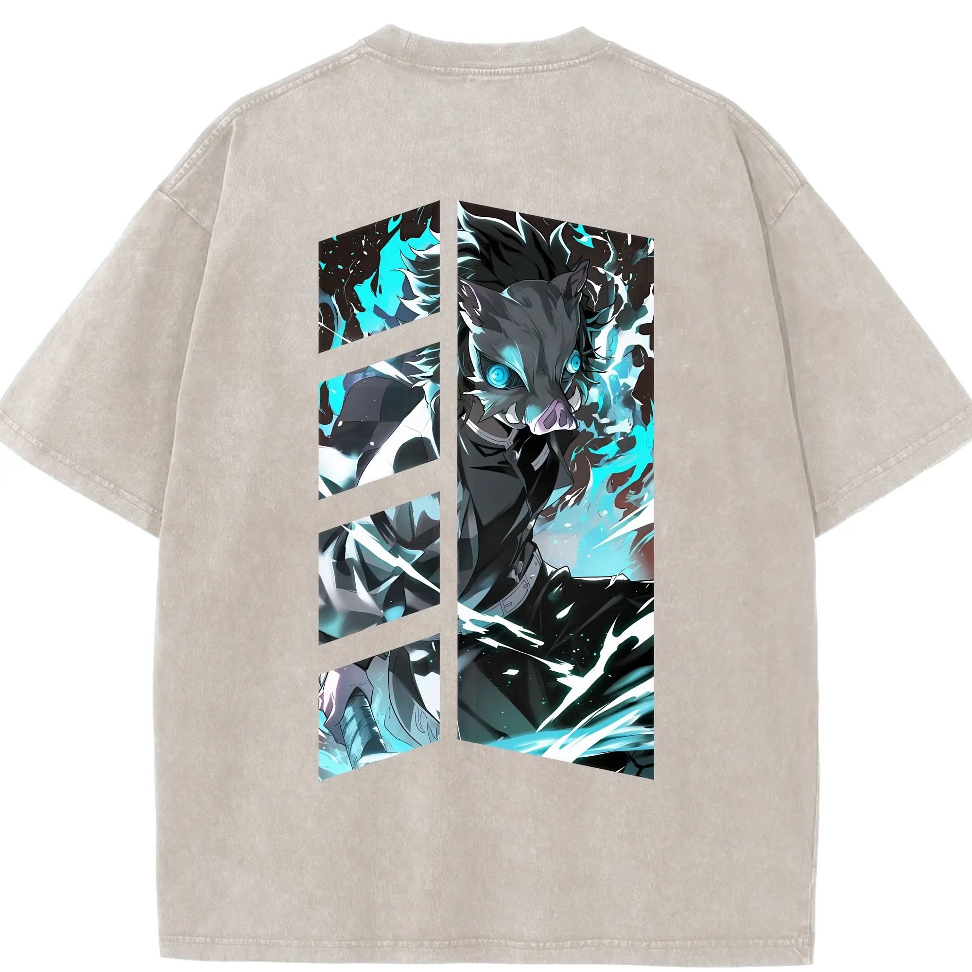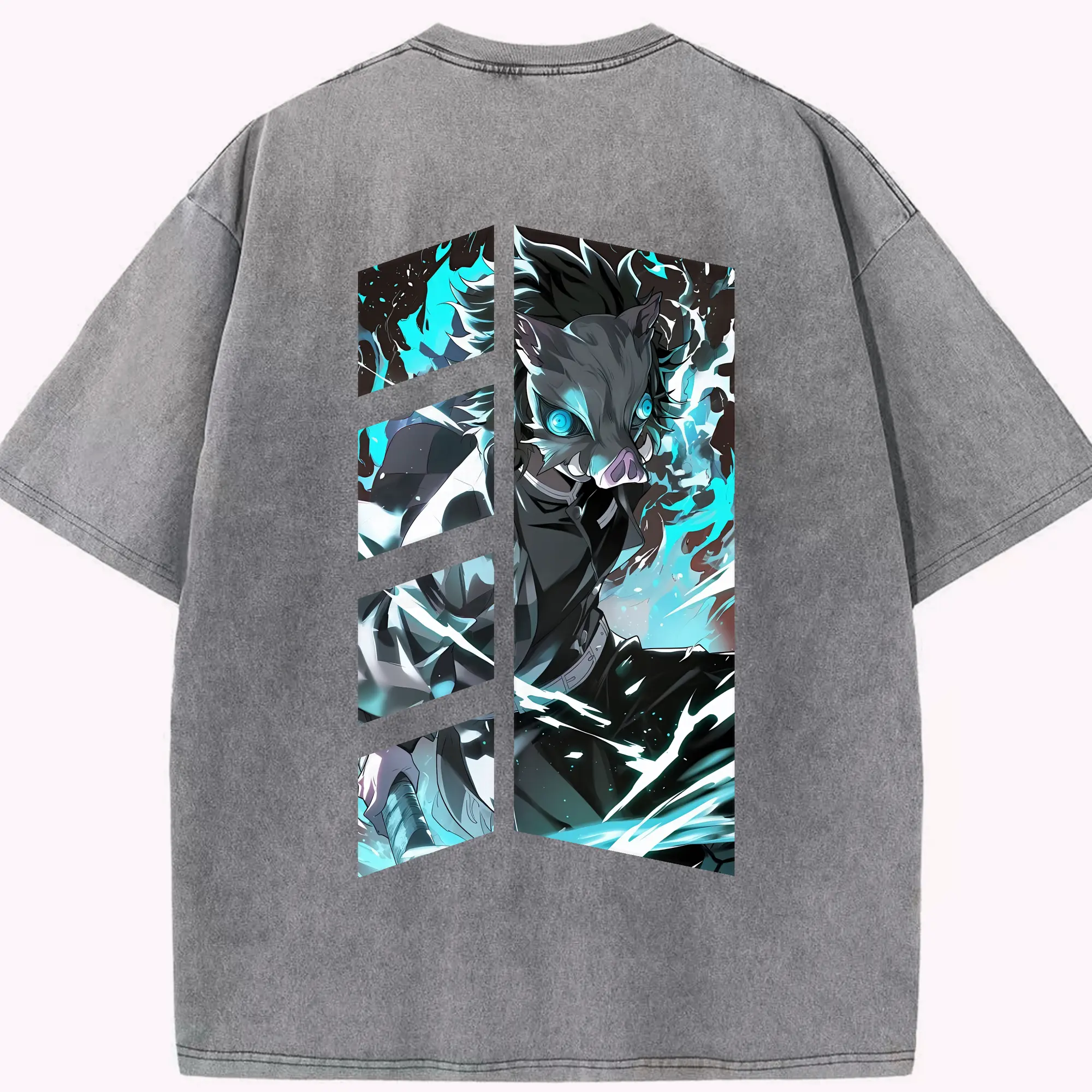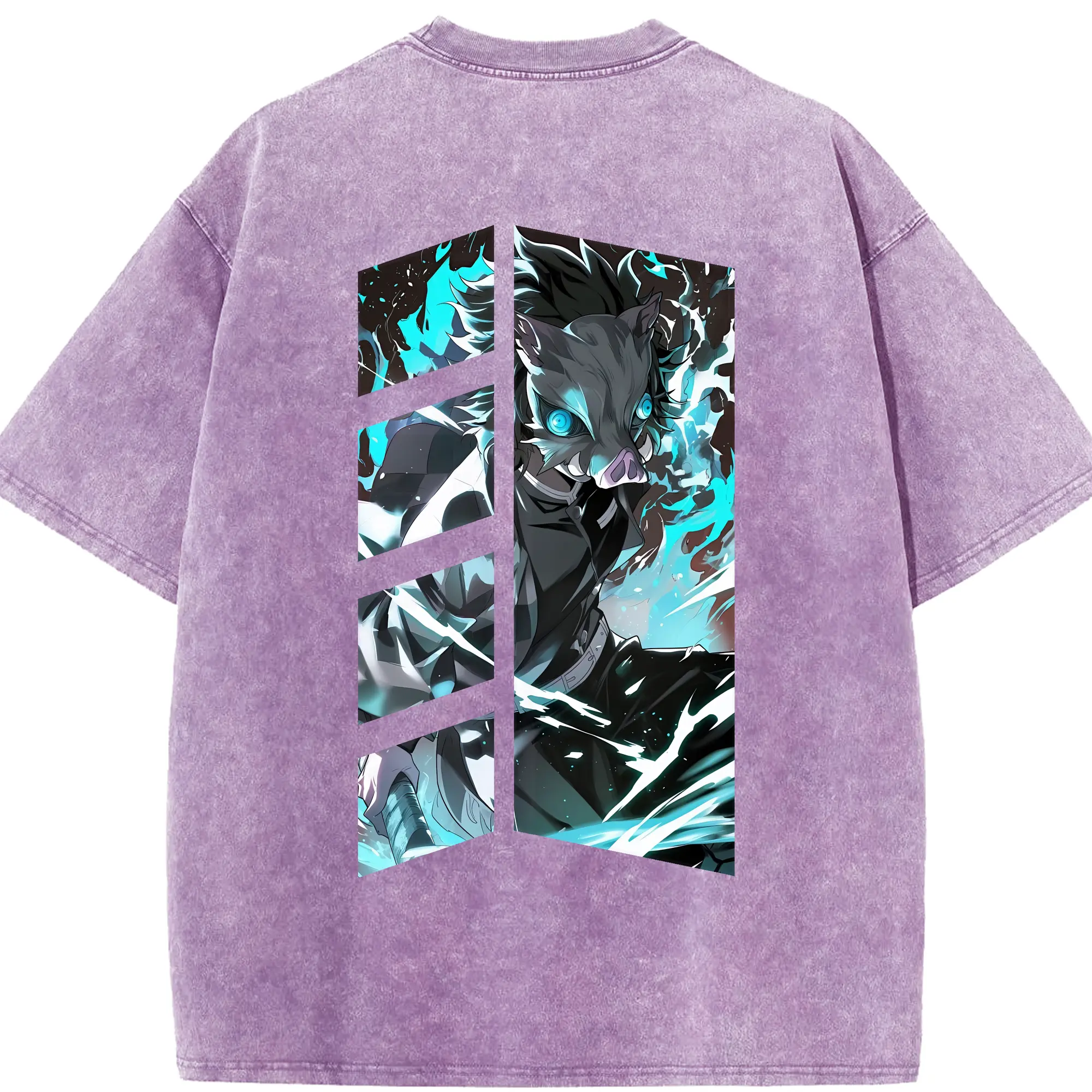 鬼滅の刃 グッズ,嘴平 伊之助 - 綿100% 半袖Tシャツ ・ バックプリント ・ 快適 通気性 ・ 日常使い 散歩 スポーツ用