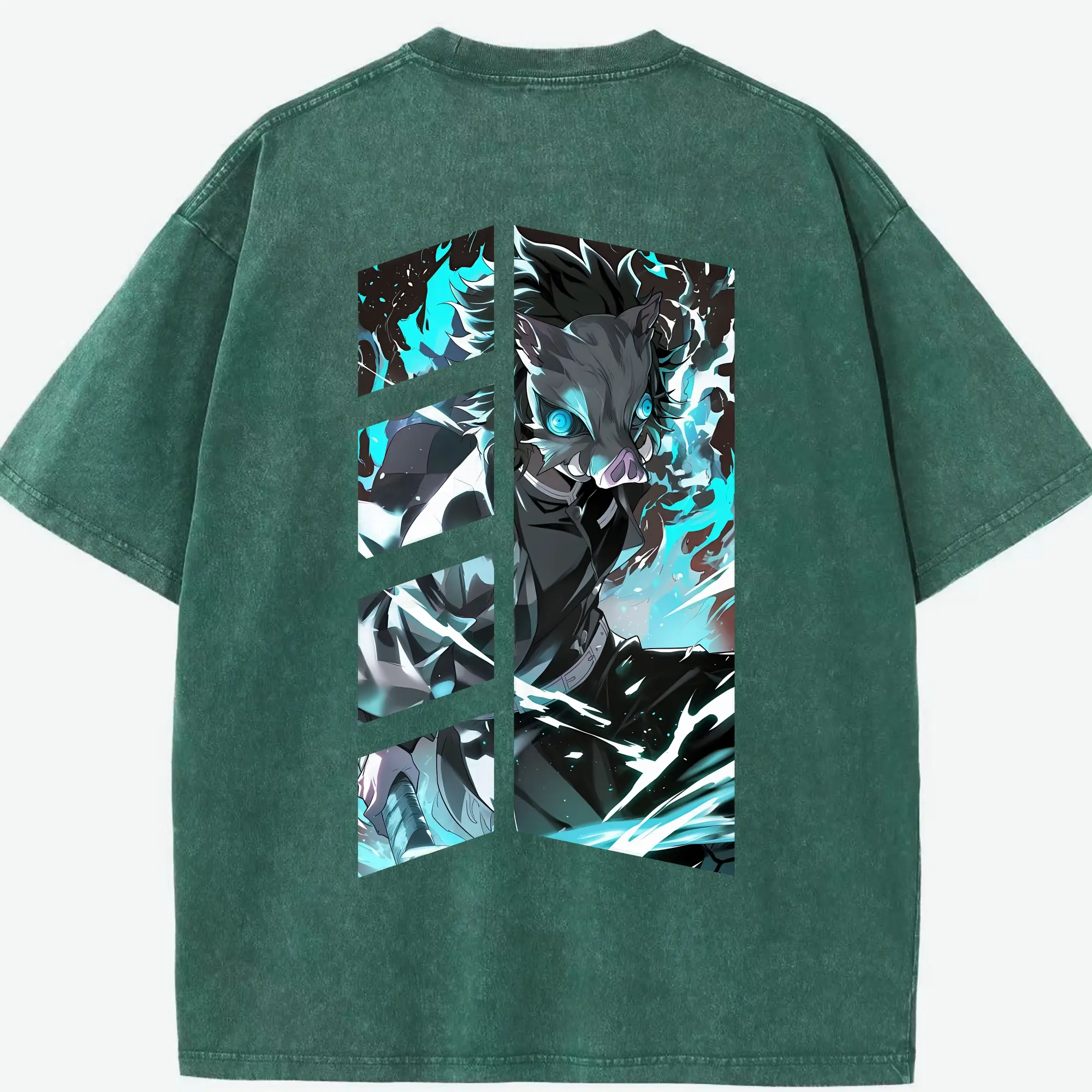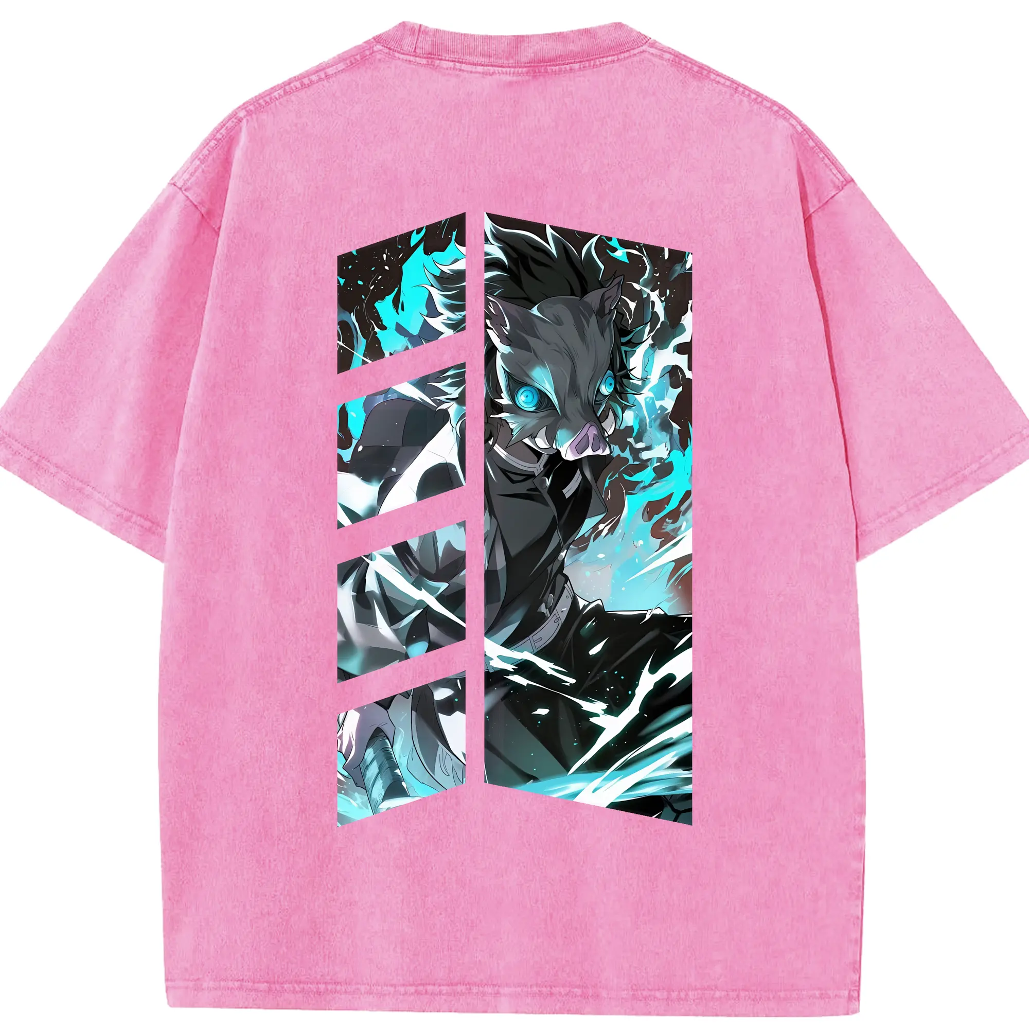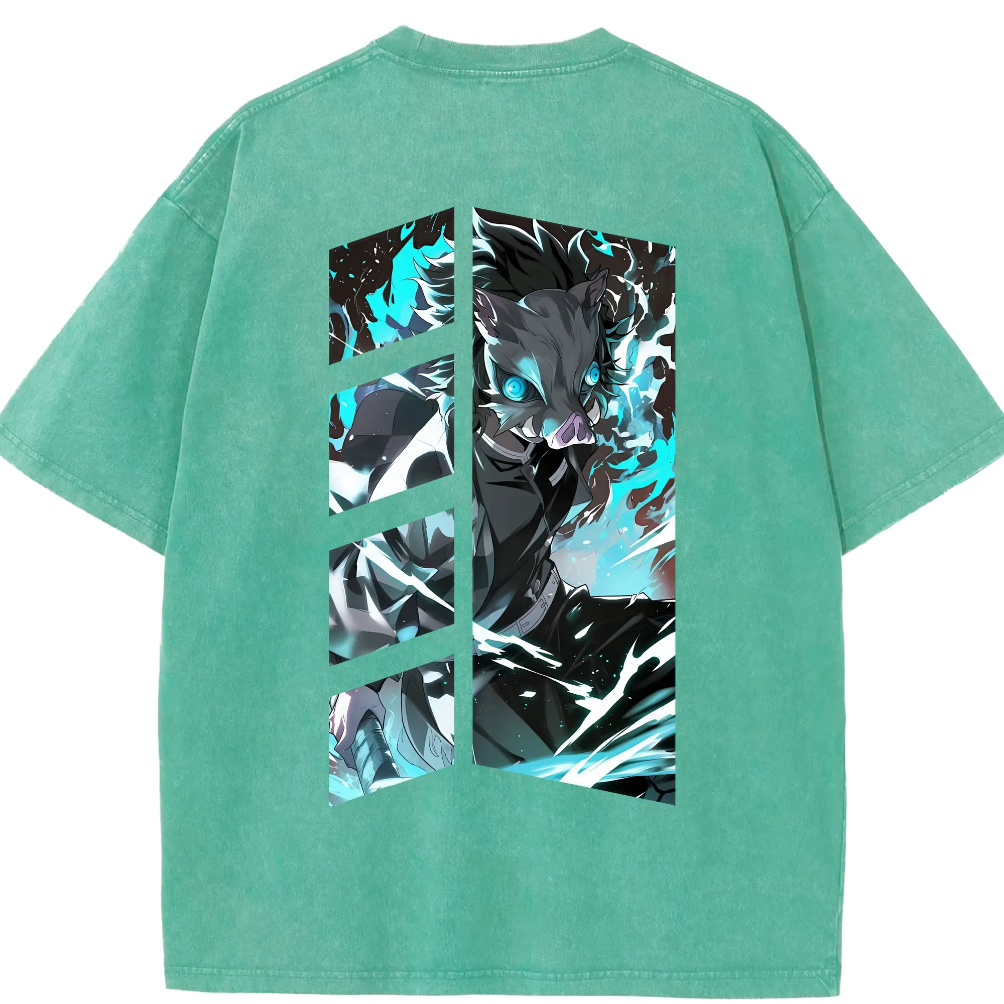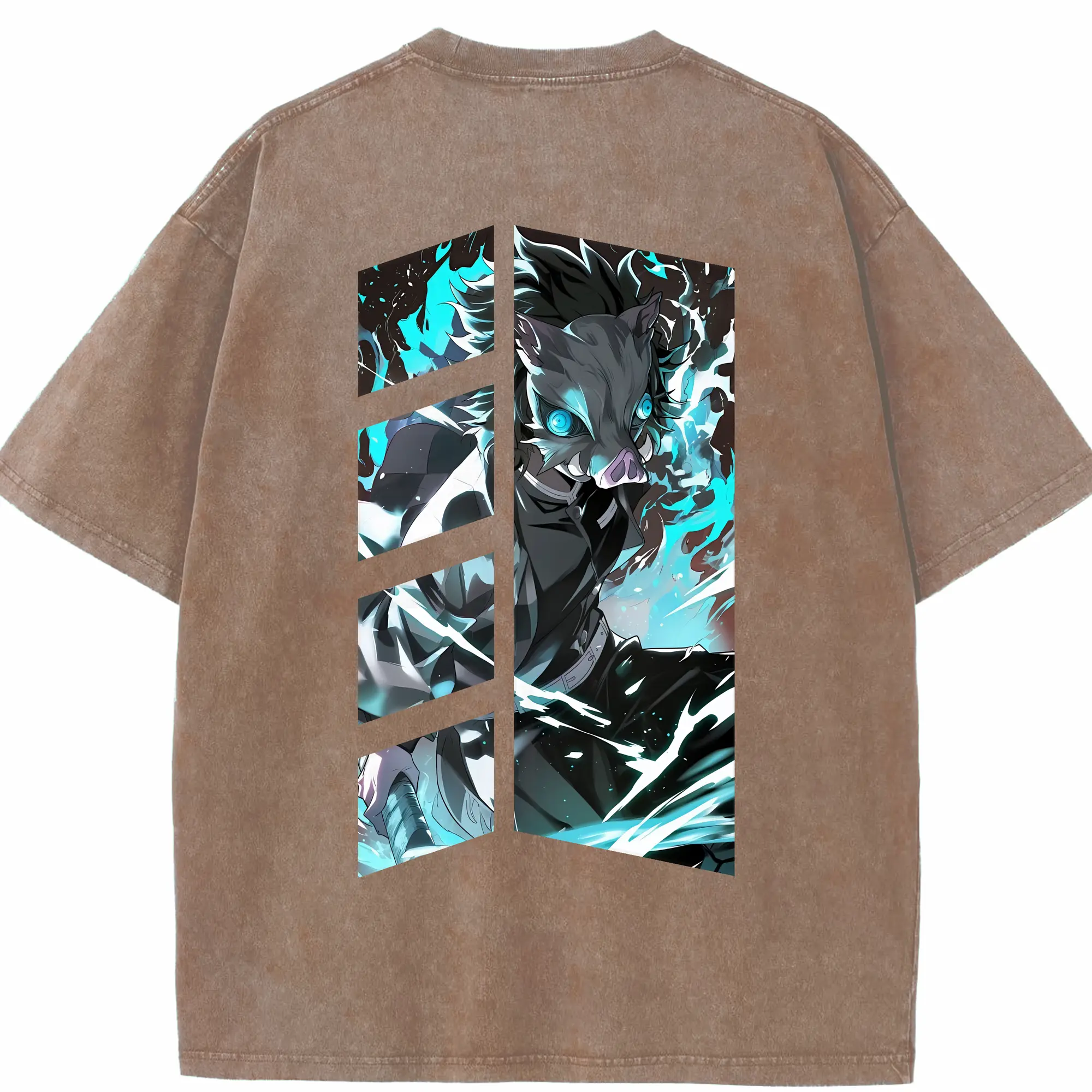 鬼滅の刃 グッズ,嘴平 伊之助 - 綿100% 半袖Tシャツ ・ バックプリント ・ 快適 通気性 ・ 日常使い 散歩 スポーツ用