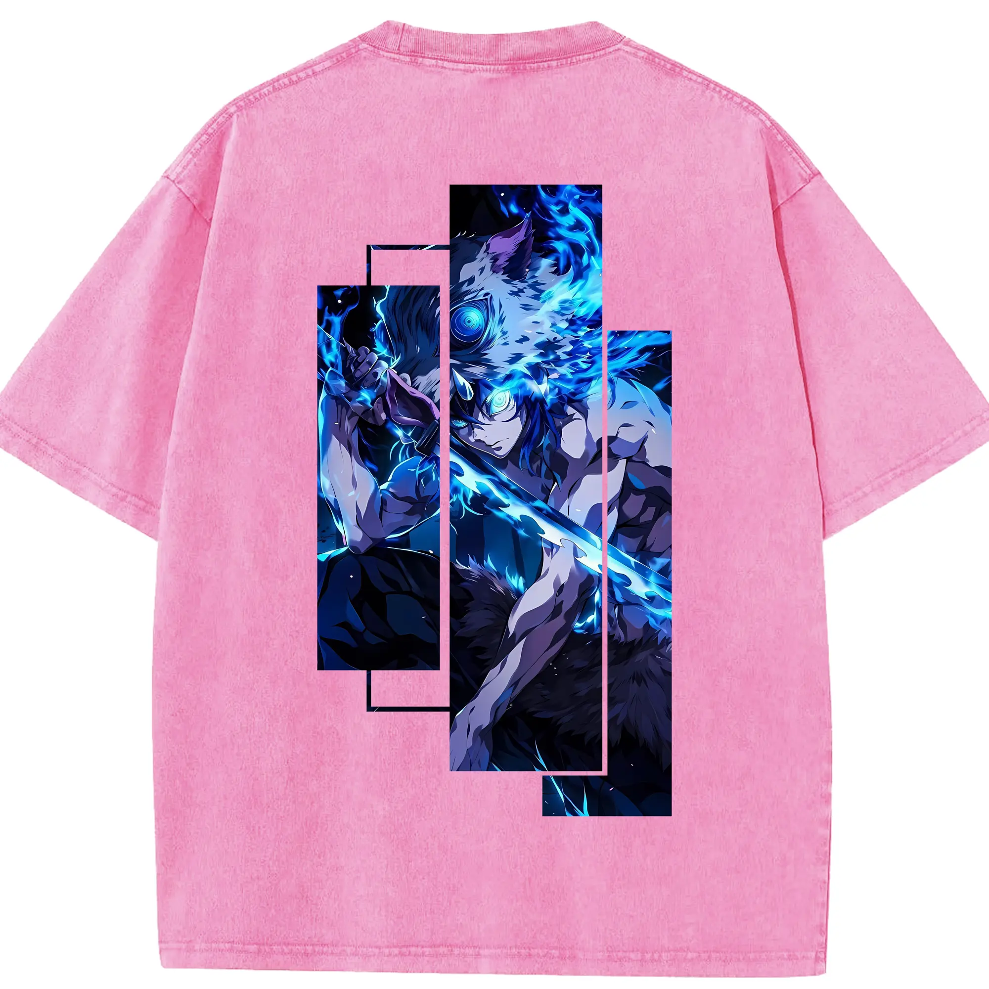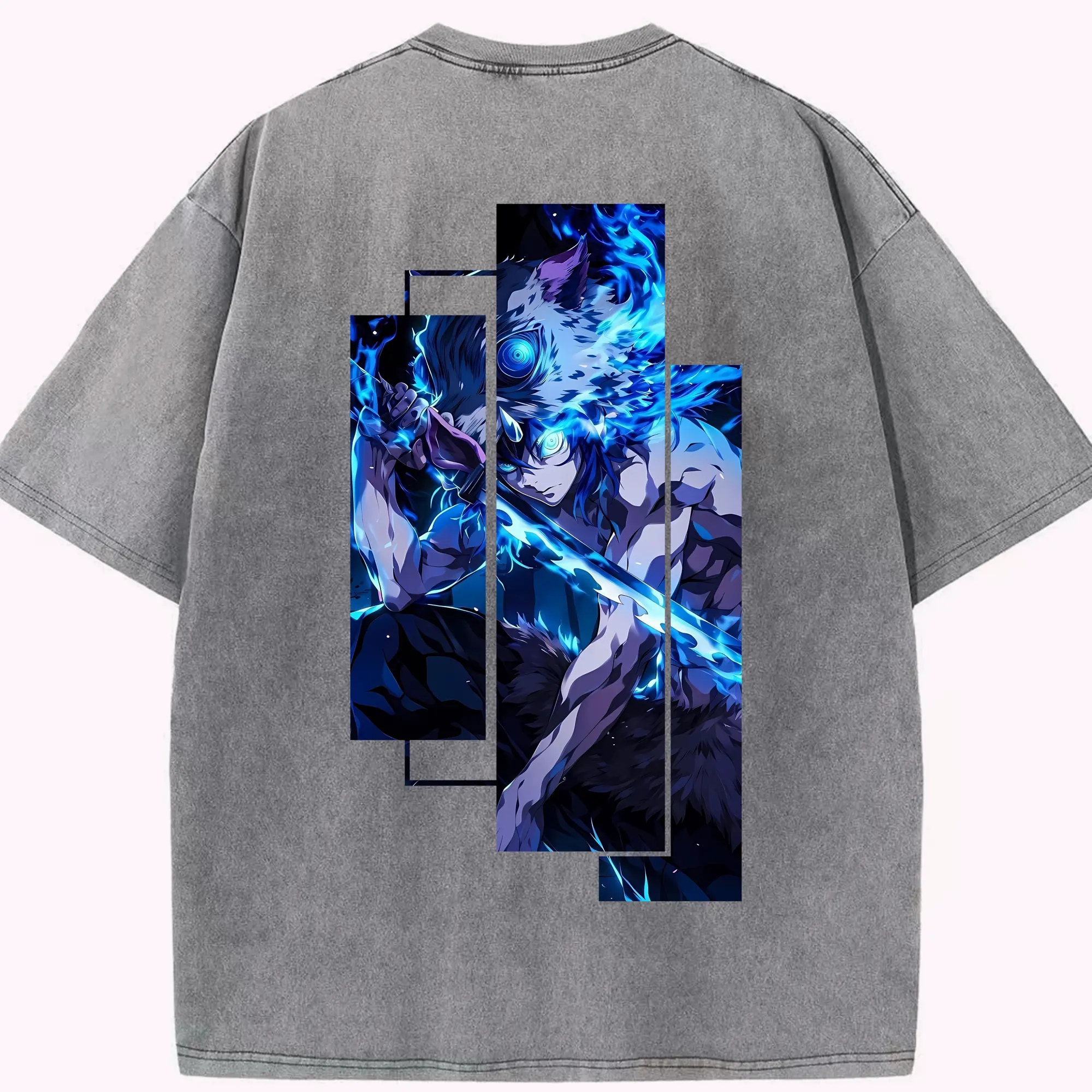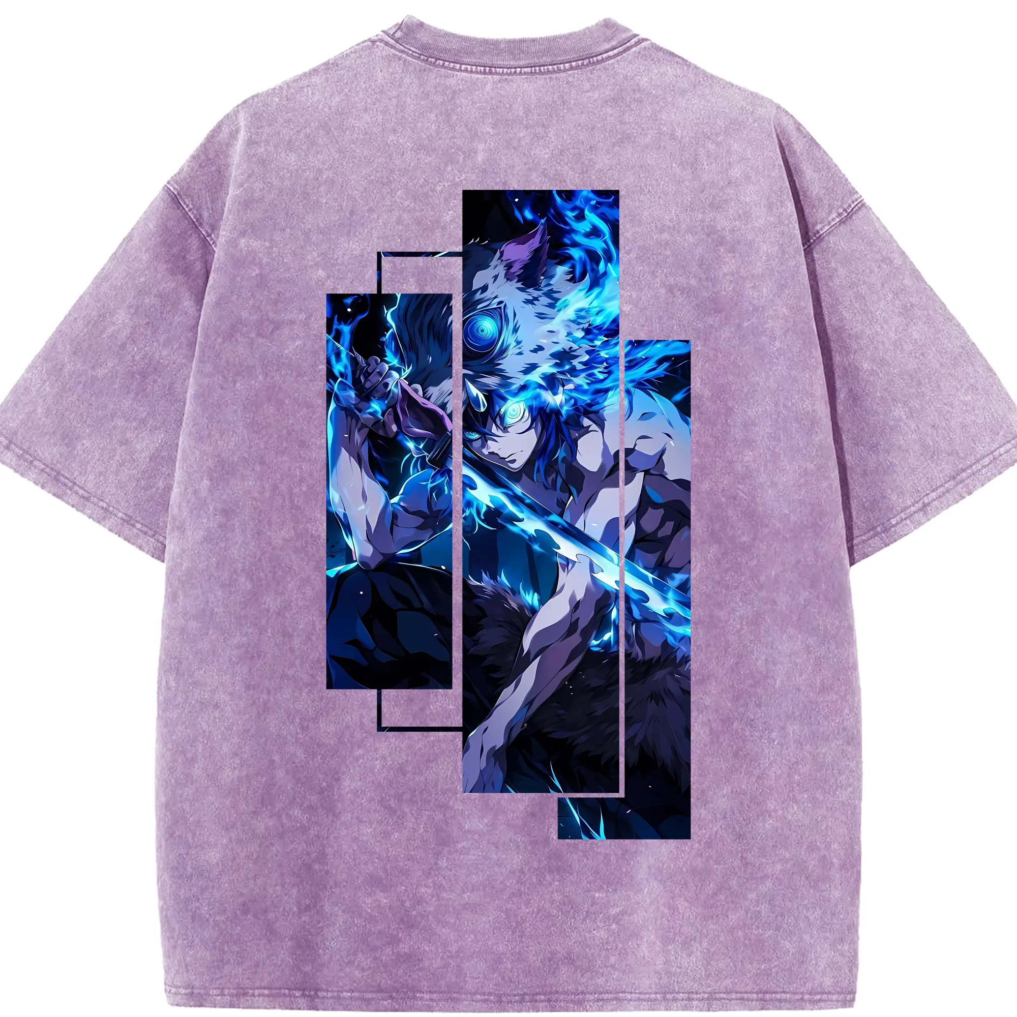 鬼滅の刃 グッズ,嘴平 伊之助 - 綿100% 半袖Tシャツ ・ バックプリント ・ 快適 通気性 ・ 日常使い 散歩 スポーツ用