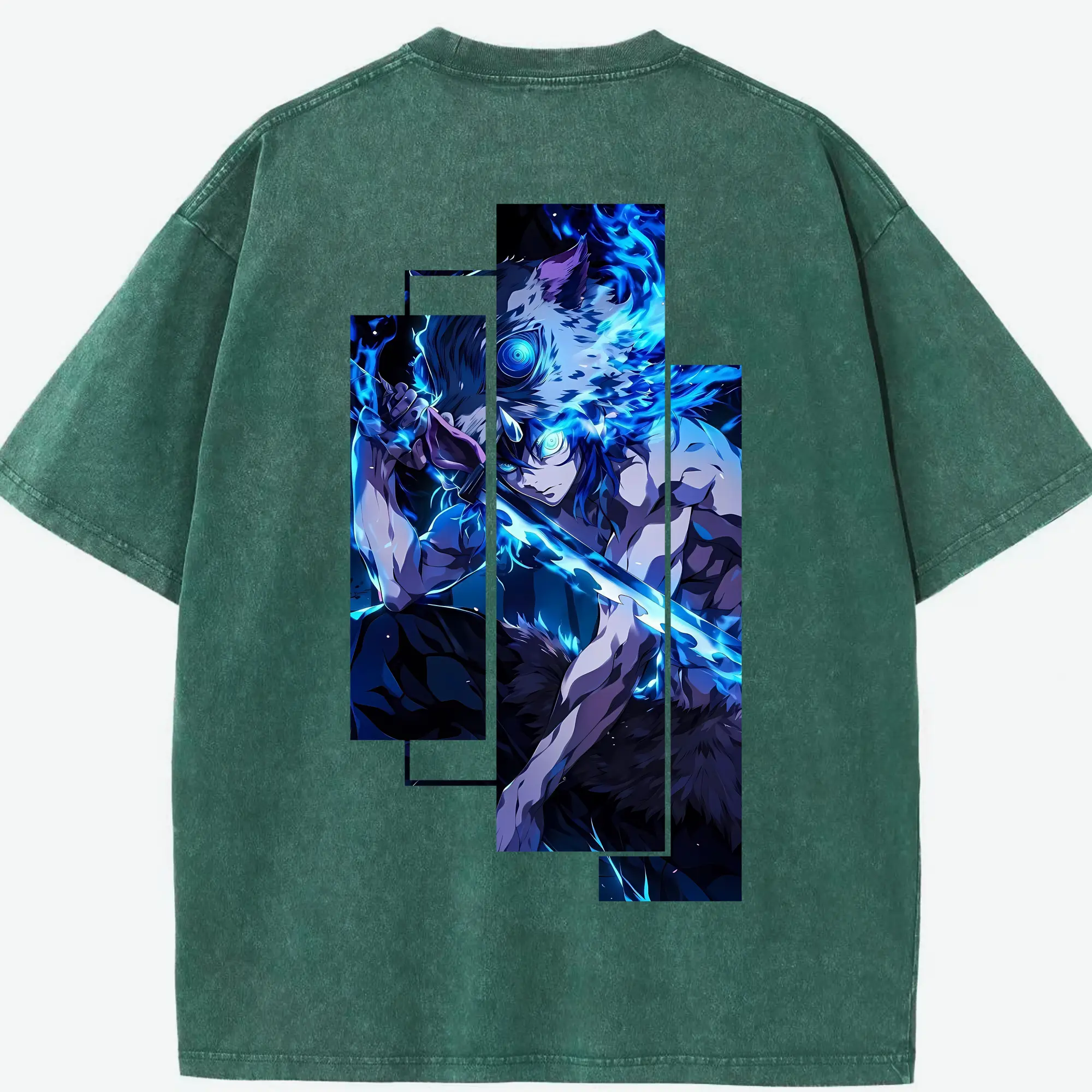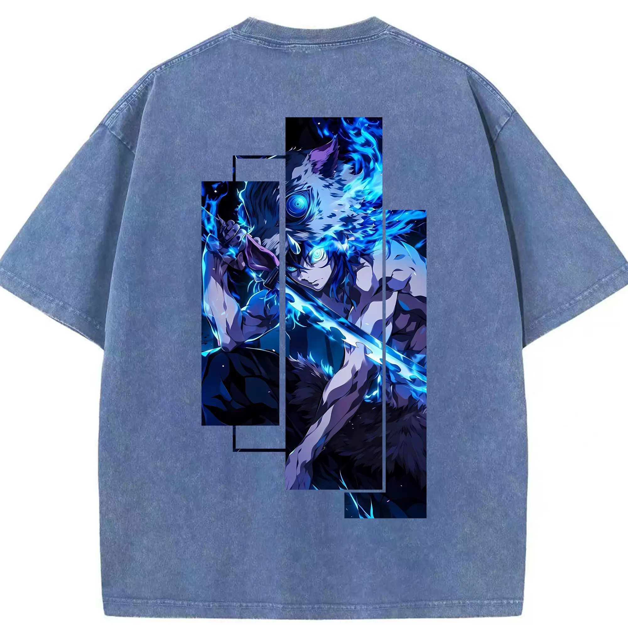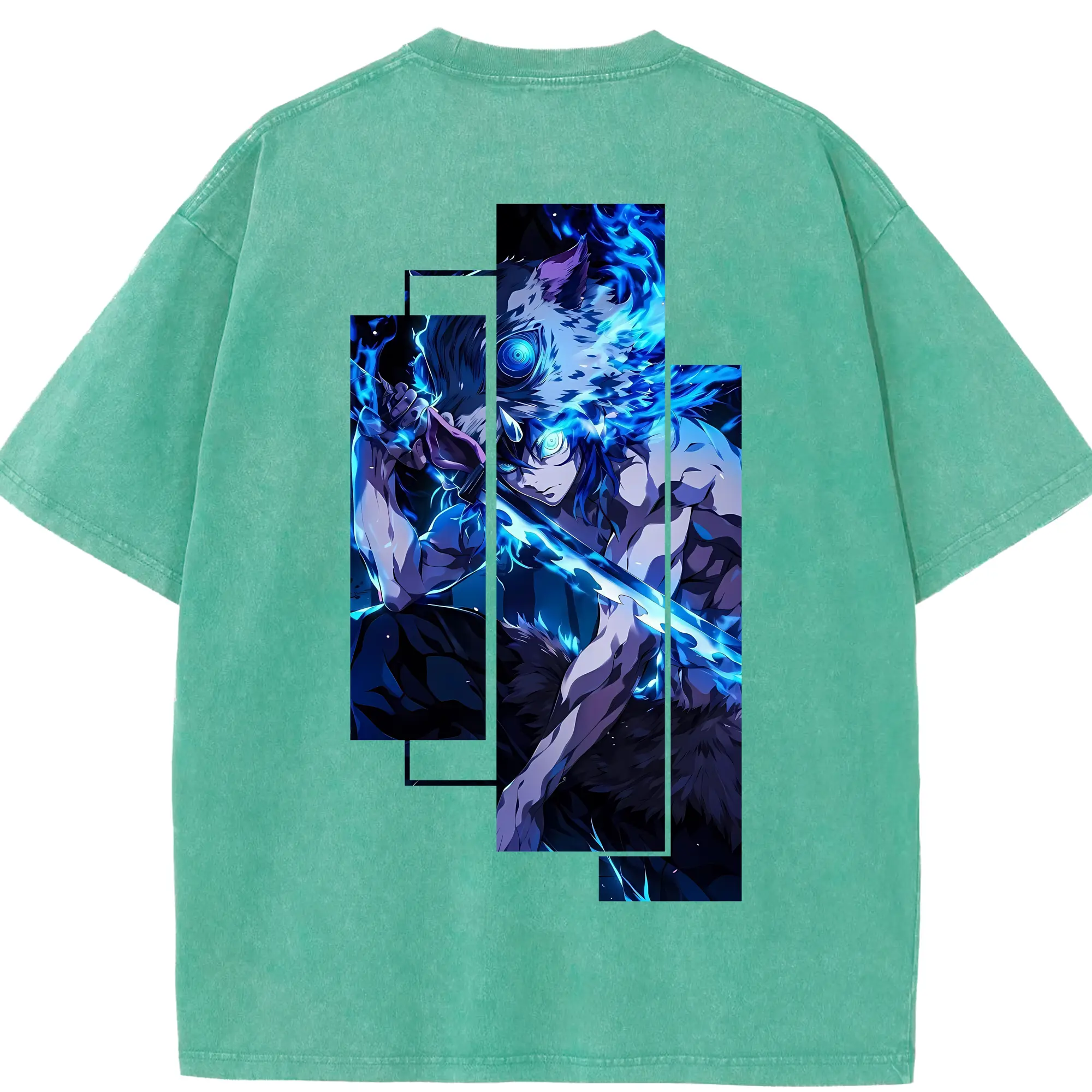 鬼滅の刃 グッズ,嘴平 伊之助 - 綿100% 半袖Tシャツ ・ バックプリント ・ 快適 通気性 ・ 日常使い 散歩 スポーツ用