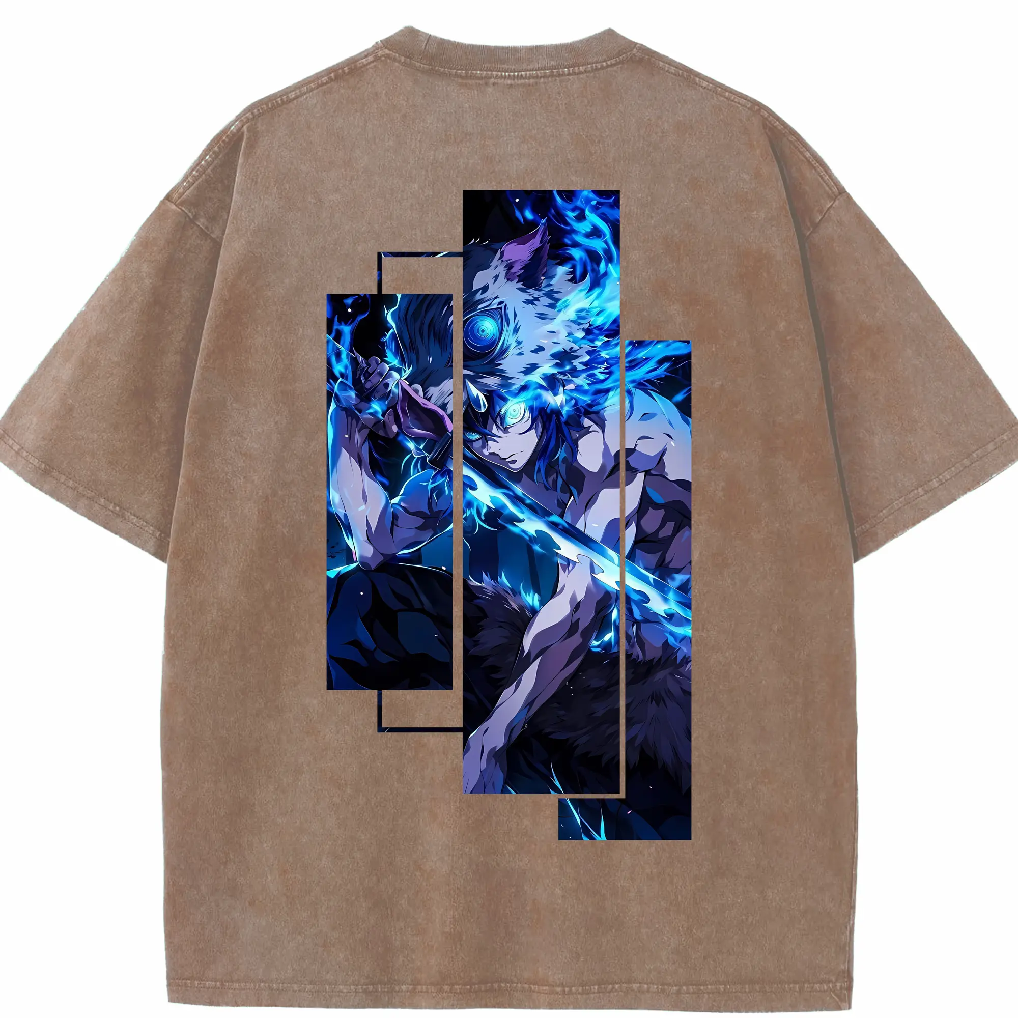 鬼滅の刃 グッズ,嘴平 伊之助 - 綿100% 半袖Tシャツ ・ フロントプリント ・ 快適 通気性 ・ 日常使い 散歩 スポーツ用