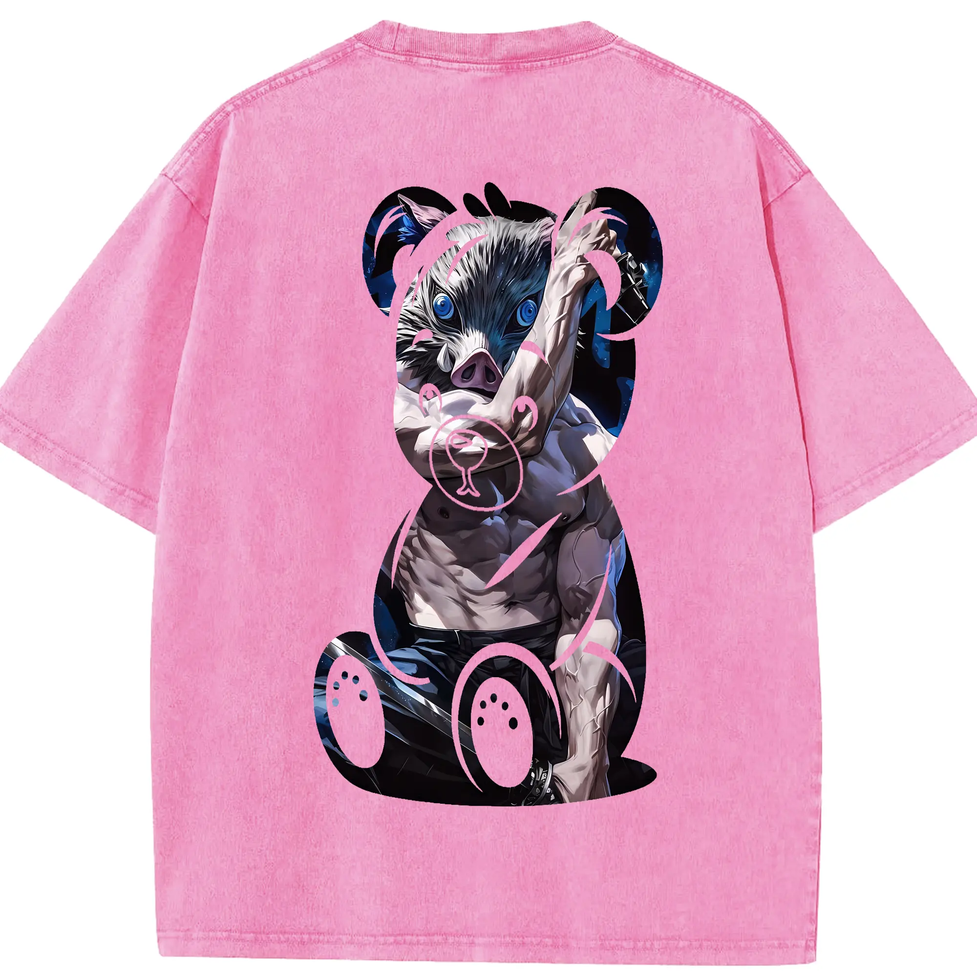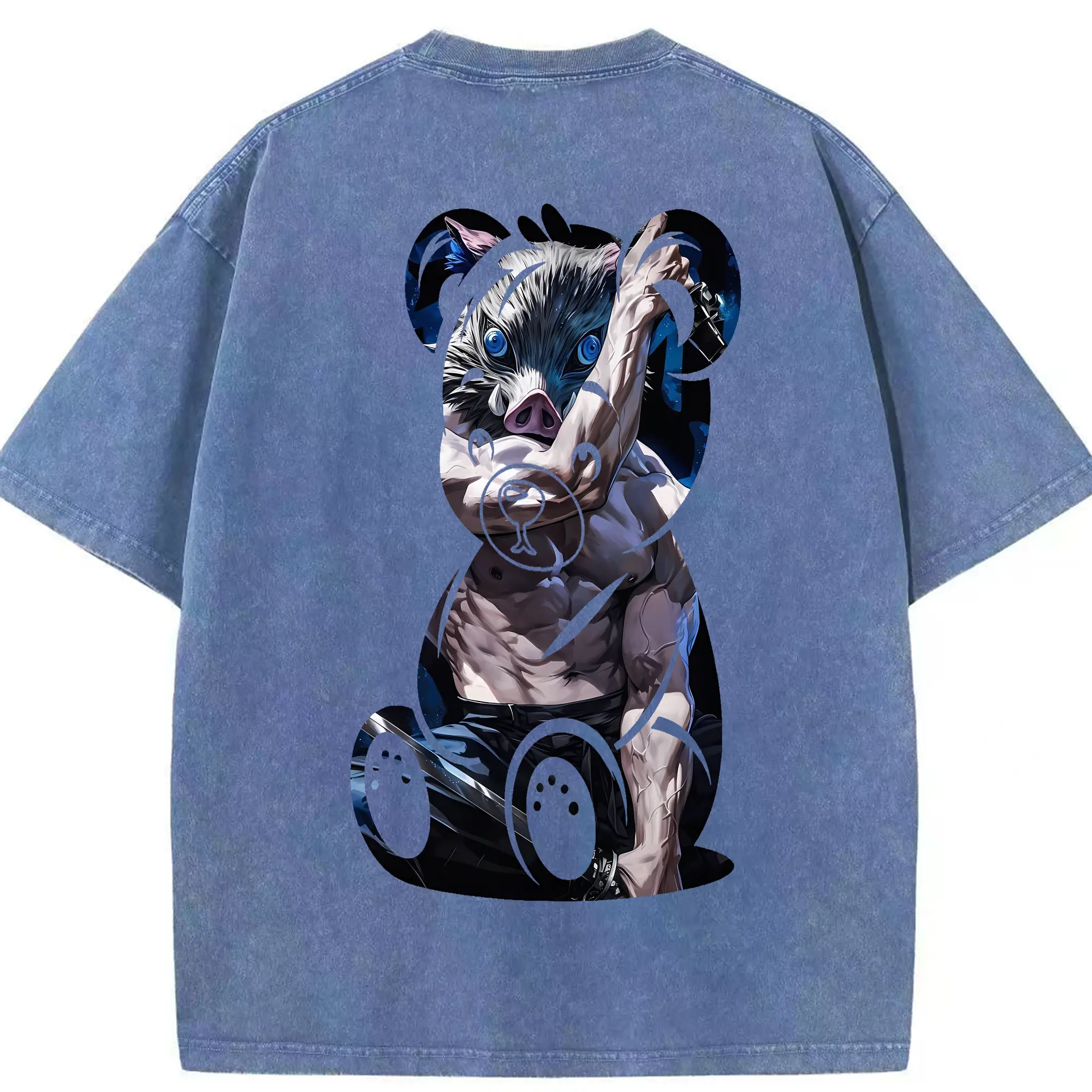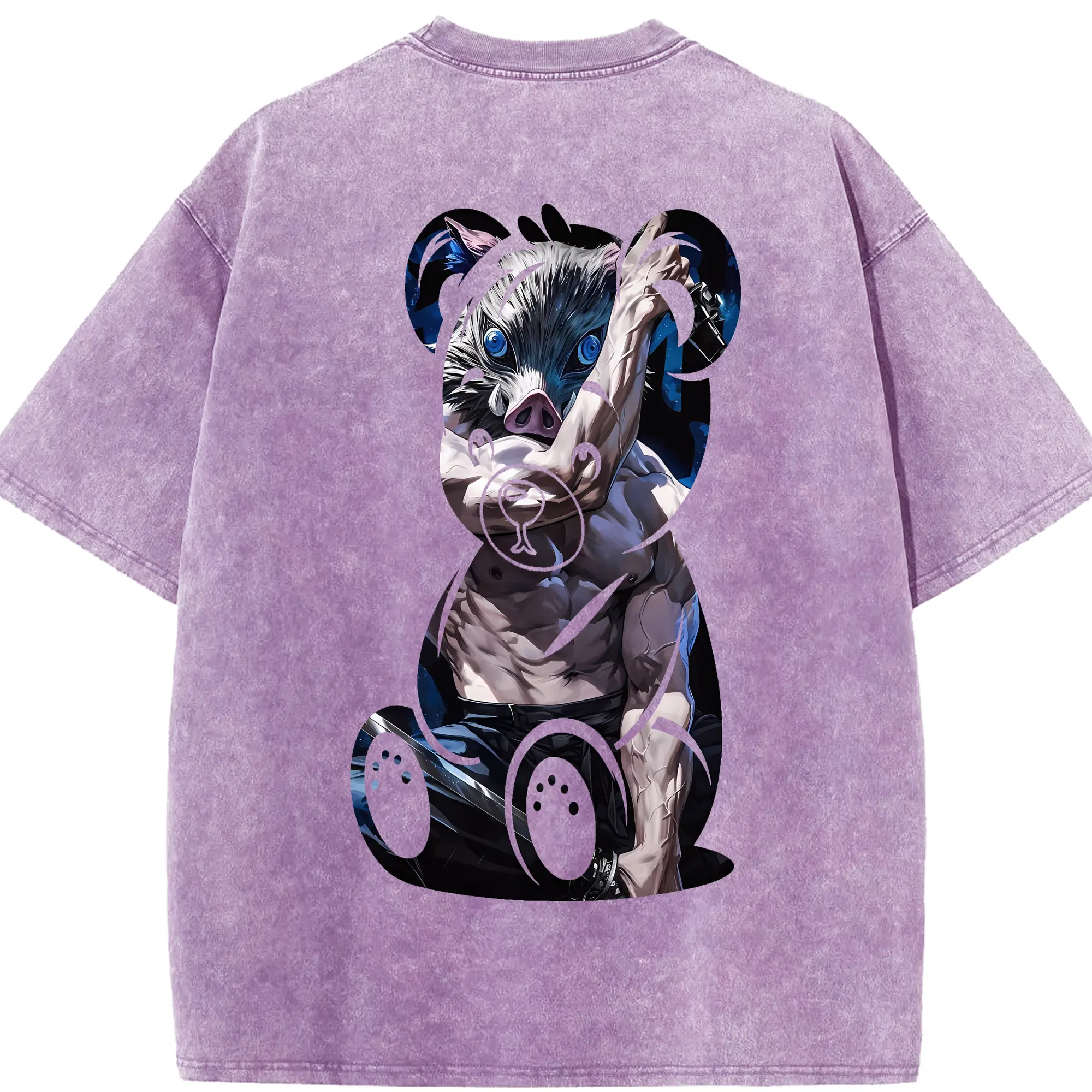 鬼滅の刃 グッズ,嘴平 伊之助 - 綿100% 半袖Tシャツ ・ バックプリント ・ 快適 通気性 ・ 日常使い 散歩 スポーツ用
