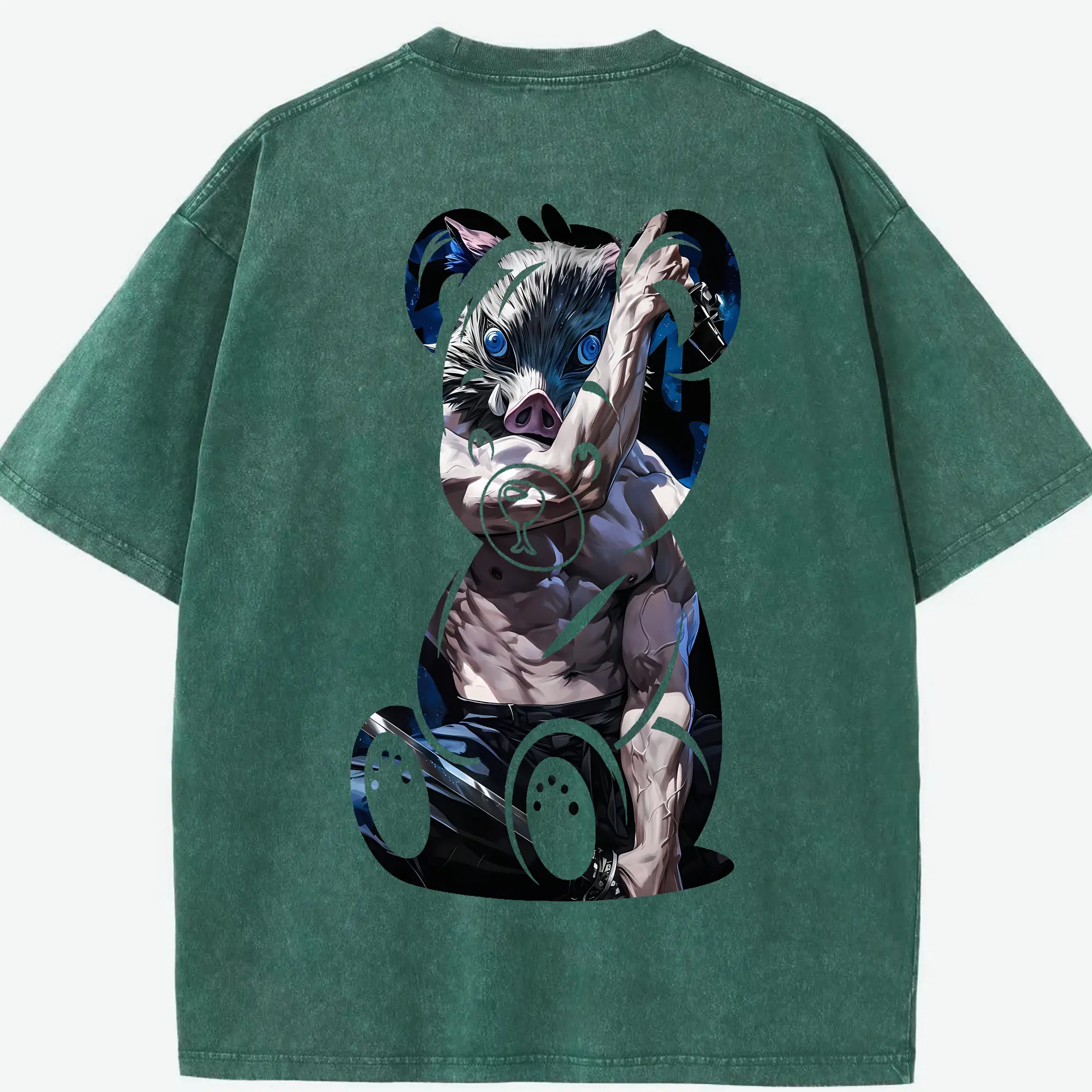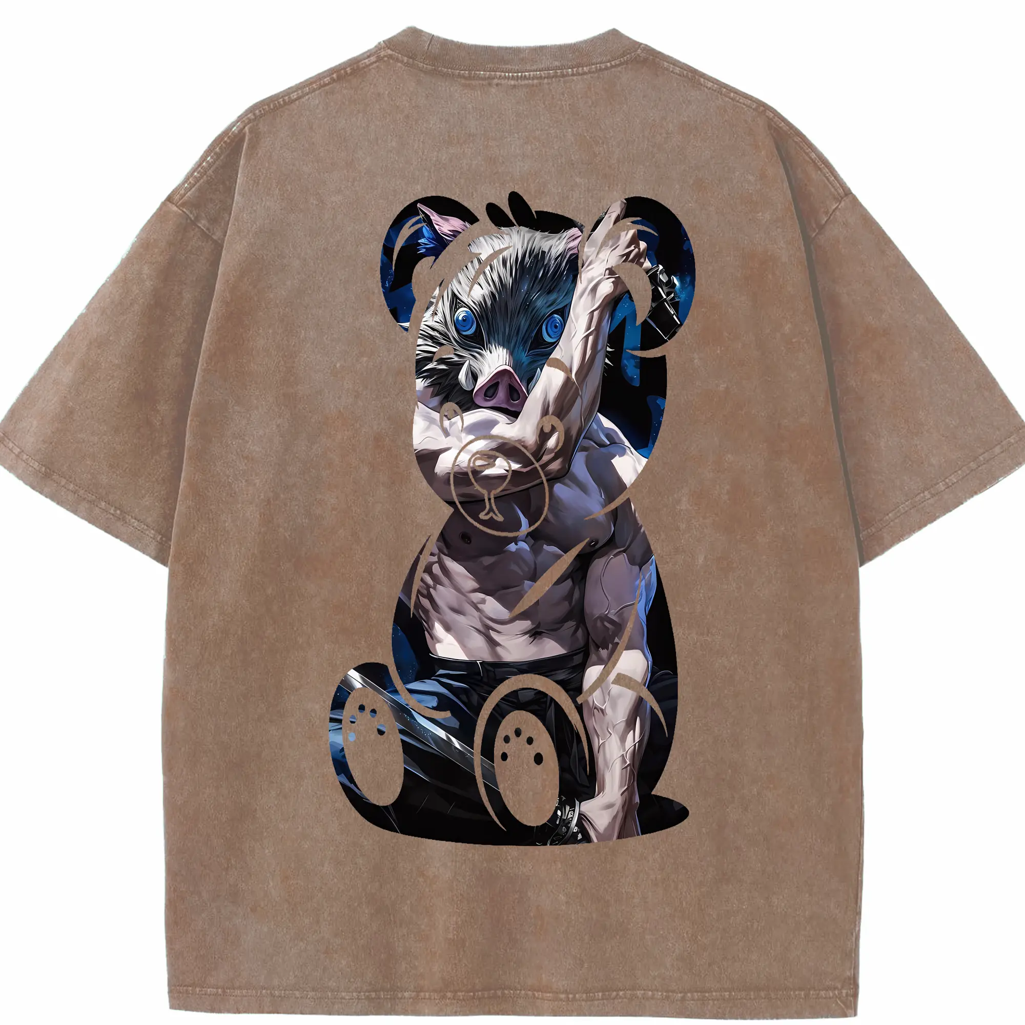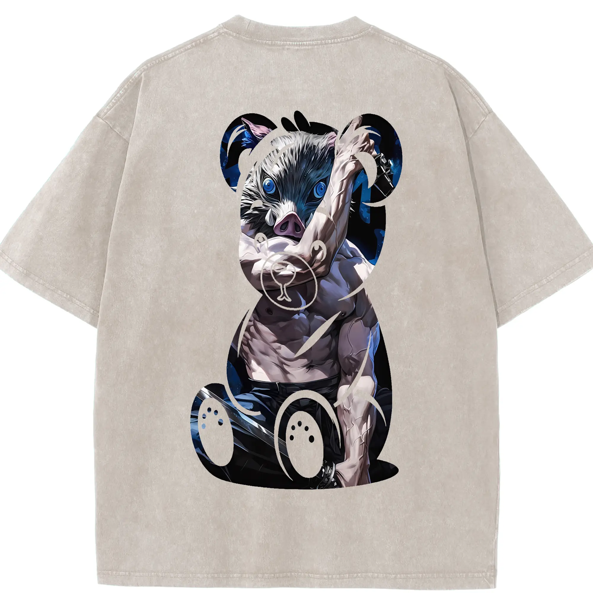鬼滅の刃 グッズ,嘴平 伊之助 - 綿100% 半袖Tシャツ ・ バックプリント ・ 快適 通気性 ・ 日常使い 散歩 スポーツ用