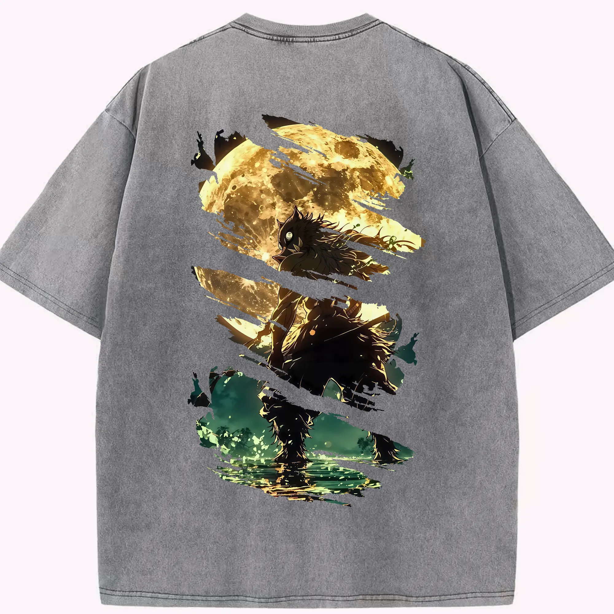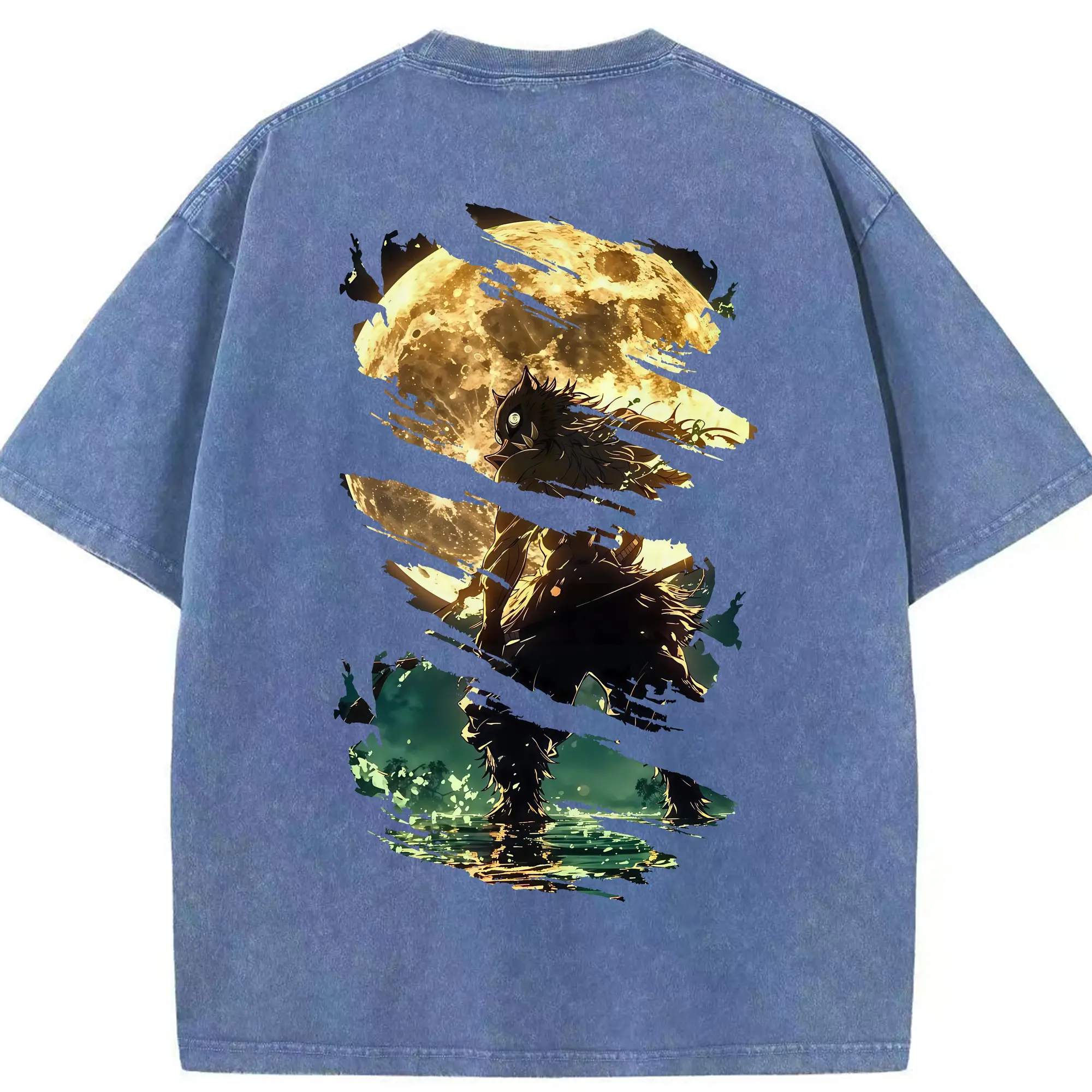 鬼滅の刃 グッズ,嘴平 伊之助 - 綿100% 半袖Tシャツ ・ バックプリント ・ 快適 通気性 ・ 日常使い 散歩 スポーツ用