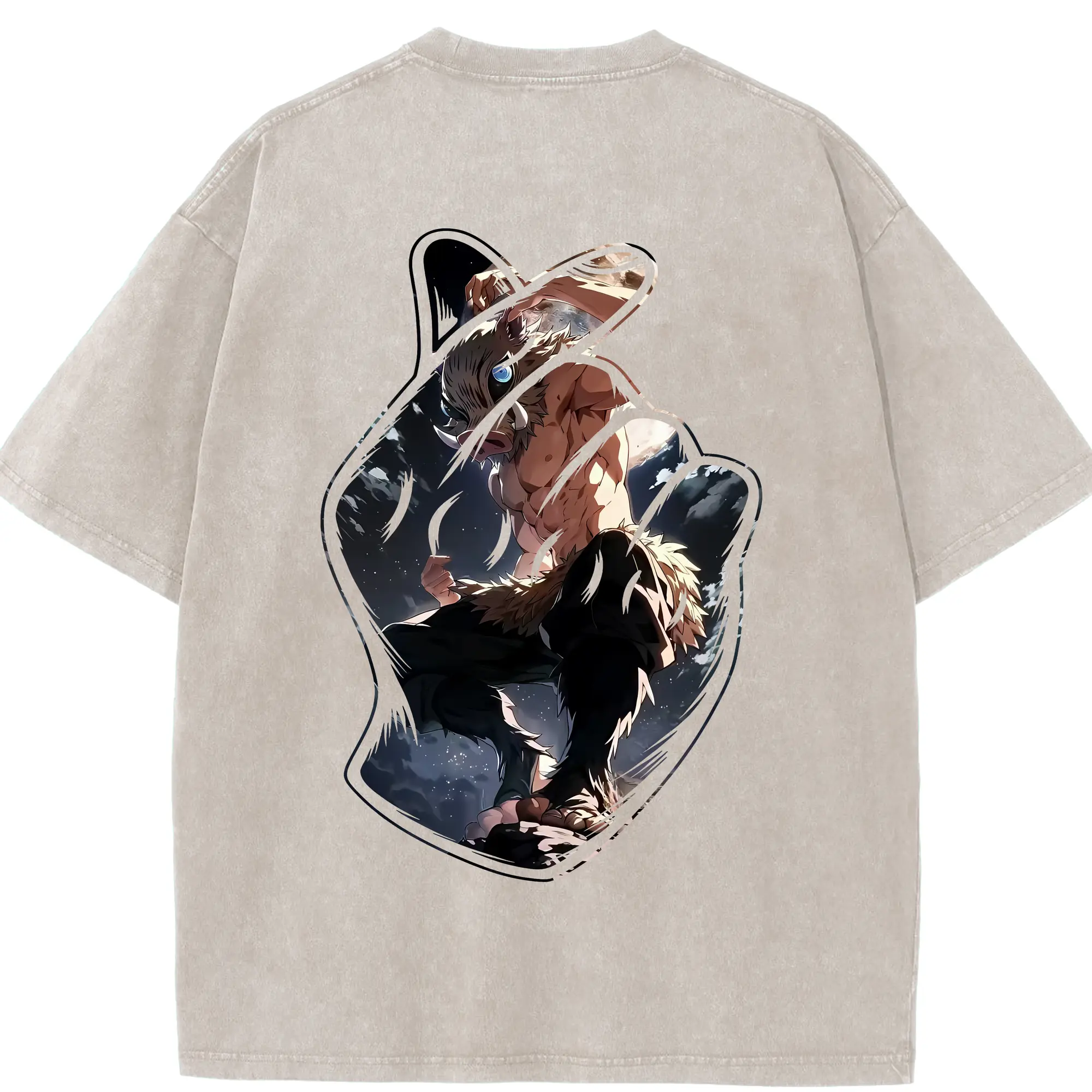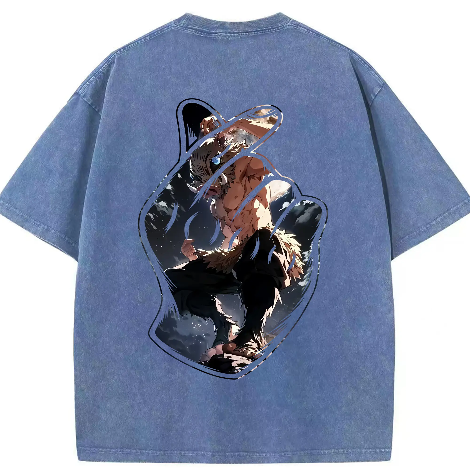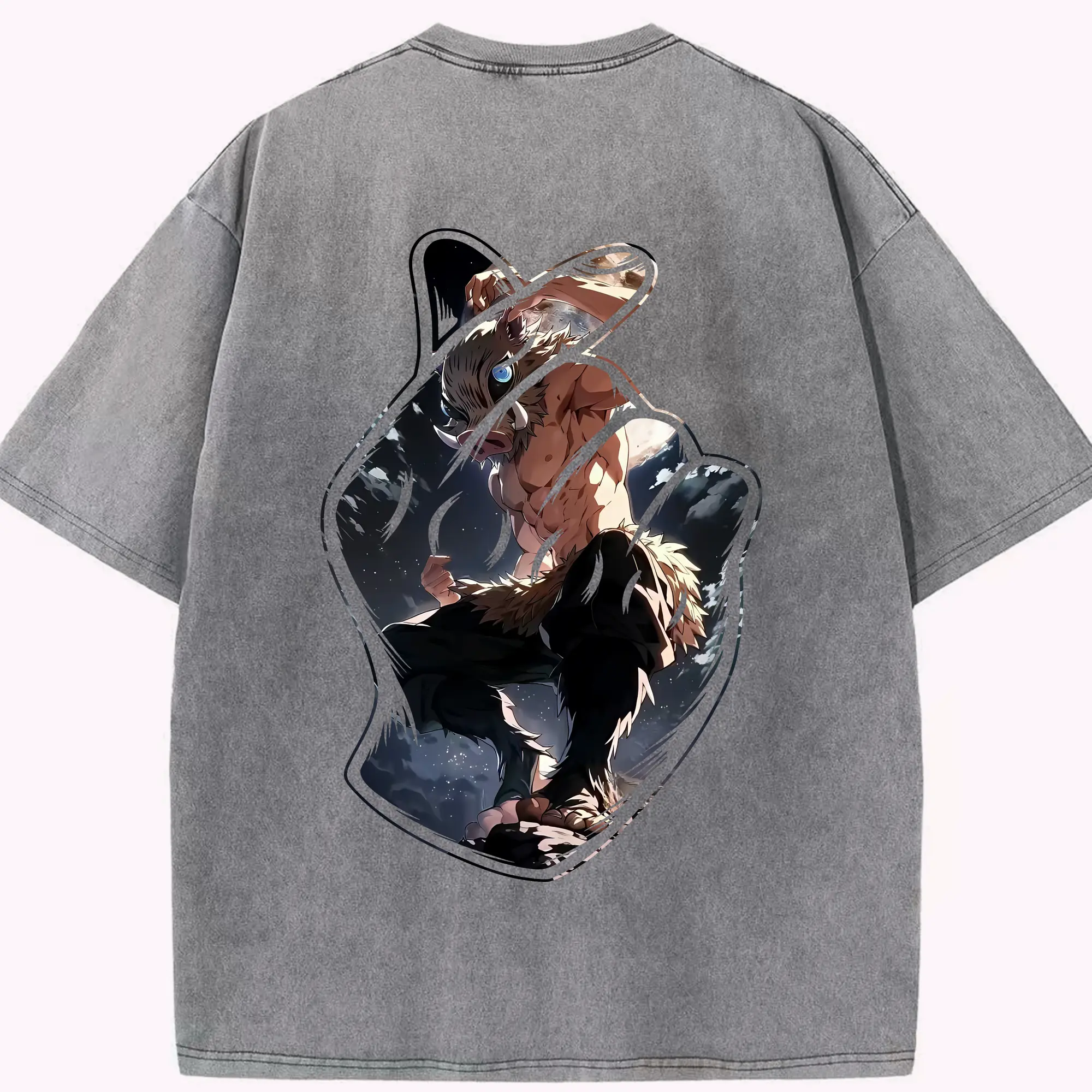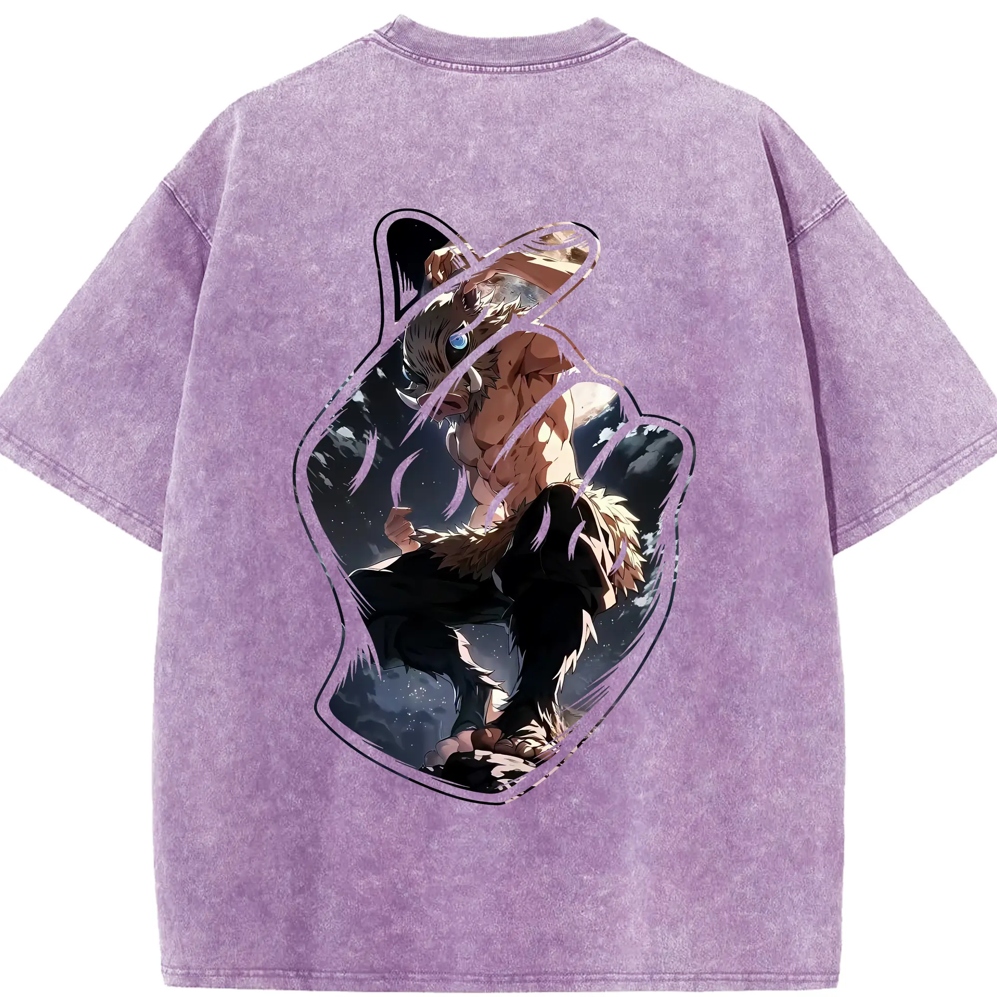 鬼滅の刃 グッズ,嘴平 伊之助 - 綿100% 半袖Tシャツ ・ バックプリント ・ 快適 通気性 ・ 日常使い 散歩 スポーツ用