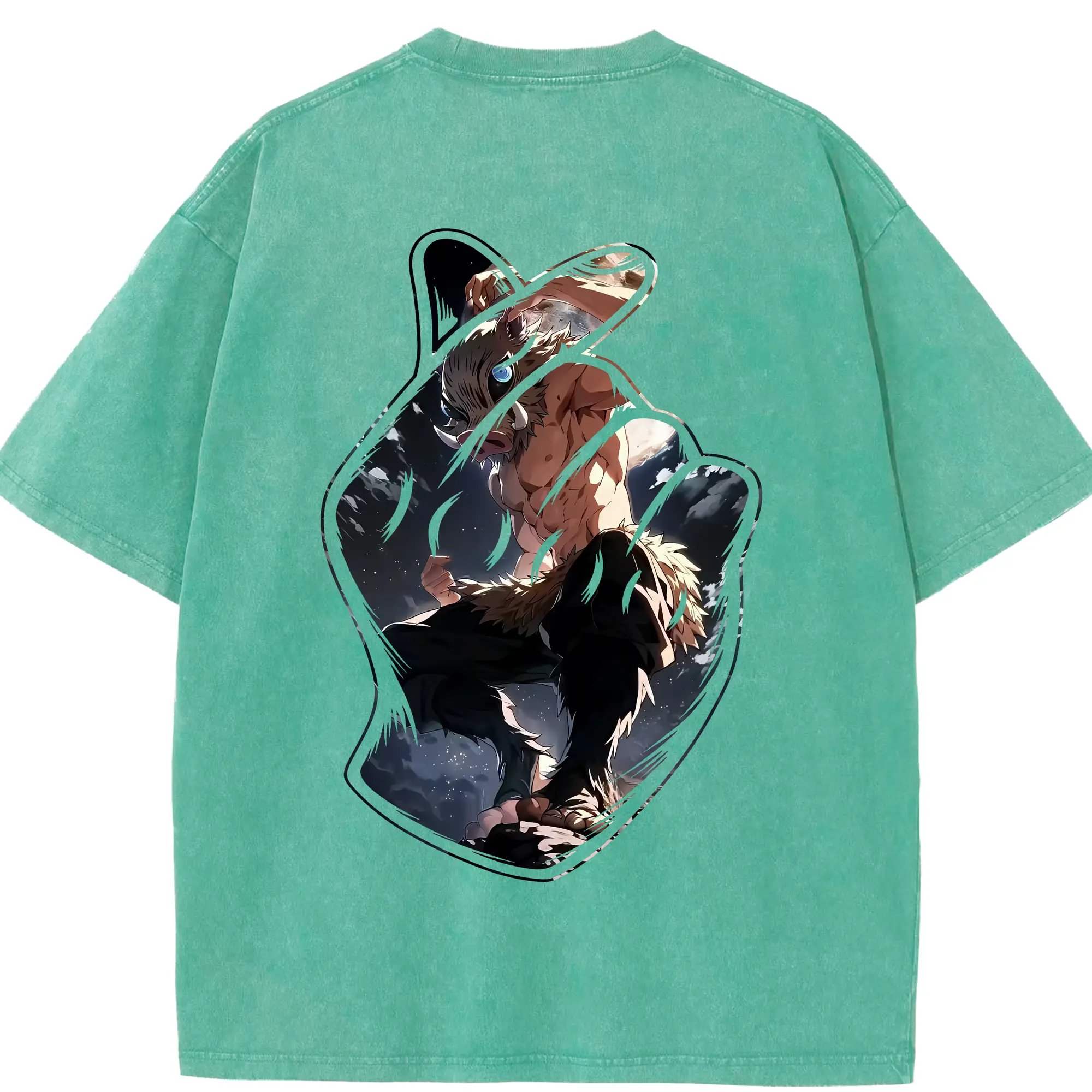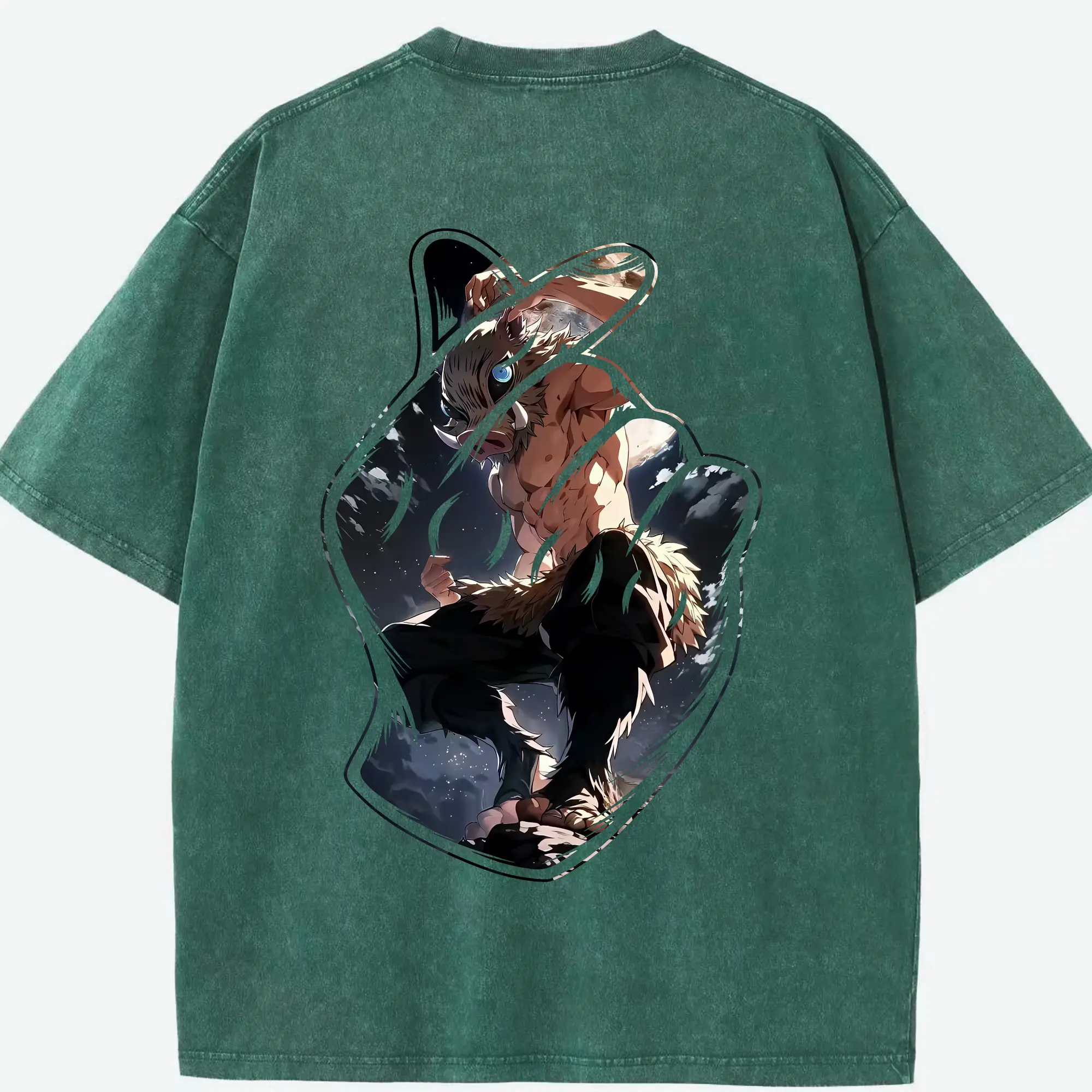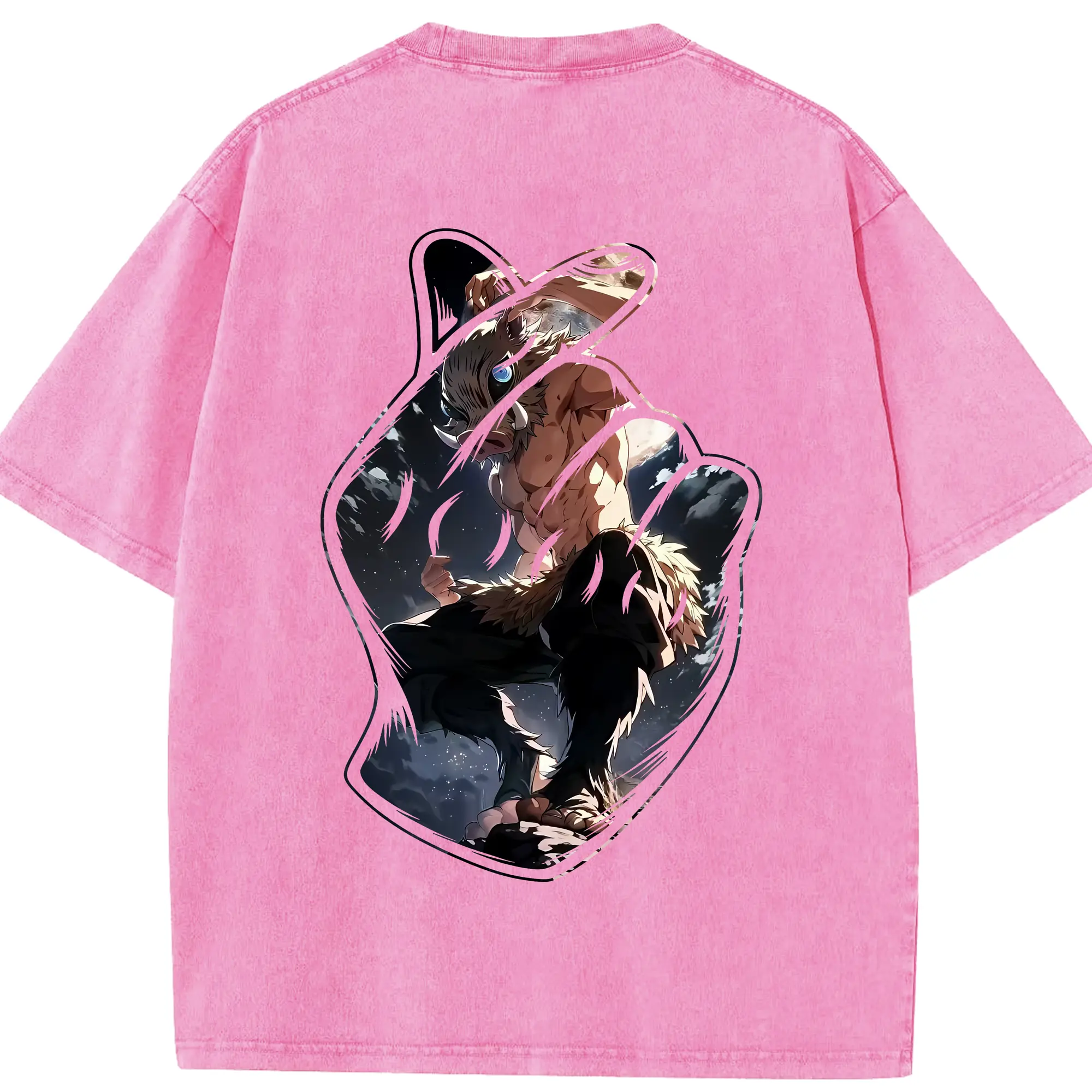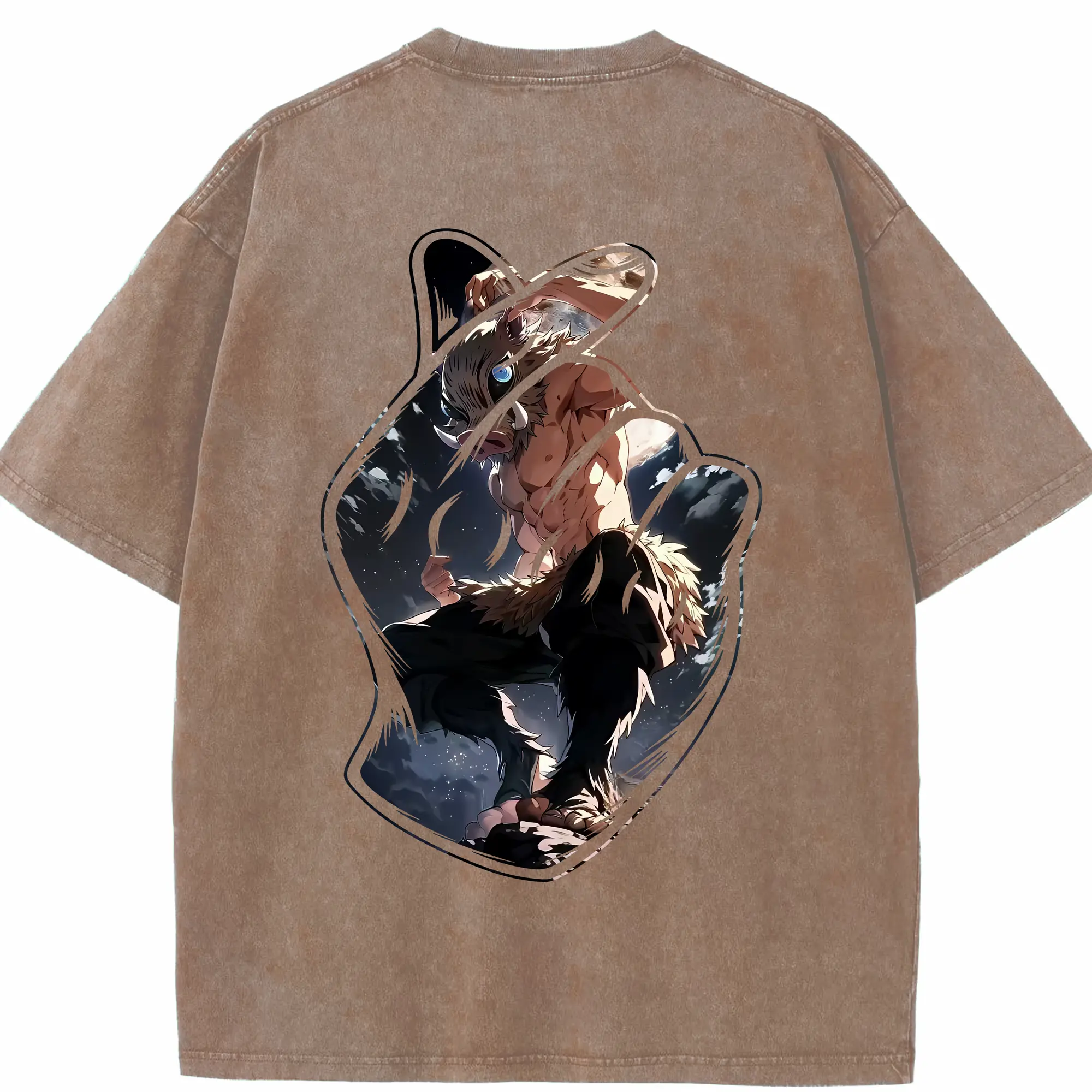 鬼滅の刃 グッズ,嘴平 伊之助 - 綿100% 半袖Tシャツ ・ バックプリント ・ 快適 通気性 ・ 日常使い 散歩 スポーツ用