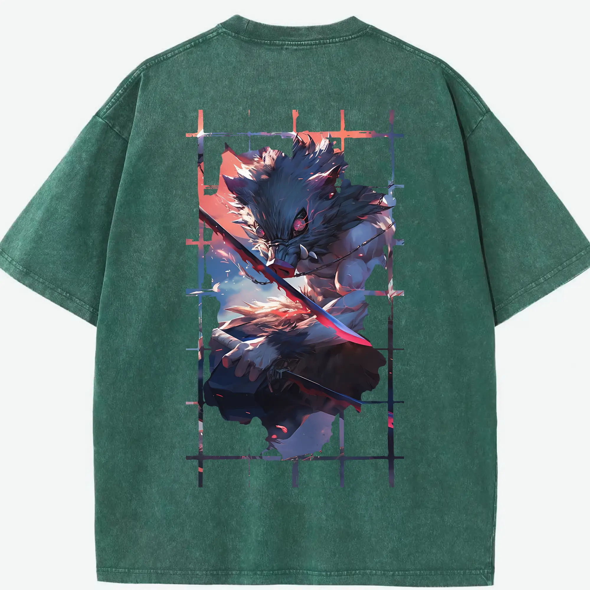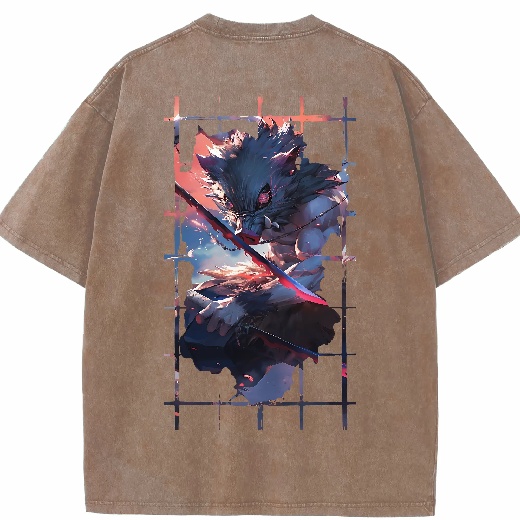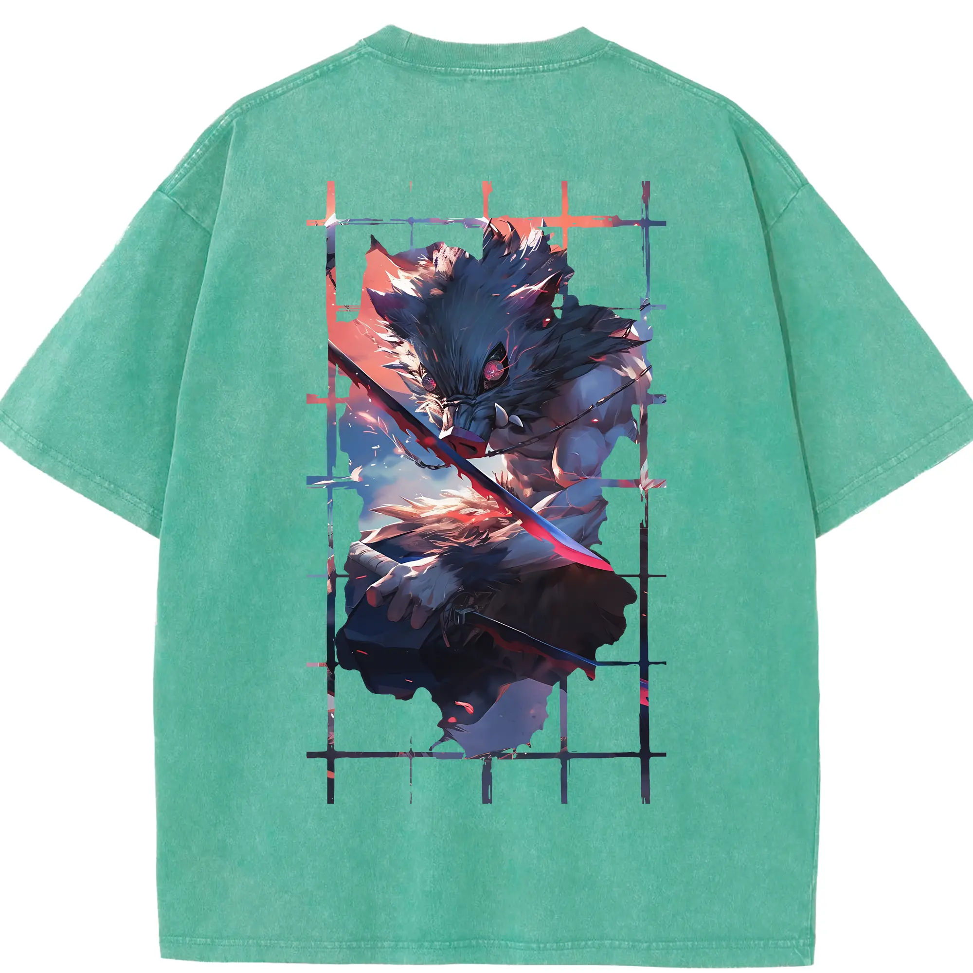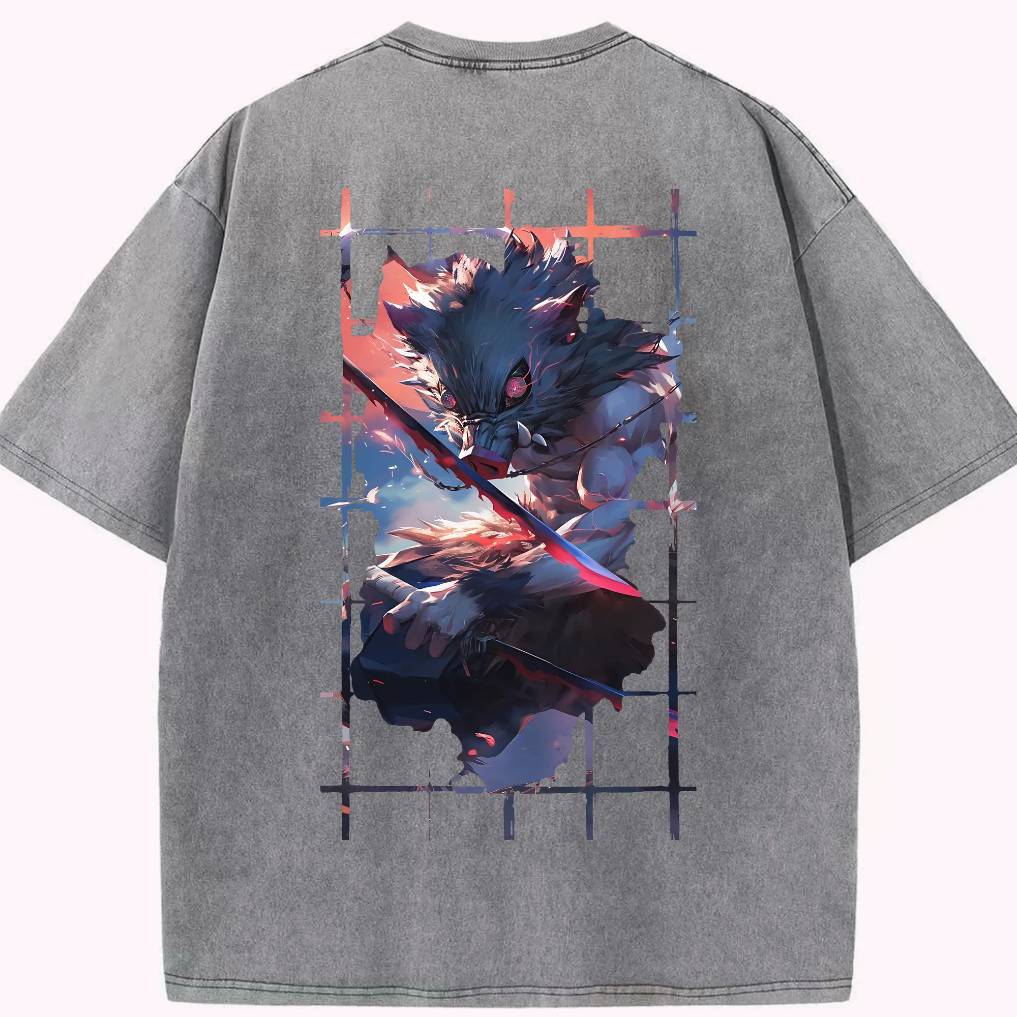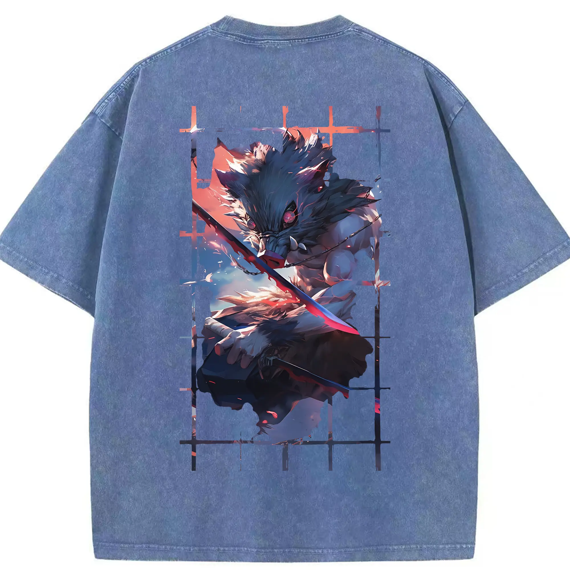 鬼滅の刃 グッズ,嘴平 伊之助 - 綿100% 半袖Tシャツ ・ フロントプリント ・ 快適 通気性 ・ 日常使い 散歩 スポーツ用