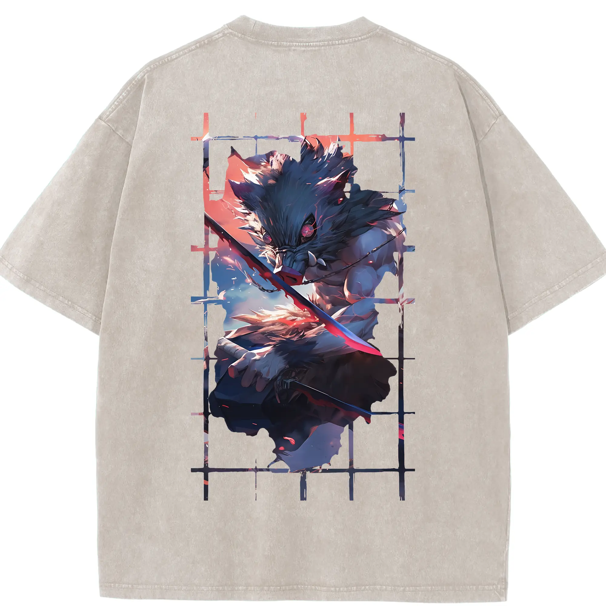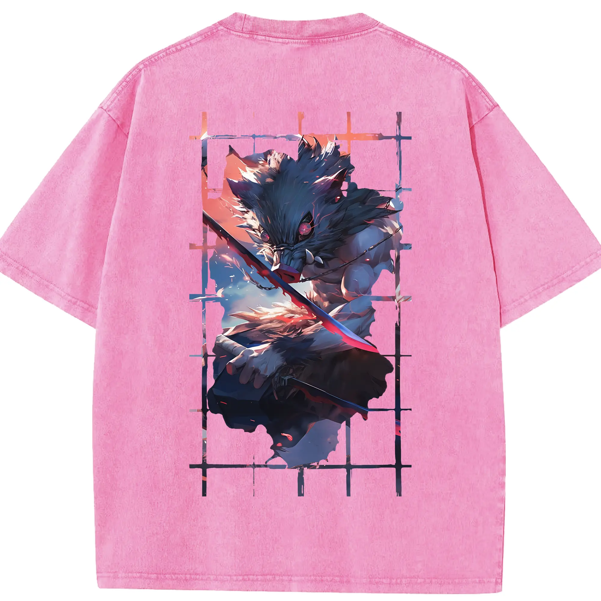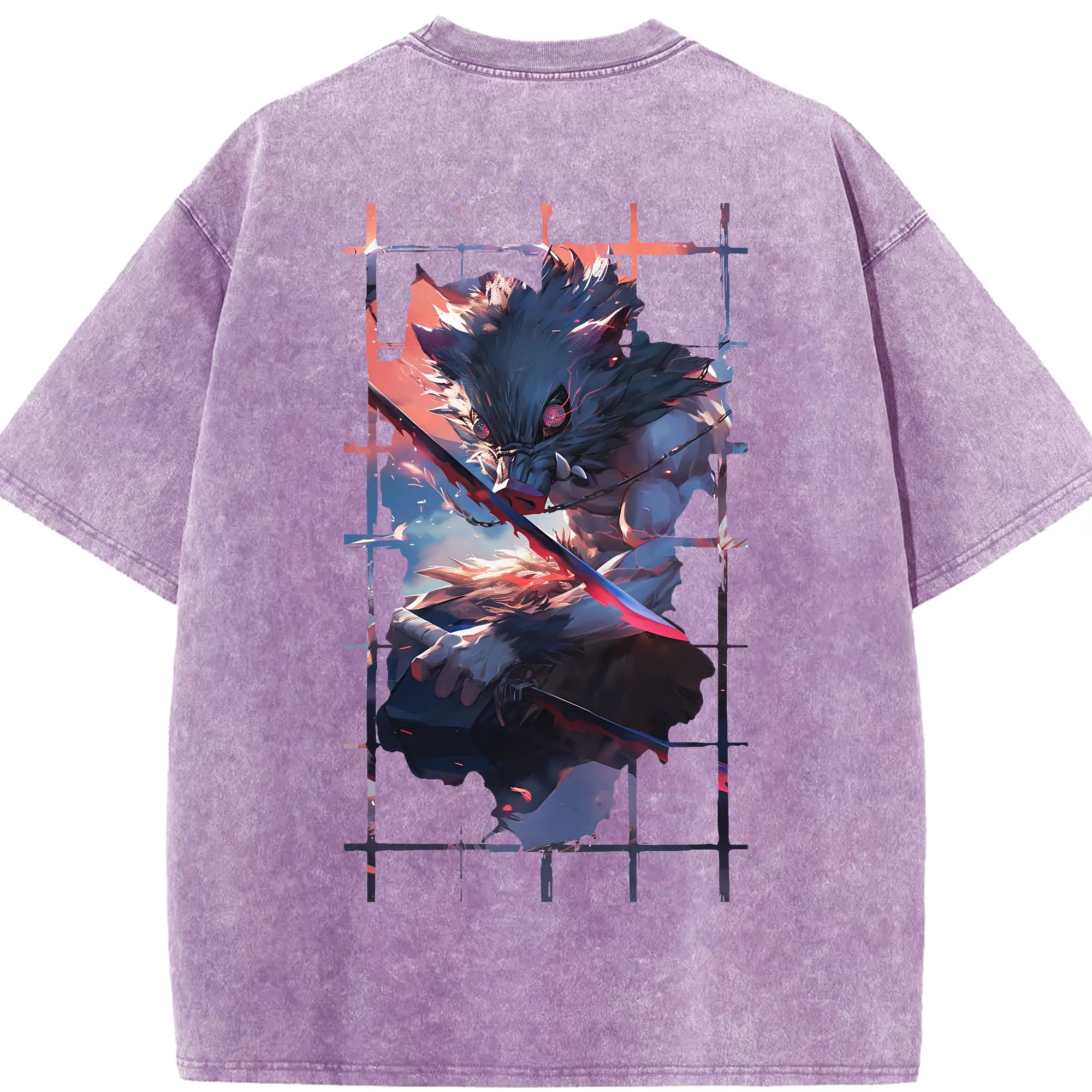鬼滅の刃 グッズ,嘴平 伊之助 - 綿100% 半袖Tシャツ ・ バックプリント ・ 快適 通気性 ・ 日常使い 散歩 スポーツ用