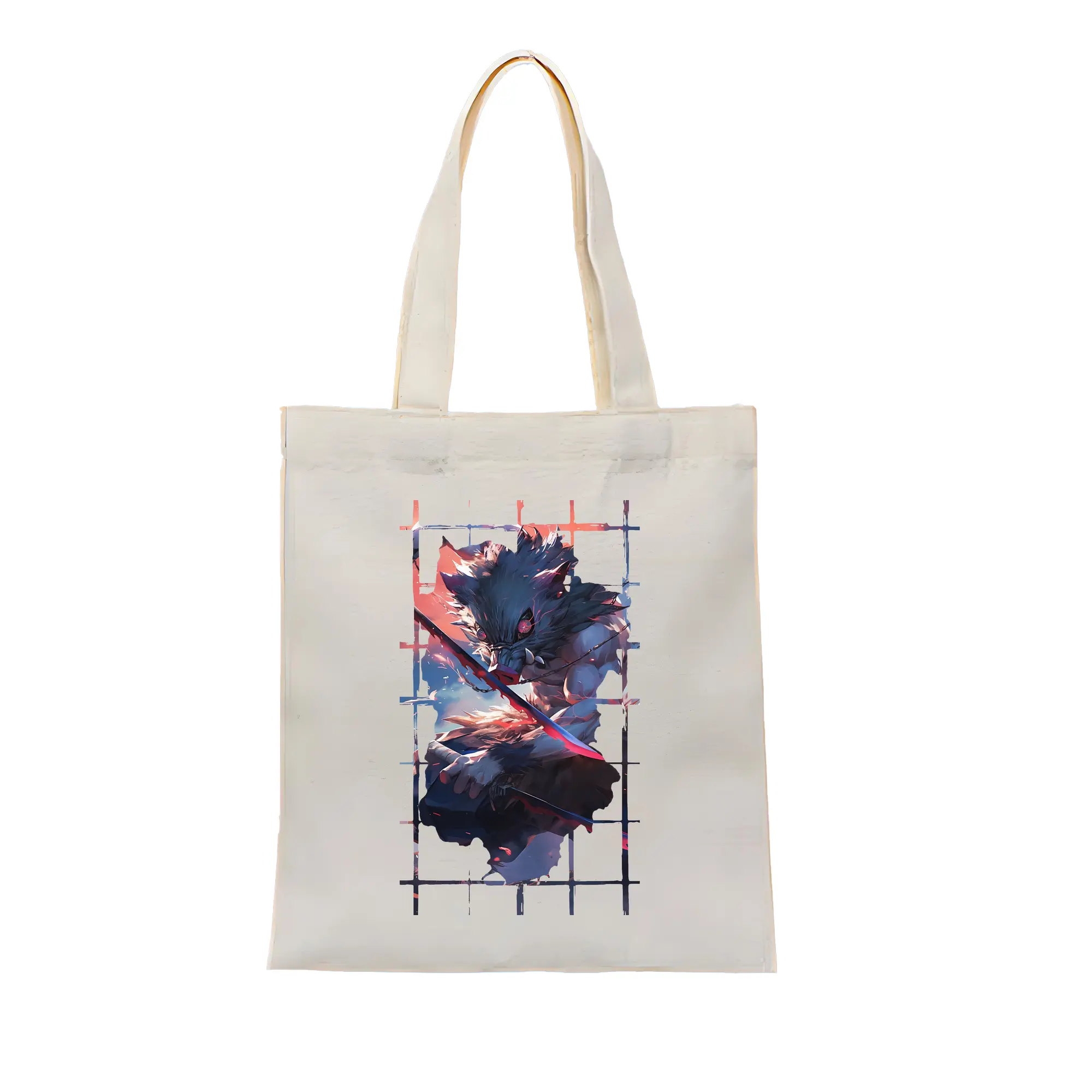 鬼滅の刃 グッズ,嘴平 伊之助 - 縦型キャンバス手提げバッグ(トートバッグ) ・ キャンバス素材 ・ ショッピング用 ・ 軽量 丈夫 お手入れ簡単