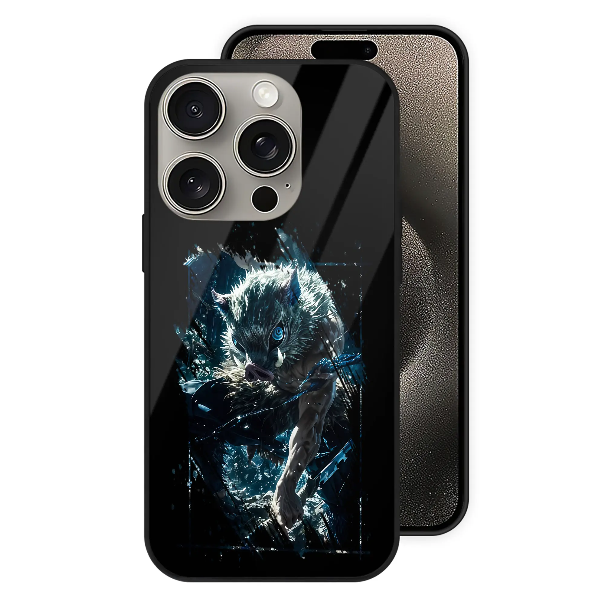 鬼滅の刃 グッズ,嘴平 伊之助 - IPhone15Pro対応 ・ スマホケース ・ 背面ガラス ・ TPU+強化ガラス ・ 耐衝撃 ・ 黄変防止 ・ ワイヤレス充電対応 ・ 3D立体ボタン