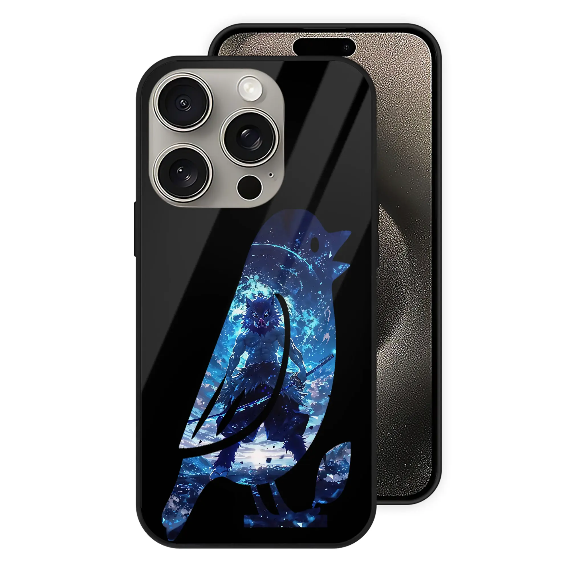 鬼滅の刃 グッズ,嘴平 伊之助 - IPhone15Pro対応 ・ スマホケース ・ 背面ガラス ・ TPU+強化ガラス ・ 耐衝撃 ・ 黄変防止 ・ ワイヤレス充電対応 ・ 3D立体ボタン