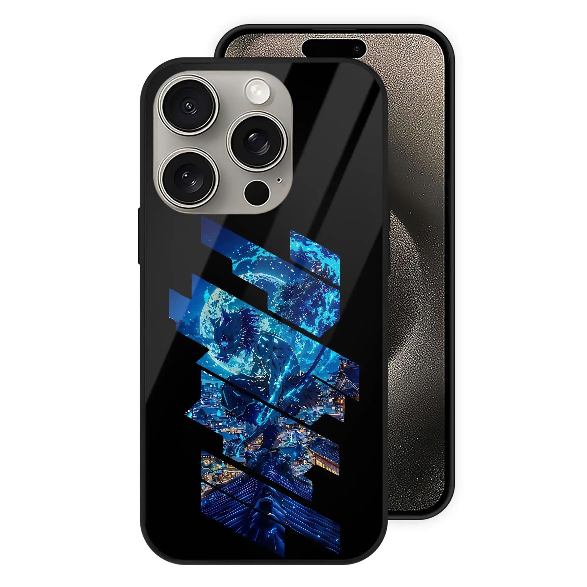 鬼滅の刃 グッズ,嘴平 伊之助 - IPhone15Pro対応 ・ スマホケース ・ 背面ガラス ・ TPU+強化ガラス ・ 耐衝撃 ・ 黄変防止 ・ ワイヤレス充電対応 ・ 3D立体ボタン