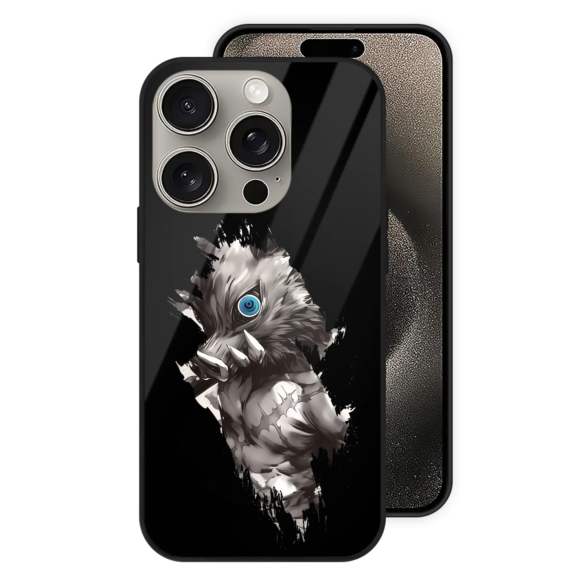 鬼滅の刃 グッズ,嘴平 伊之助 - IPhone15Pro対応 ・ スマホケース ・ 背面ガラス ・ TPU+強化ガラス ・ 耐衝撃 ・ 黄変防止 ・ ワイヤレス充電対応 ・ 3D立体ボタン