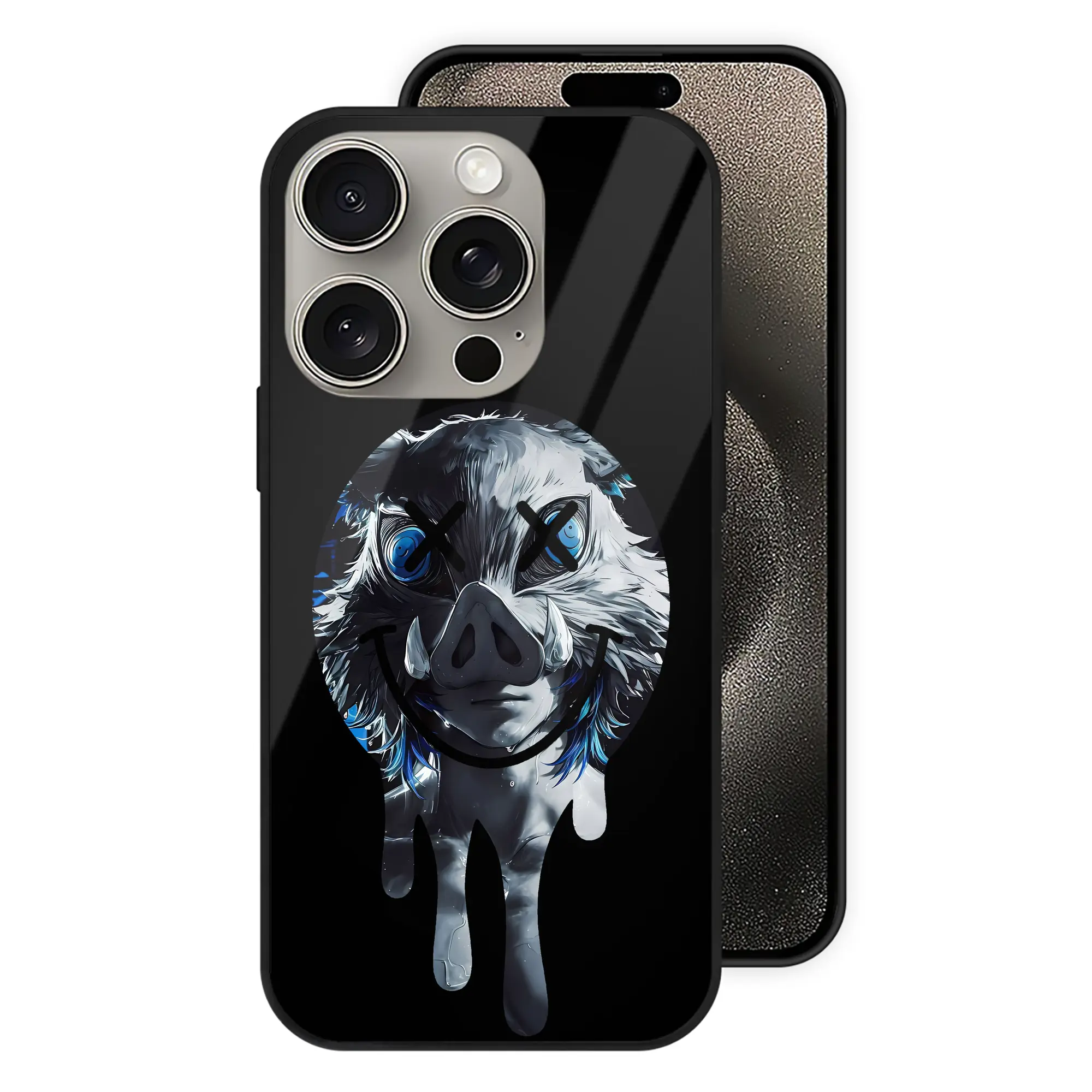 鬼滅の刃 グッズ,嘴平 伊之助 - IPhone15Pro対応 ・ スマホケース ・ 背面ガラス ・ TPU+強化ガラス ・ 耐衝撃 ・ 黄変防止 ・ ワイヤレス充電対応 ・ 3D立体ボタン