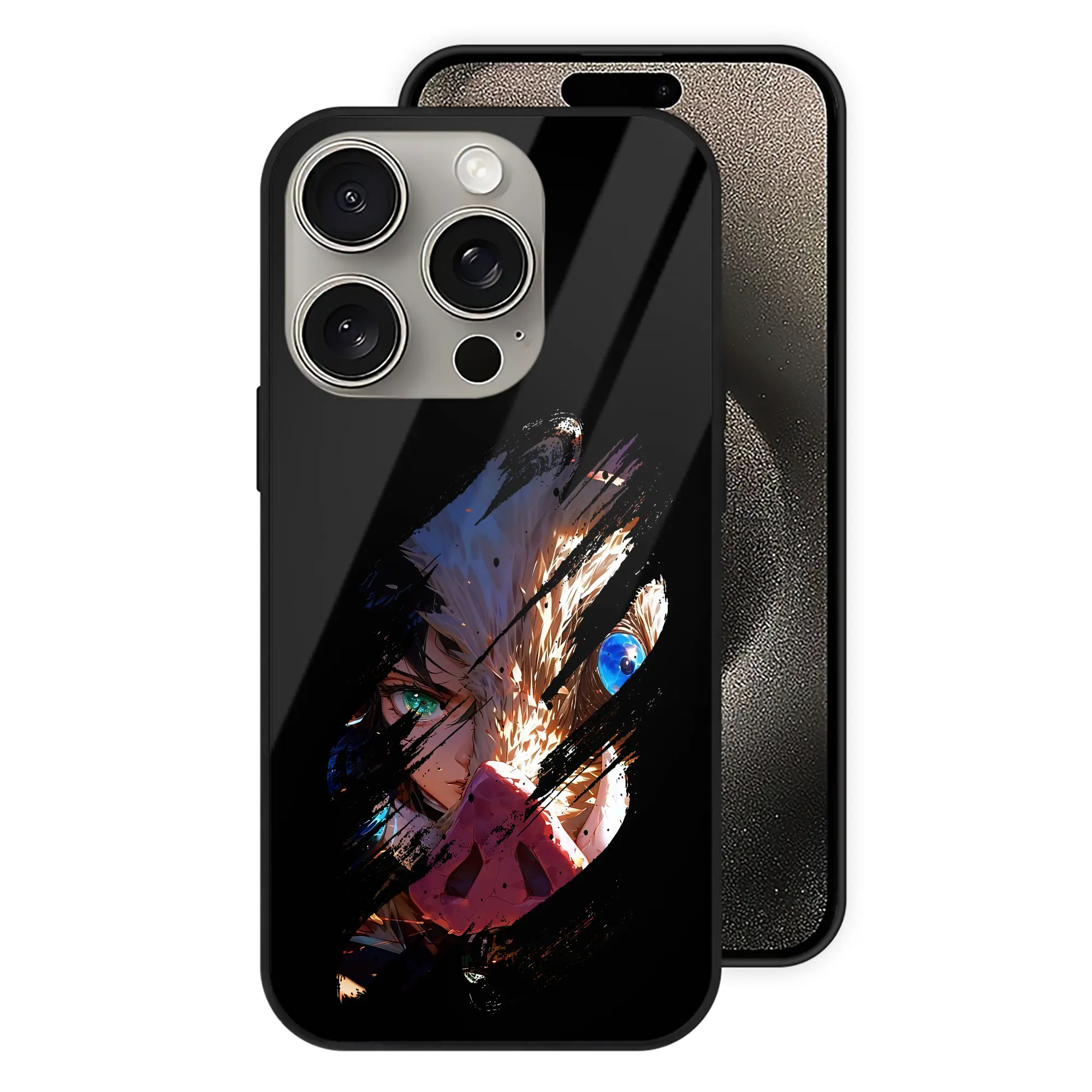 鬼滅の刃 グッズ,嘴平 伊之助 - IPhone15Pro対応 ・ スマホケース ・ 背面ガラス ・ TPU+強化ガラス ・ 耐衝撃 ・ 黄変防止 ・ ワイヤレス充電対応 ・ 3D立体ボタン