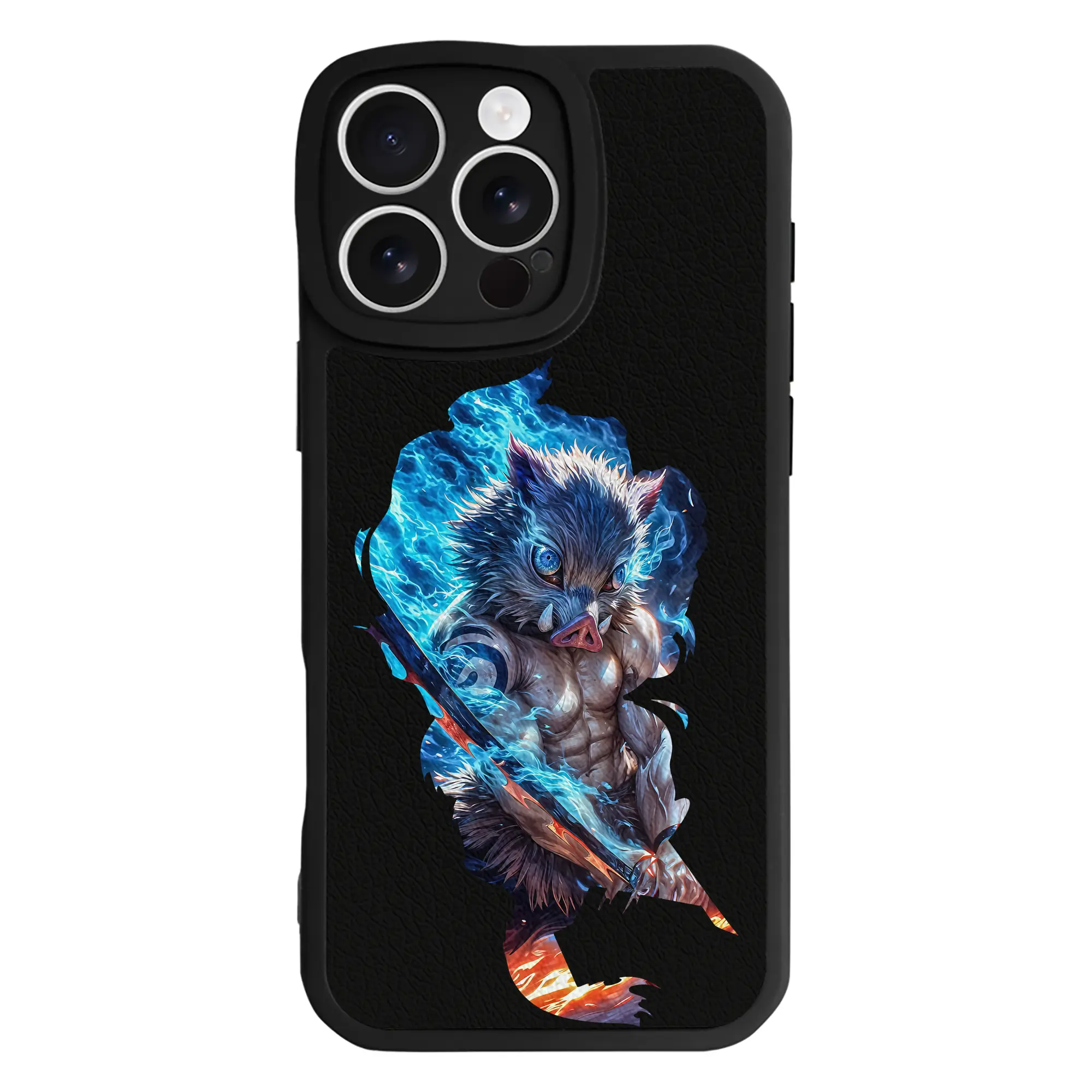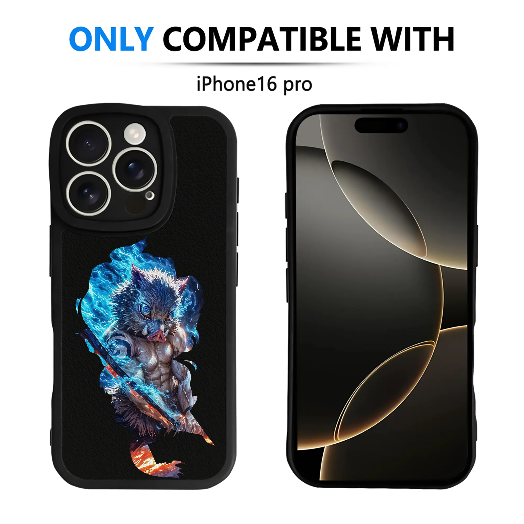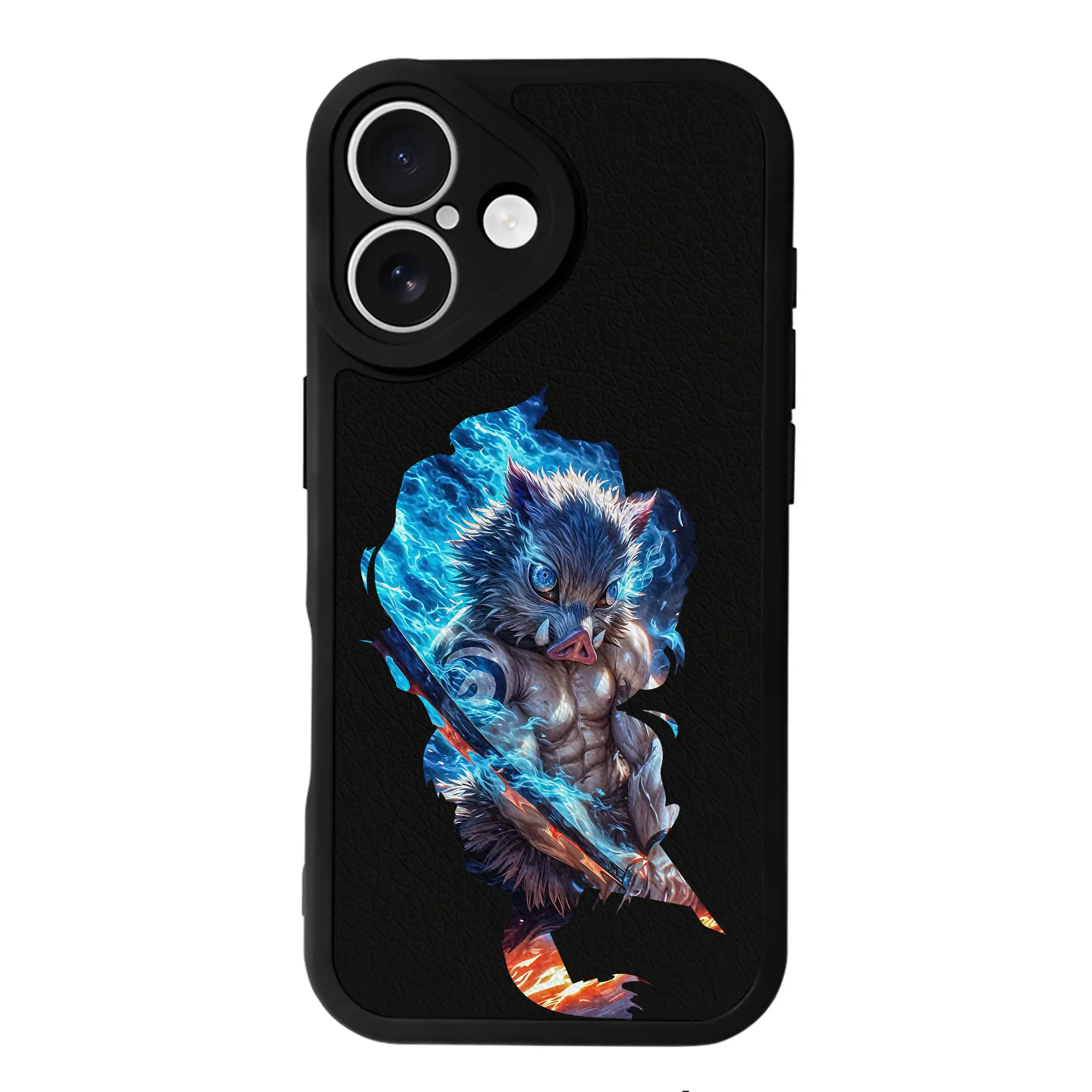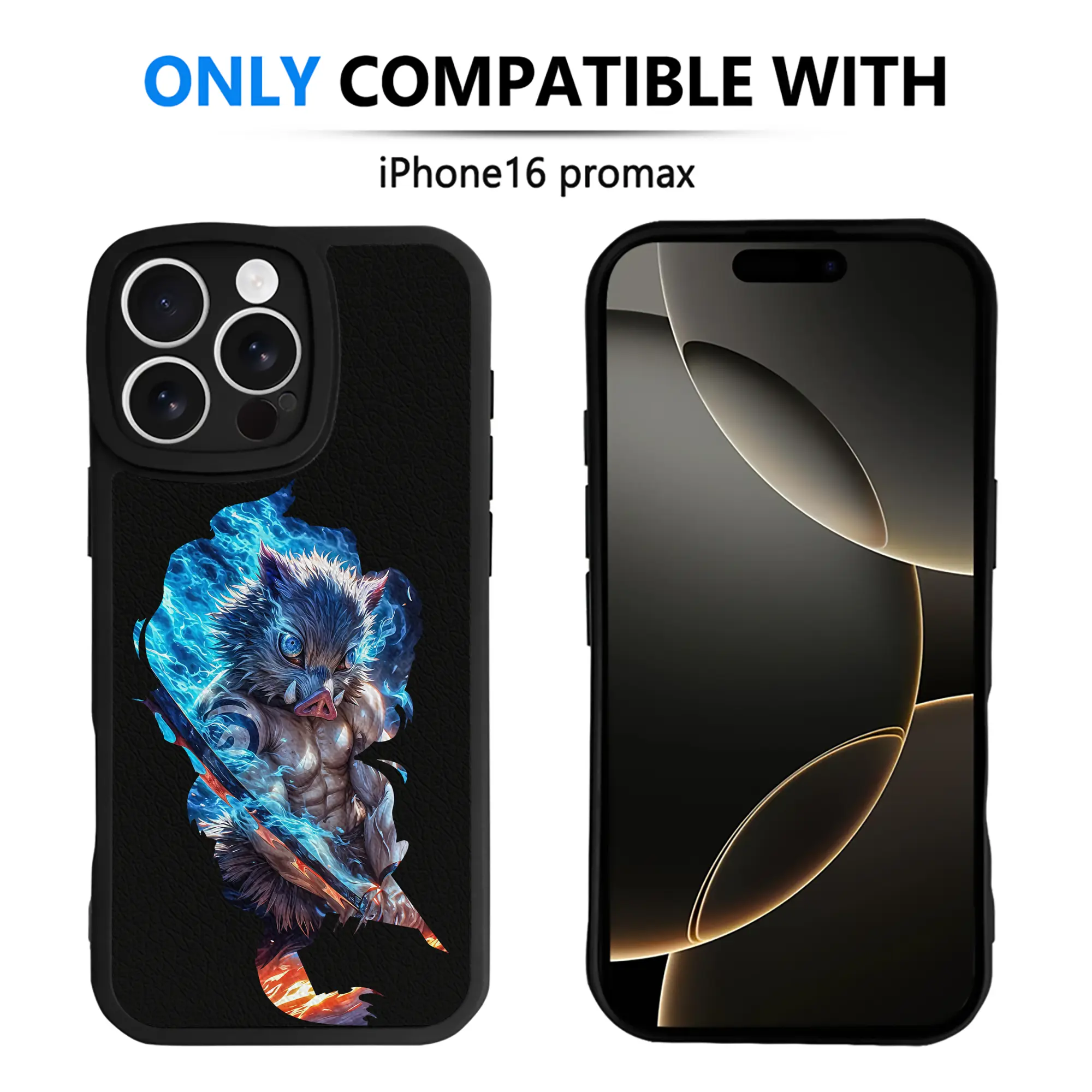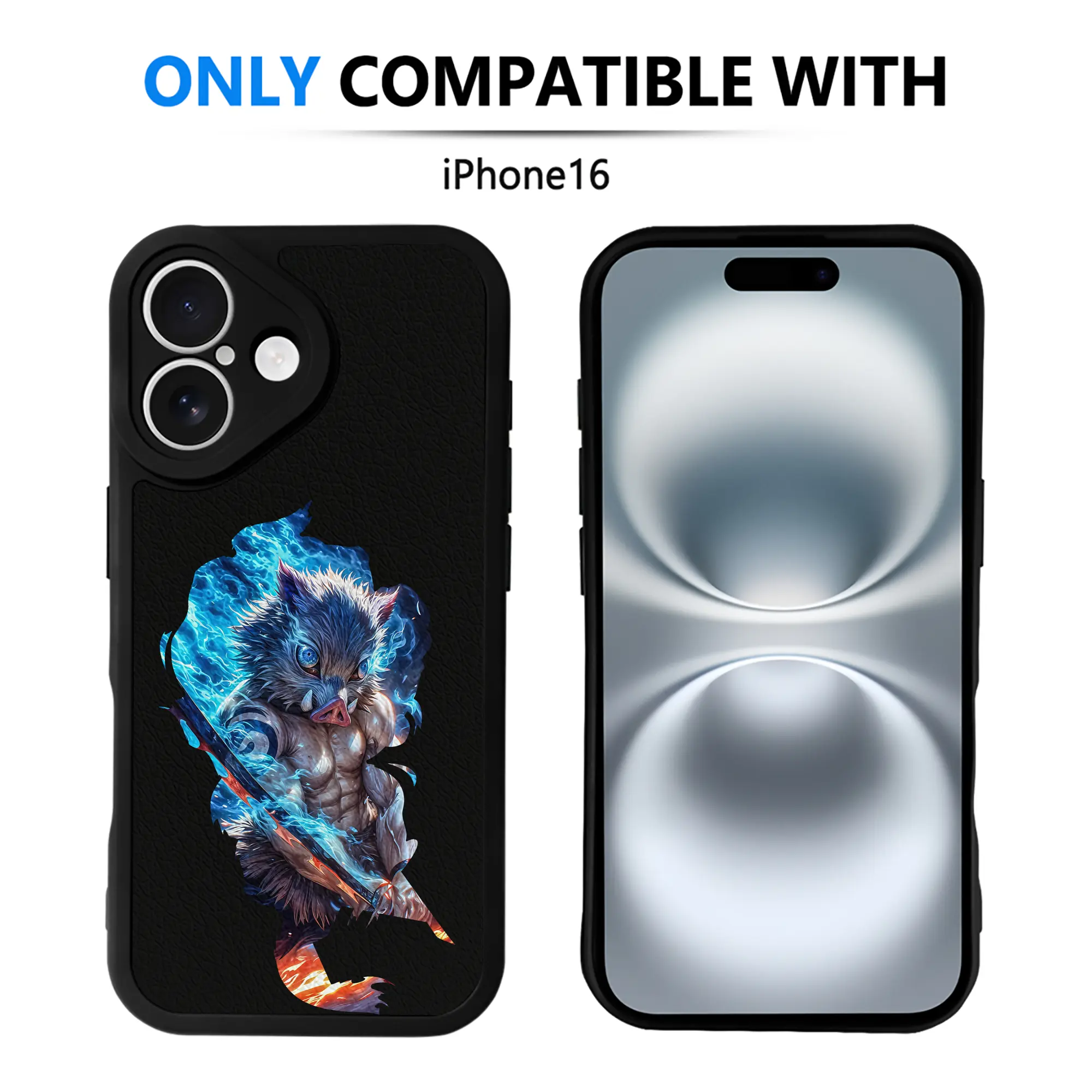 鬼滅の刃 グッズ,嘴平 伊之助 - IPhone 16シリーズ対応 ・ シリコンスマホケース ・ レザー調 ・ 高精度フィット ・ 耐衝撃 ・ ワイヤレス充電対応 ・ 精密カット