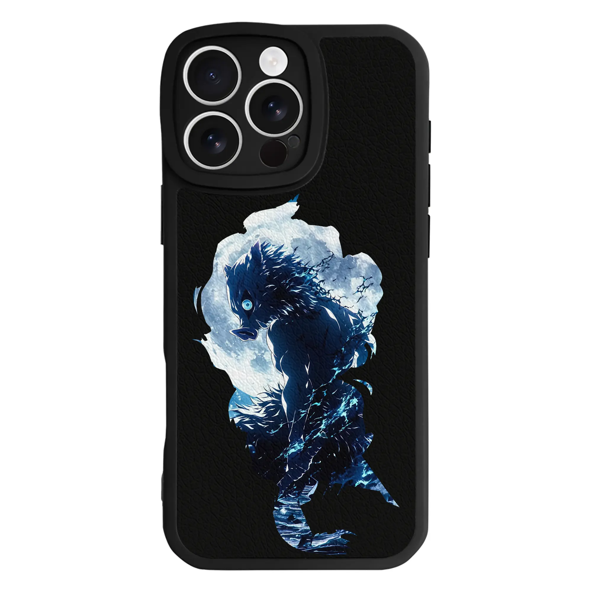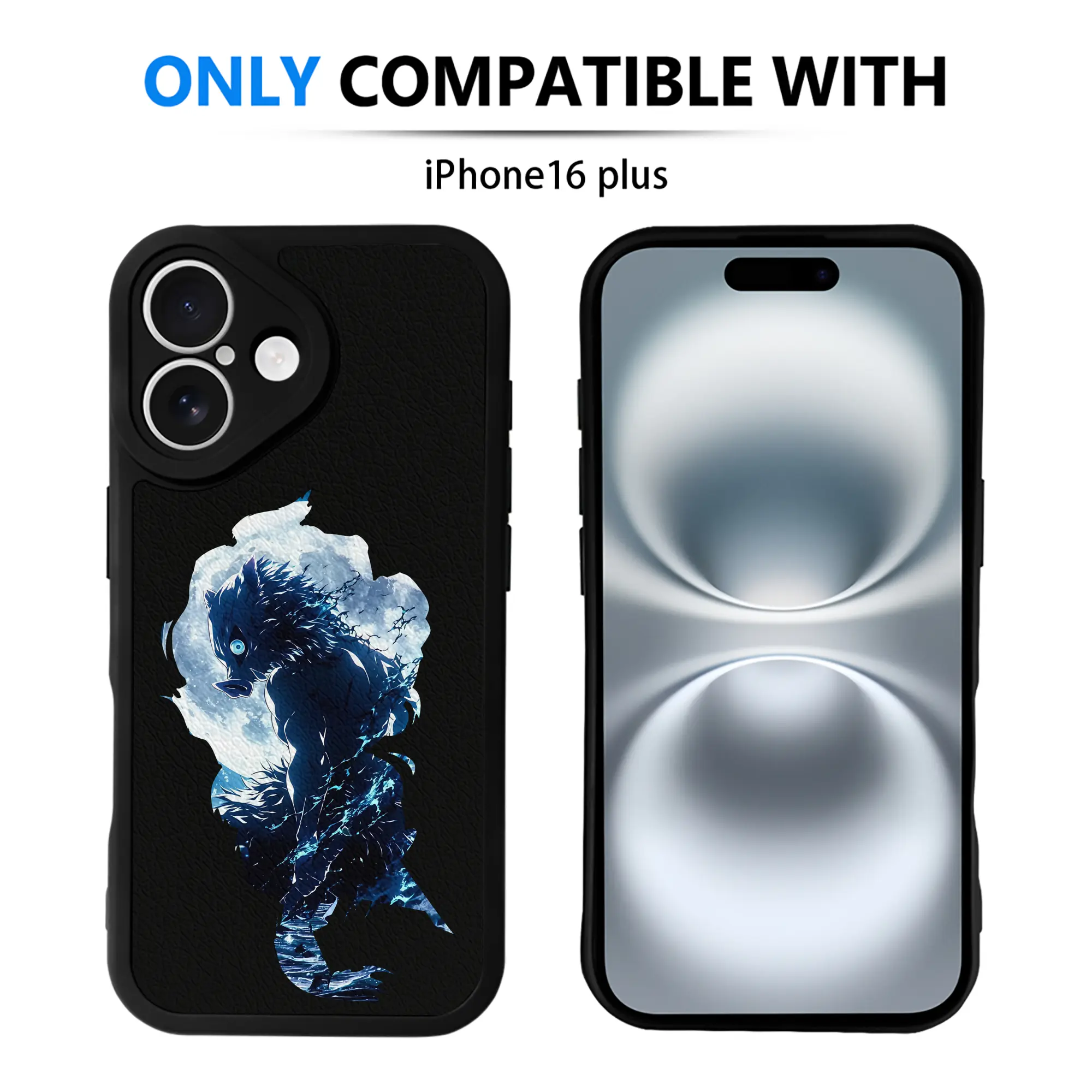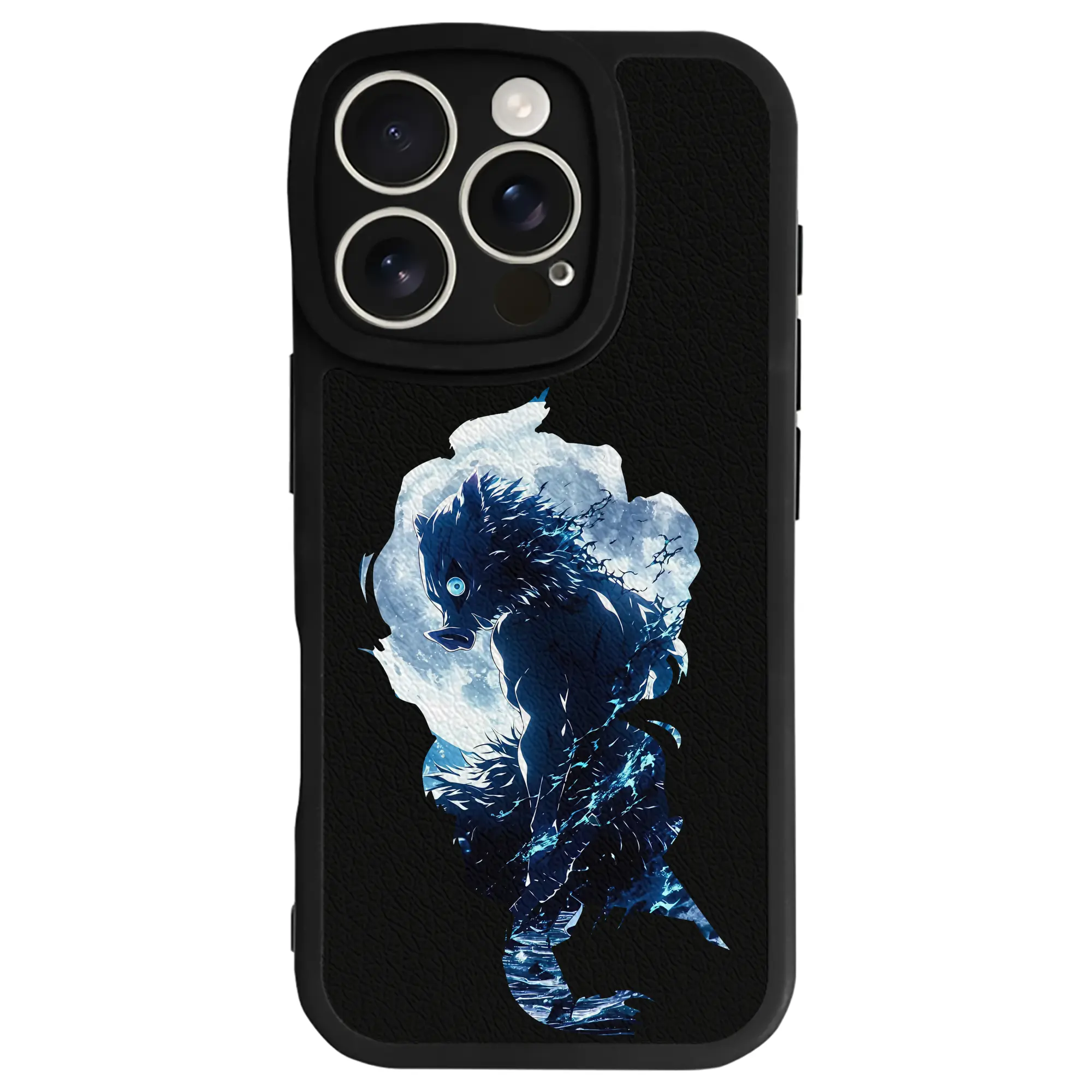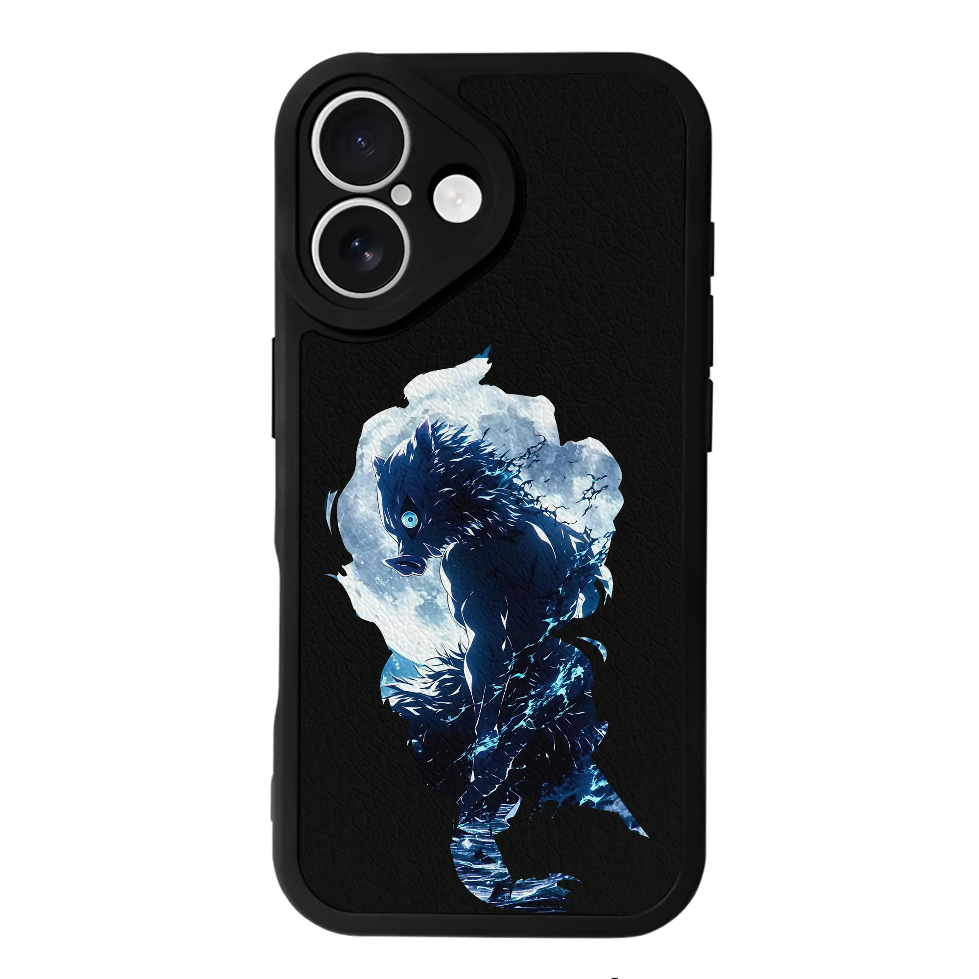 鬼滅の刃 グッズ,嘴平 伊之助 - IPhone 16シリーズ対応 ・ シリコンスマホケース ・ レザー調 ・ 高精度フィット ・ 耐衝撃 ・ ワイヤレス充電対応 ・ 精密カット