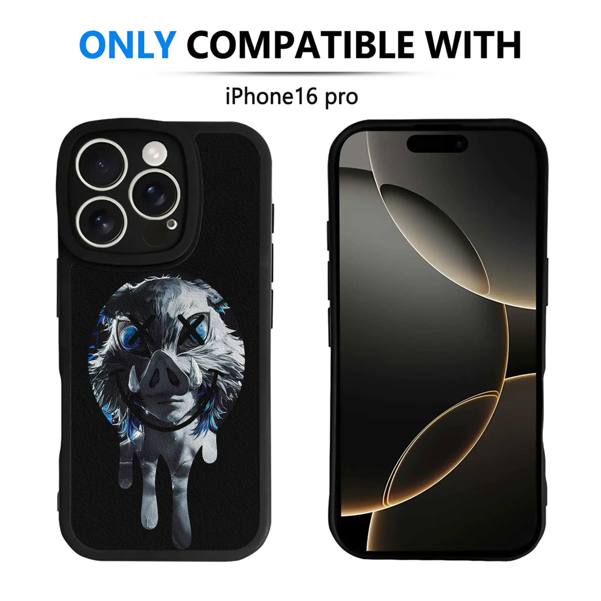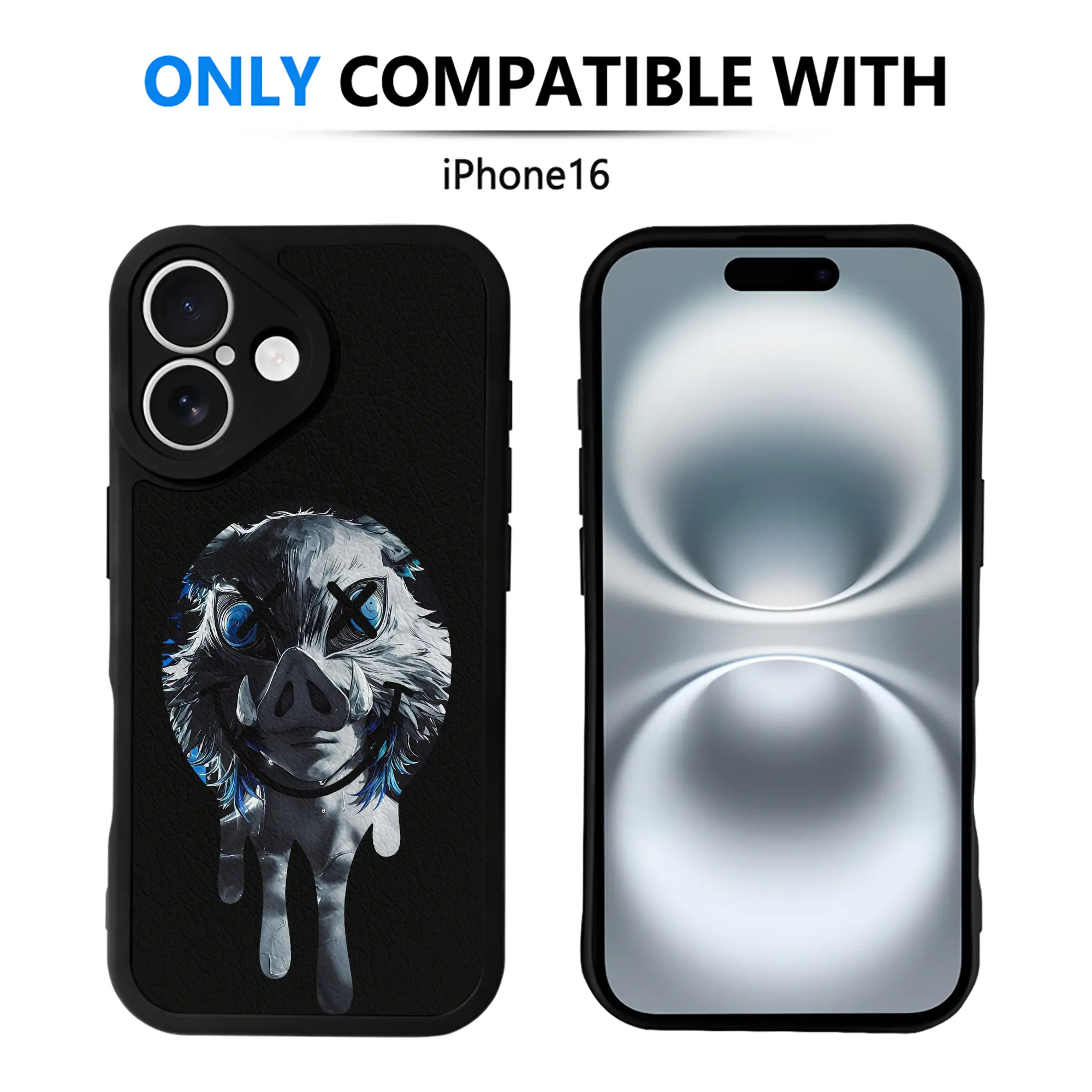 鬼滅の刃 グッズ,嘴平 伊之助 - IPhone 16シリーズ対応 ・ シリコンスマホケース ・ レザー調 ・ 高精度フィット ・ 耐衝撃 ・ ワイヤレス充電対応 ・ 精密カット